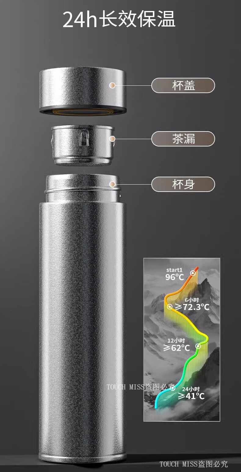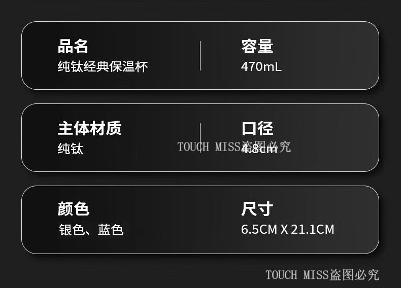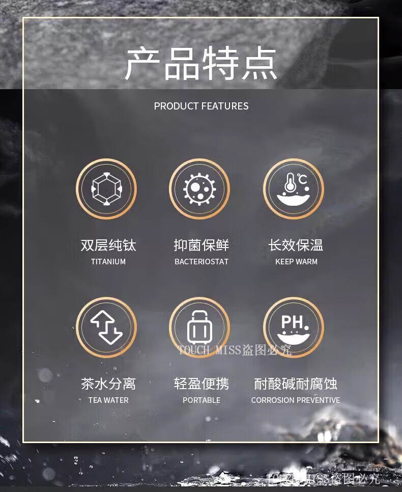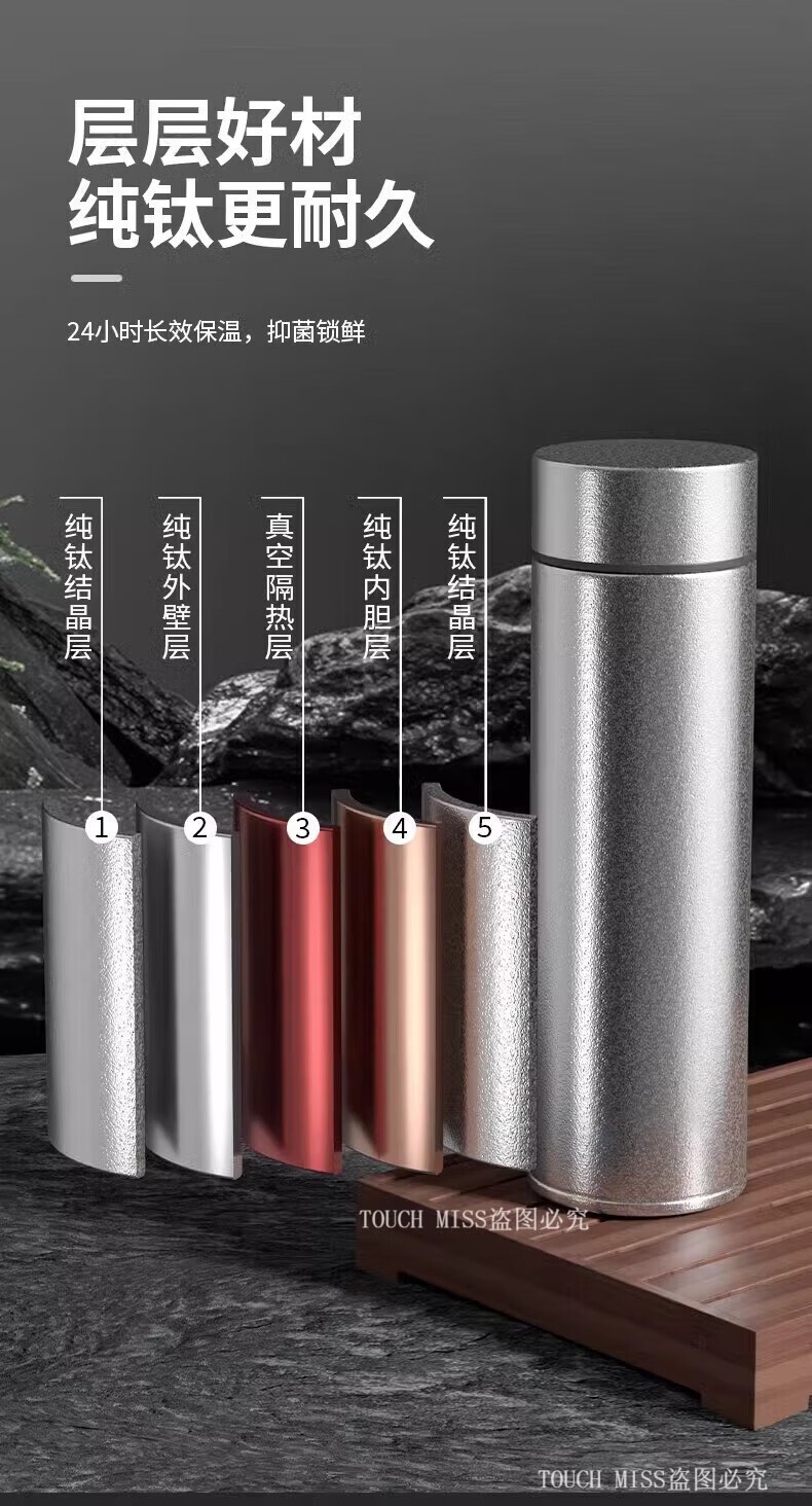 Touchmiss pure titanium thermos cup double-layer filter tea cup high-end business men's tea separation cup custom LOGO water cup double-layer pure titanium 470ML silver