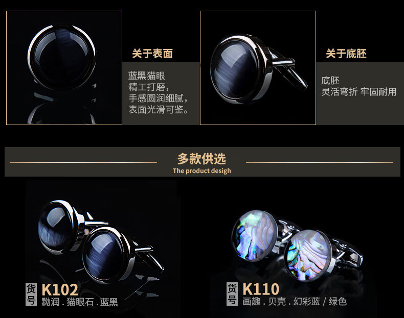 T&Twenties cat's eye cufflinks, French shirt cuff nails, men's cuff nails, business cufflinks, French button gift box, K102 smooth