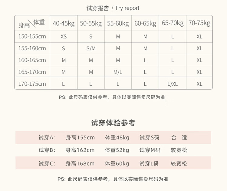 China (cm) 160-165/84-86 165-170 / 88-90 167-172 / 92-96 168-173 / 98-102 170-176 / 106-110