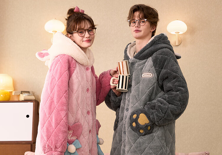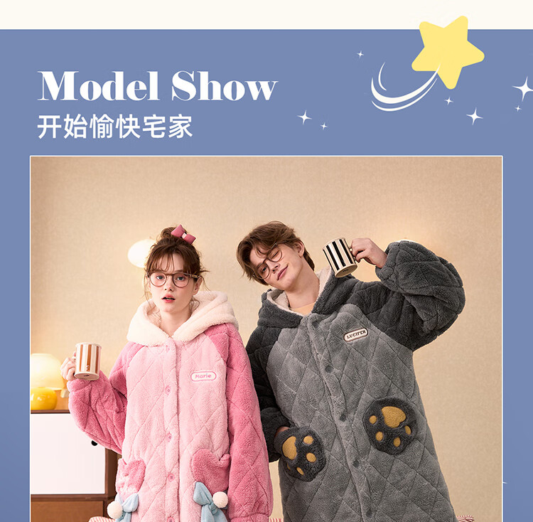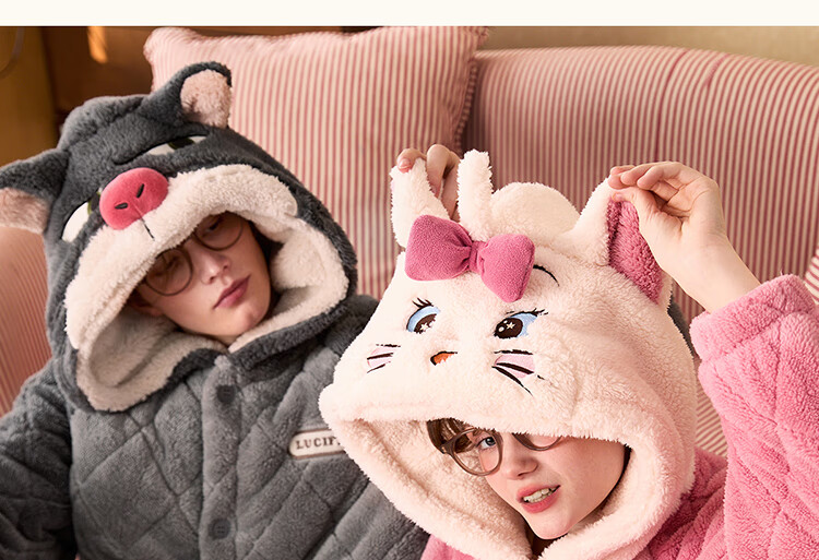 Gukoo Pajamas Couple Winter Disney Co-branded New Cotton Warm Men's Home Clothing Set D Disney Couple Set XL Men