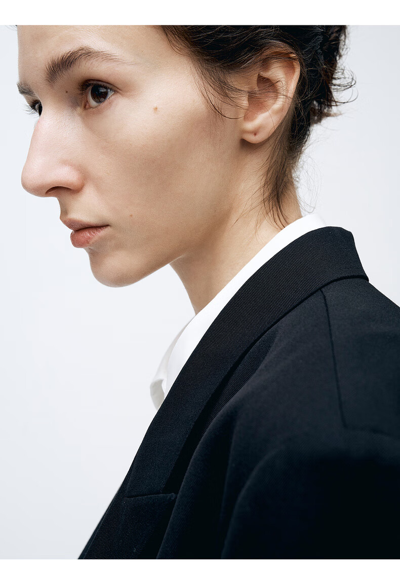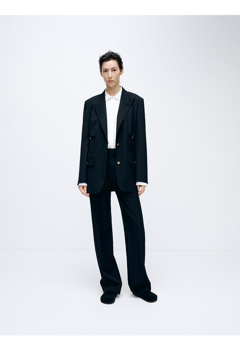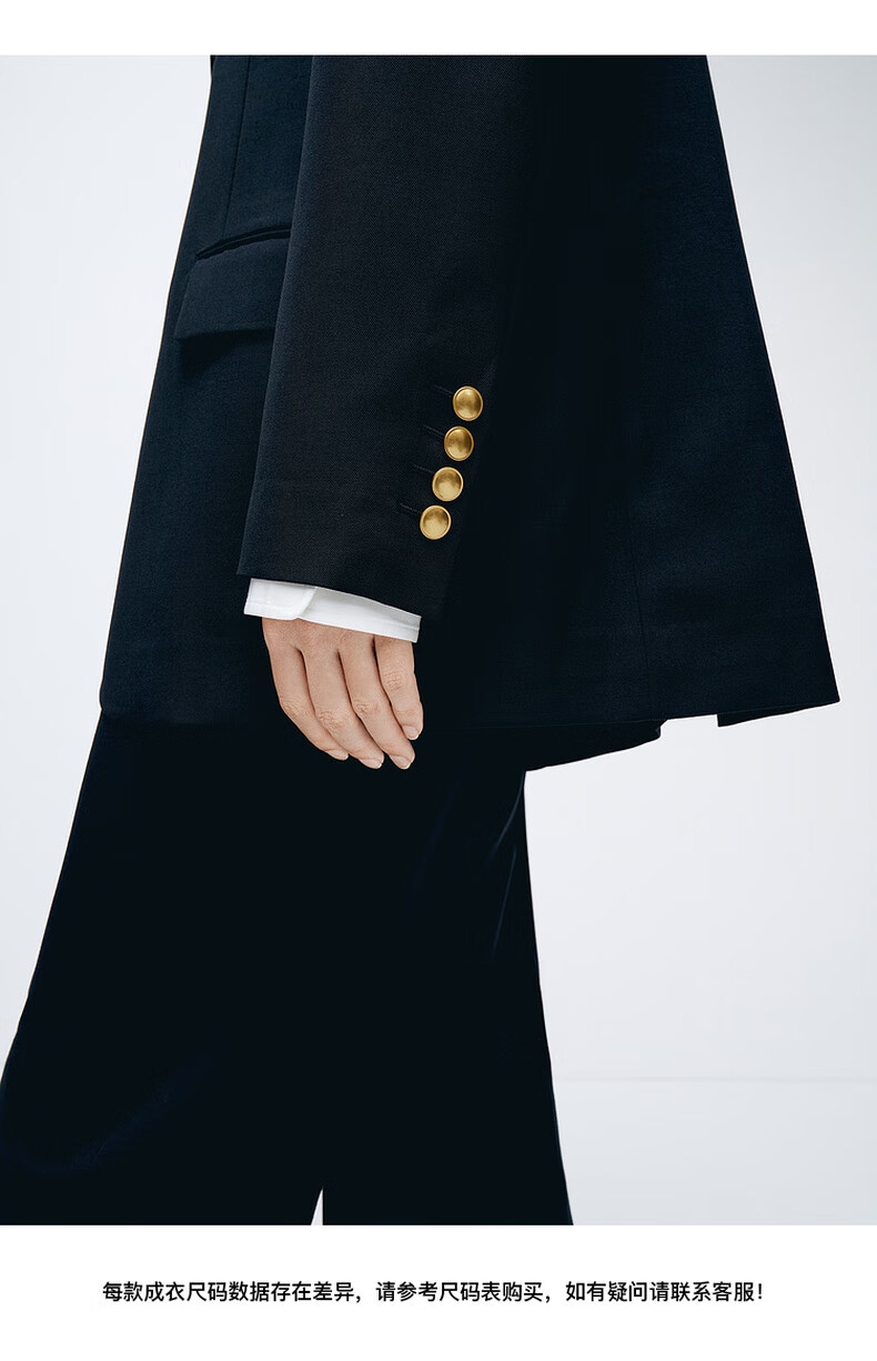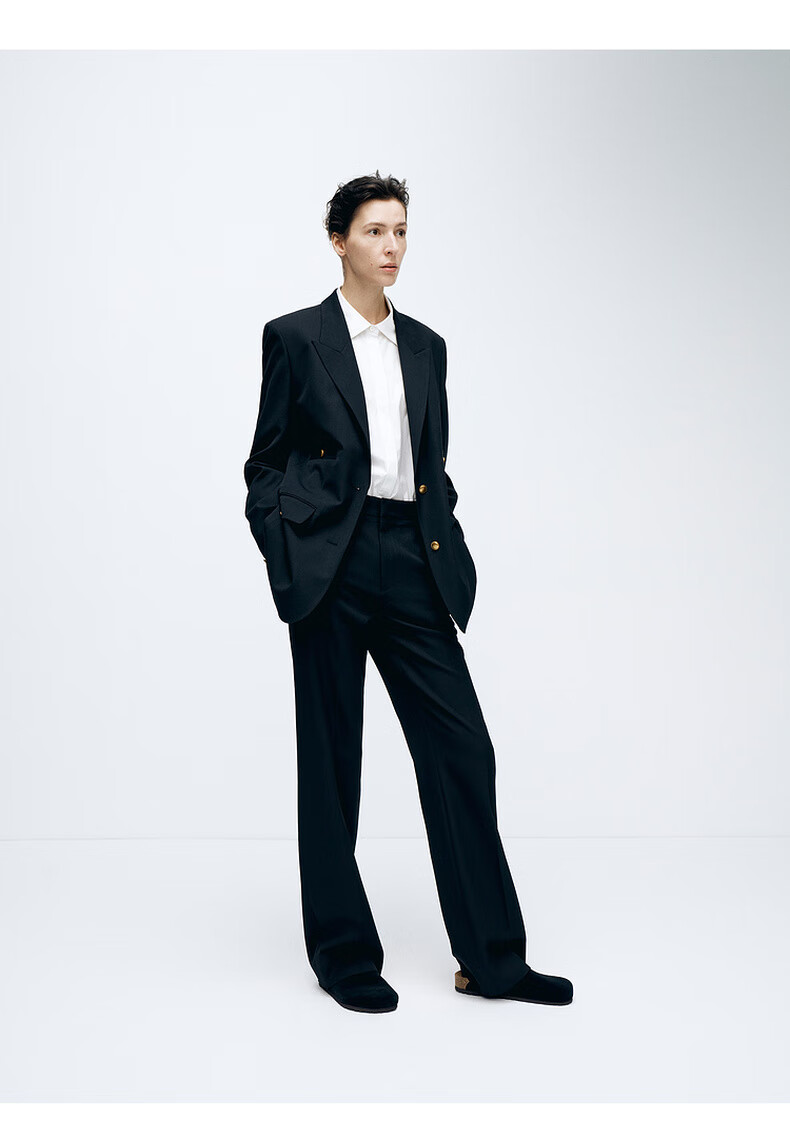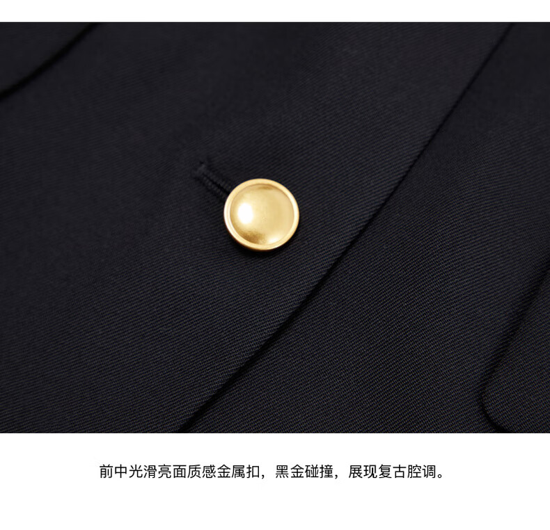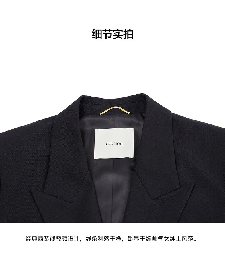 edition【高圆圆同款】西装外套春新款复古戗驳领黑色羊毛精纺女绅士 黑色K01 S (160)