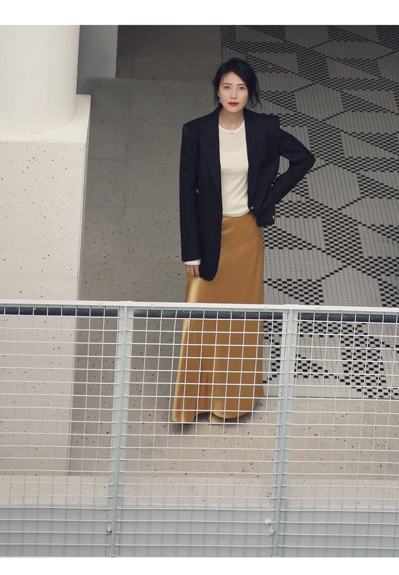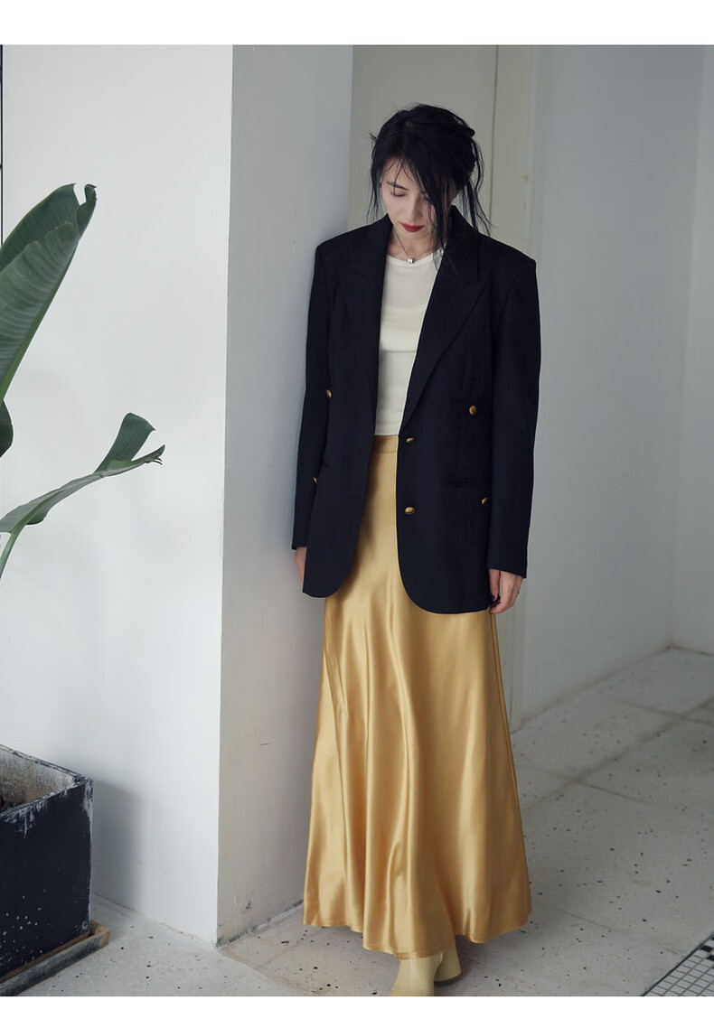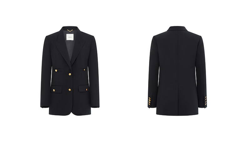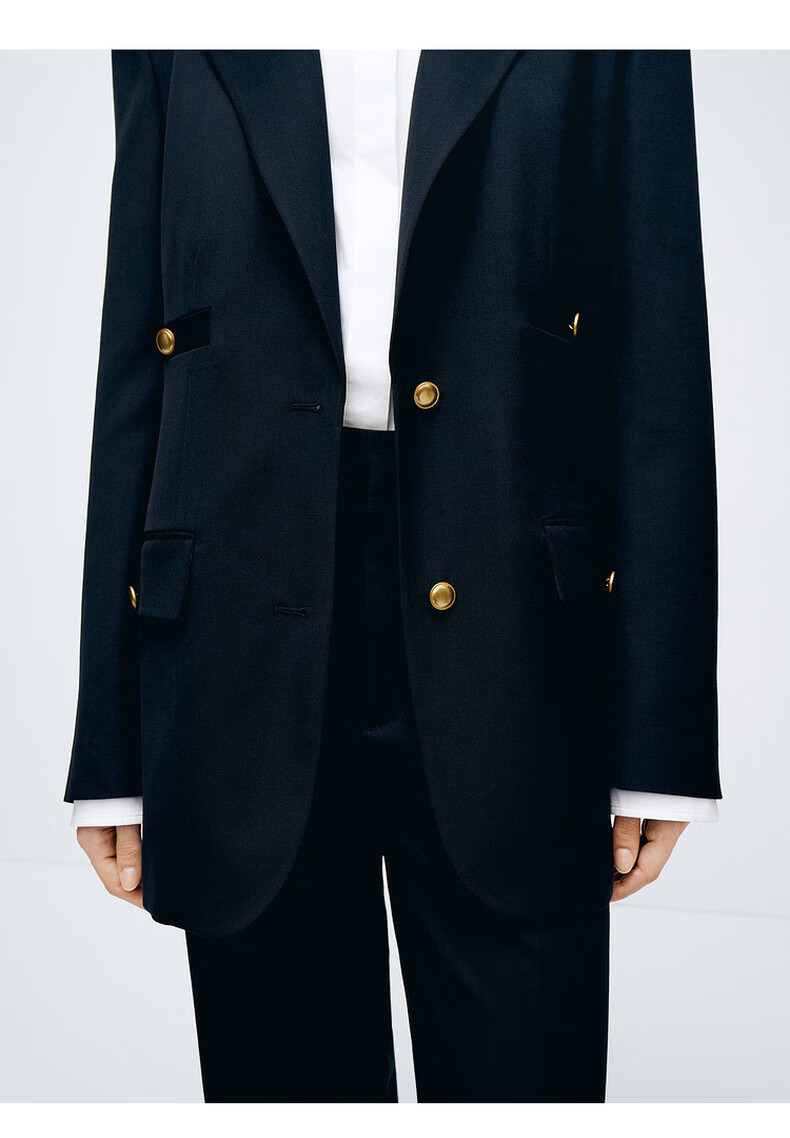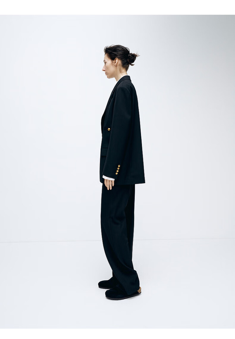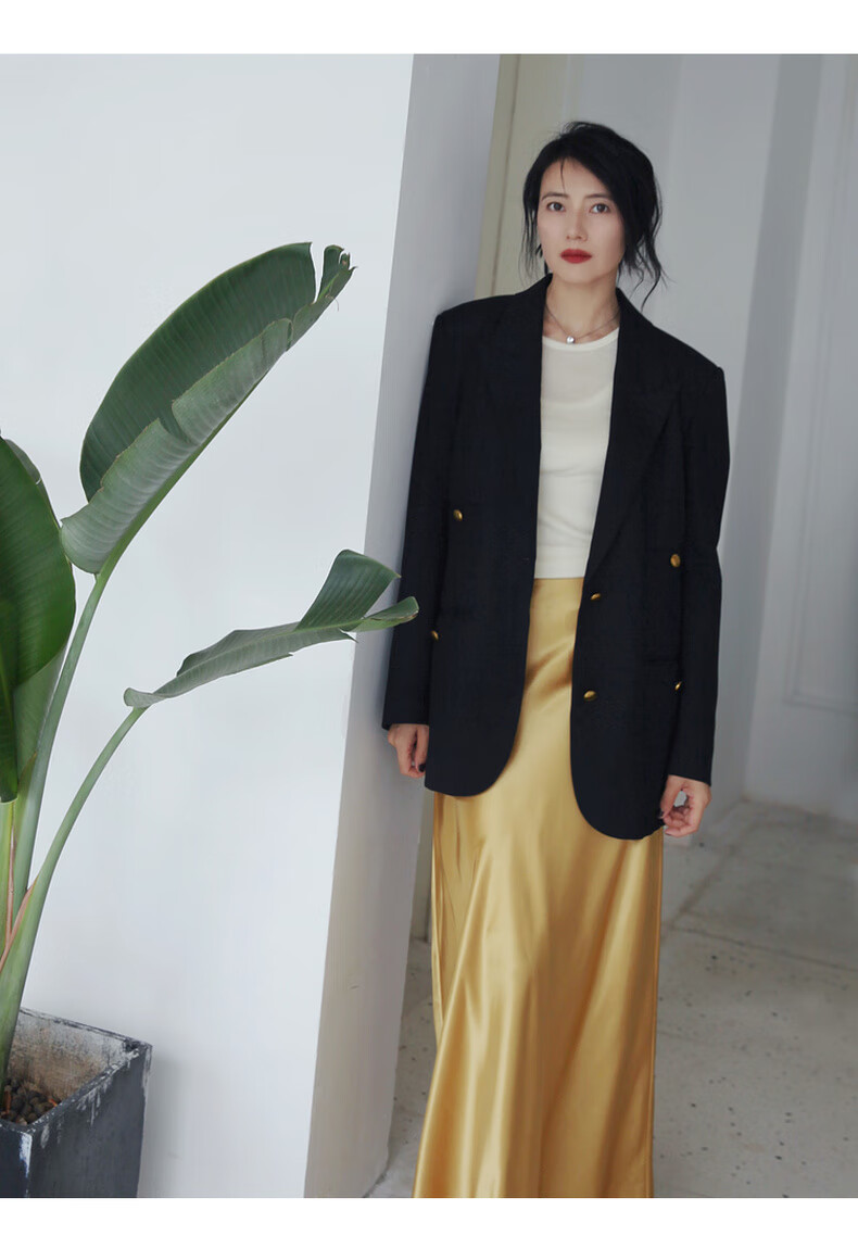 edition【高圆圆同款】西装外套春新款复古戗驳领黑色羊毛精纺女绅士 黑色K01 S (160)