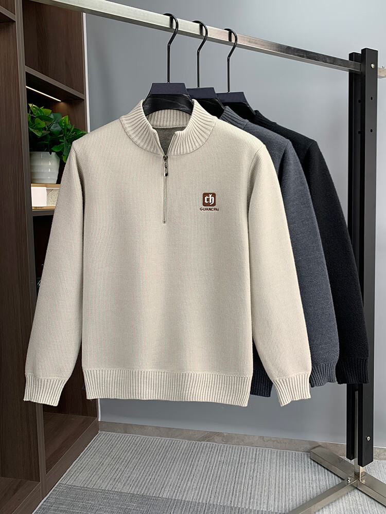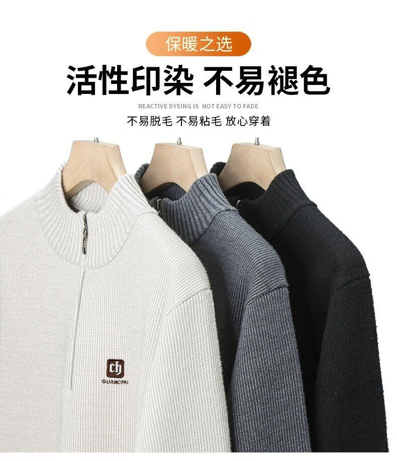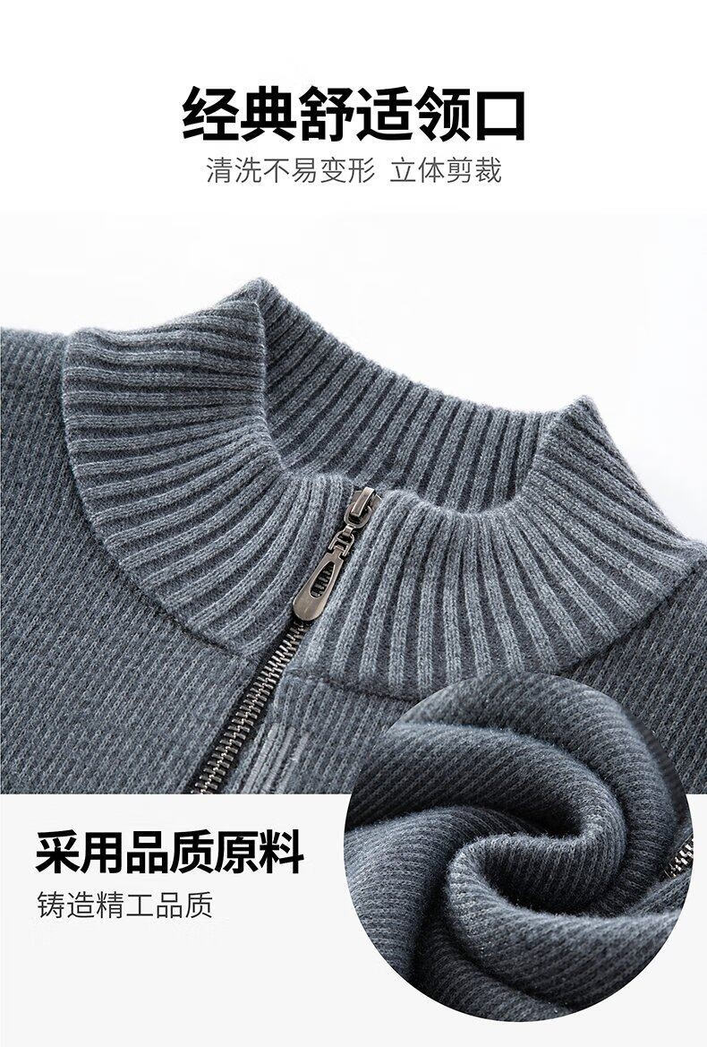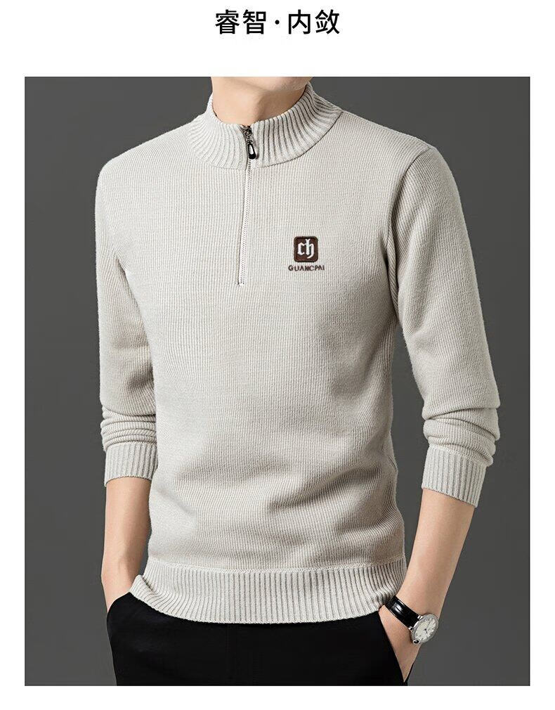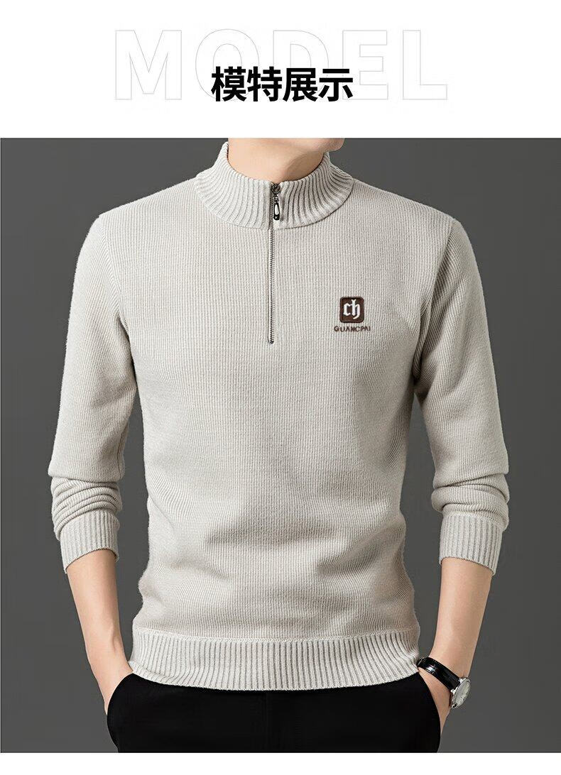 Woodpecker all-in-one velvet zipper half turtleneck men's sweater plus velvet thickened warm men's winter 2025 new thermal top beige plus velvet XL