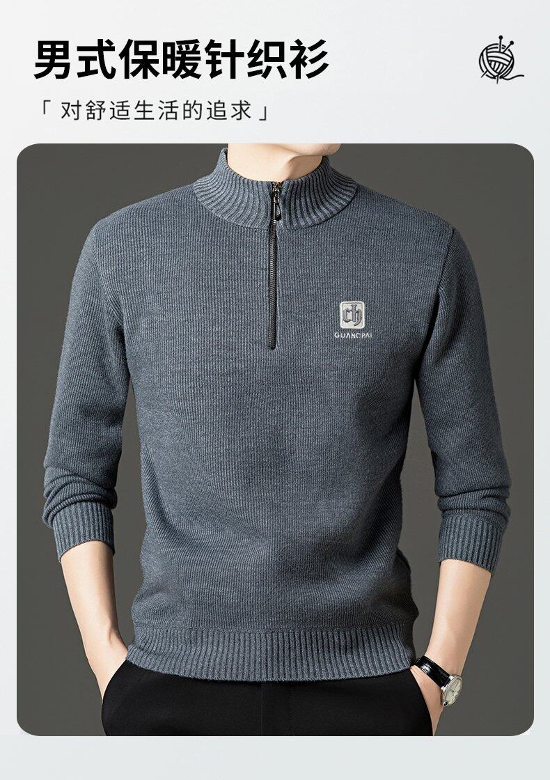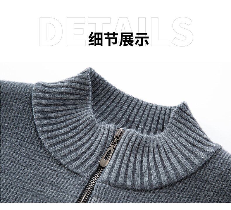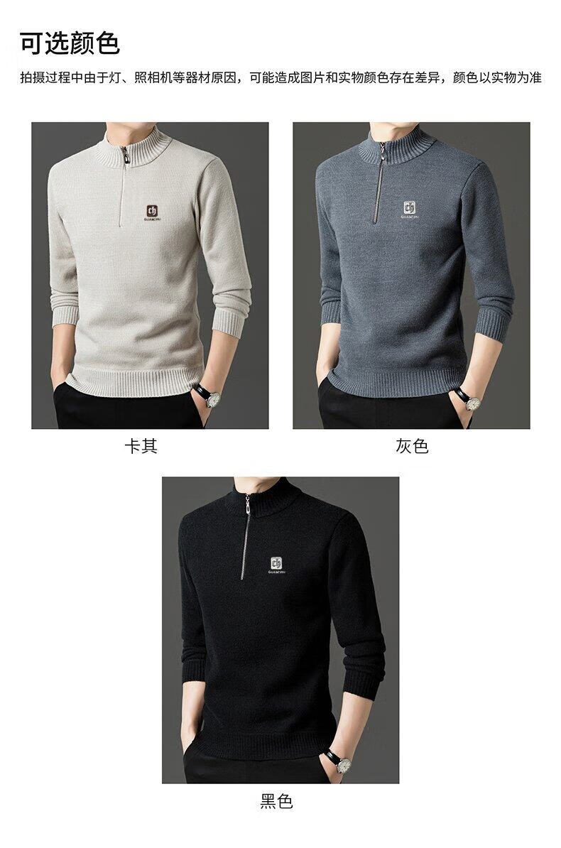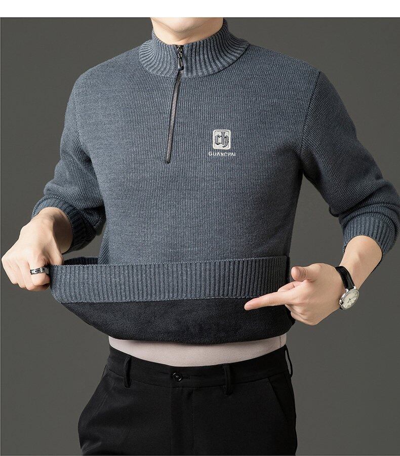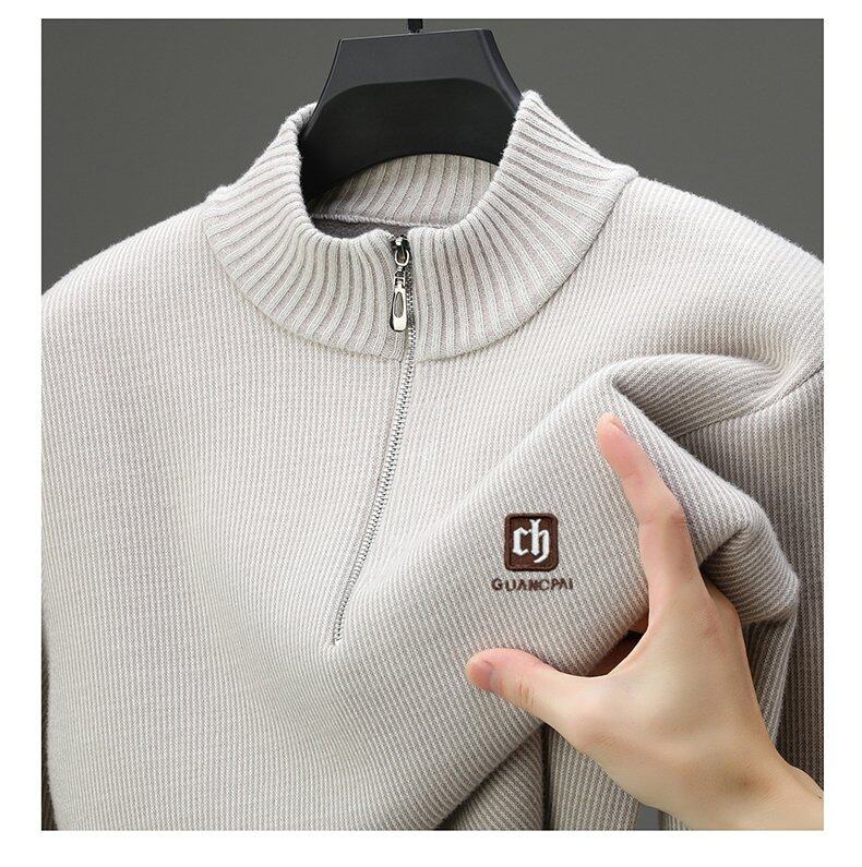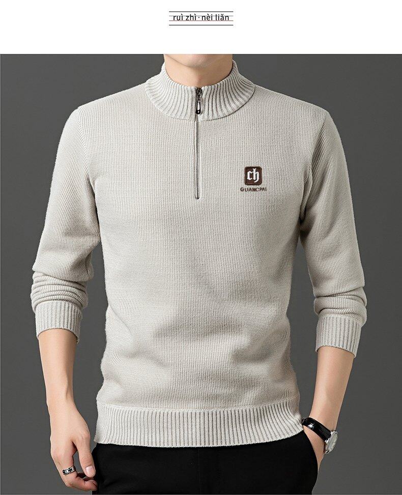 Woodpecker all-in-one velvet zipper half turtleneck men's sweater plus velvet thickened warm men's winter 2025 new thermal top beige plus velvet XL