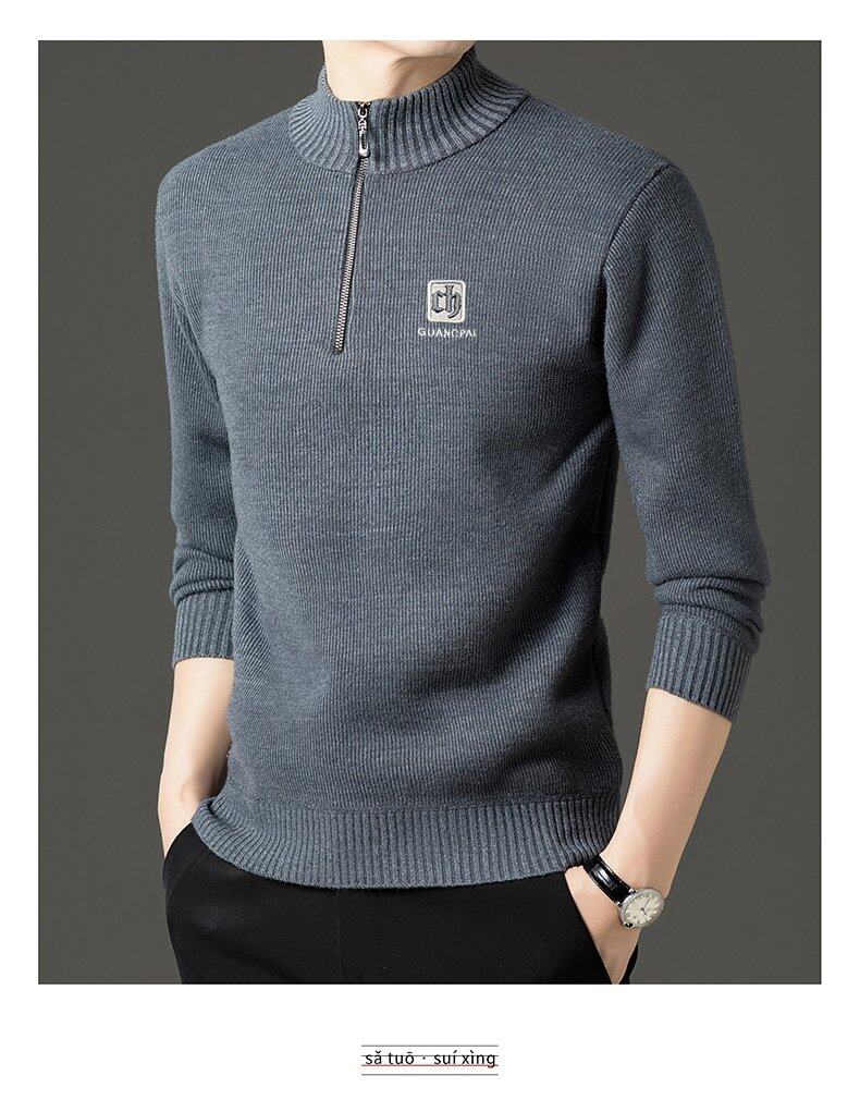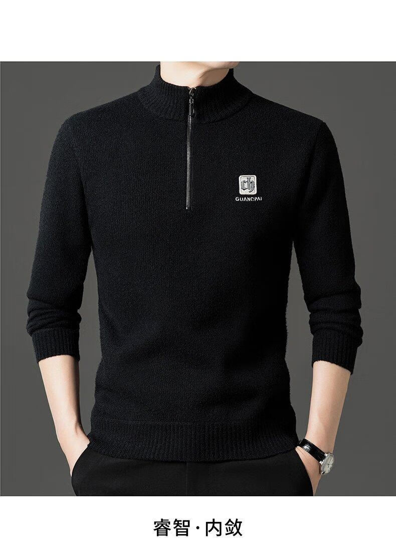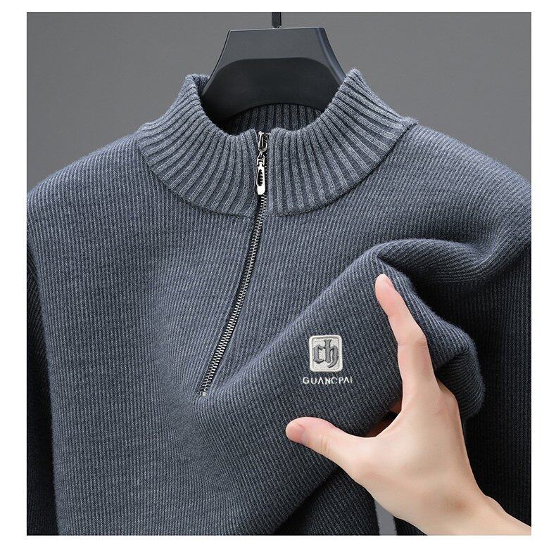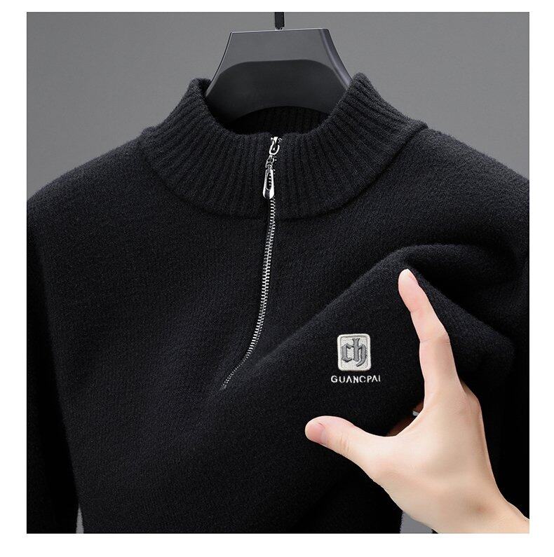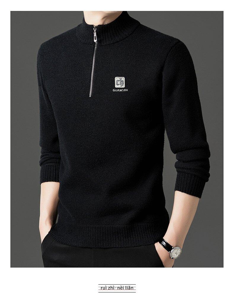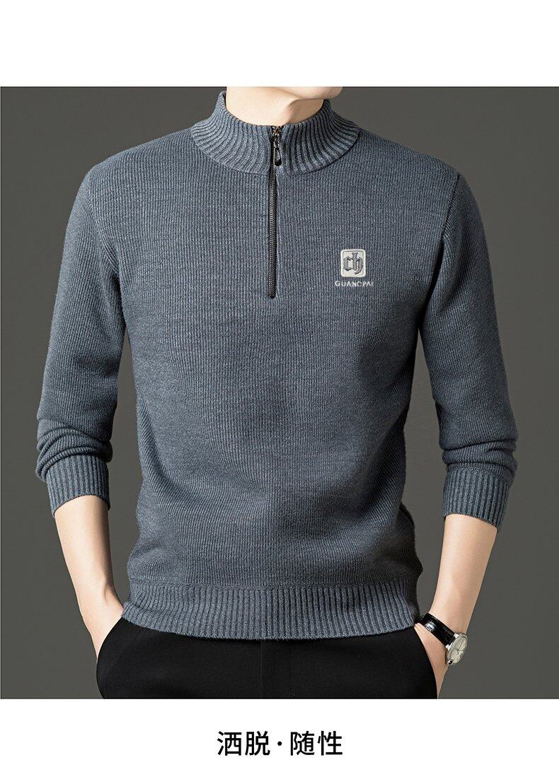 Woodpecker all-in-one velvet zipper half turtleneck men's sweater plus velvet thickened warm men's winter 2025 new thermal top beige plus velvet XL