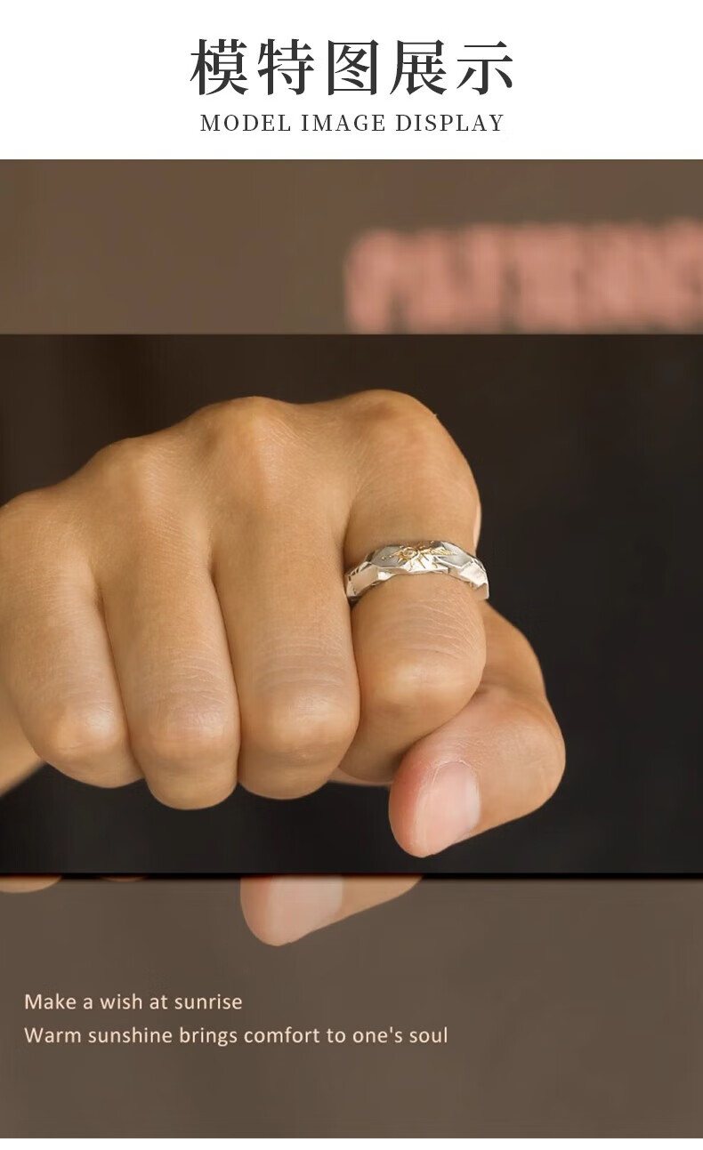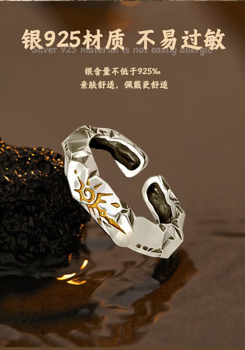China Gold S925 Silver Wishing Stone Ring Men's Live Single Tail Ring Practical Birthday Gift for Boys to Give to Boyfriend Romantic Rose Gift Box *Shipping from Yakura/Fast Delivery
