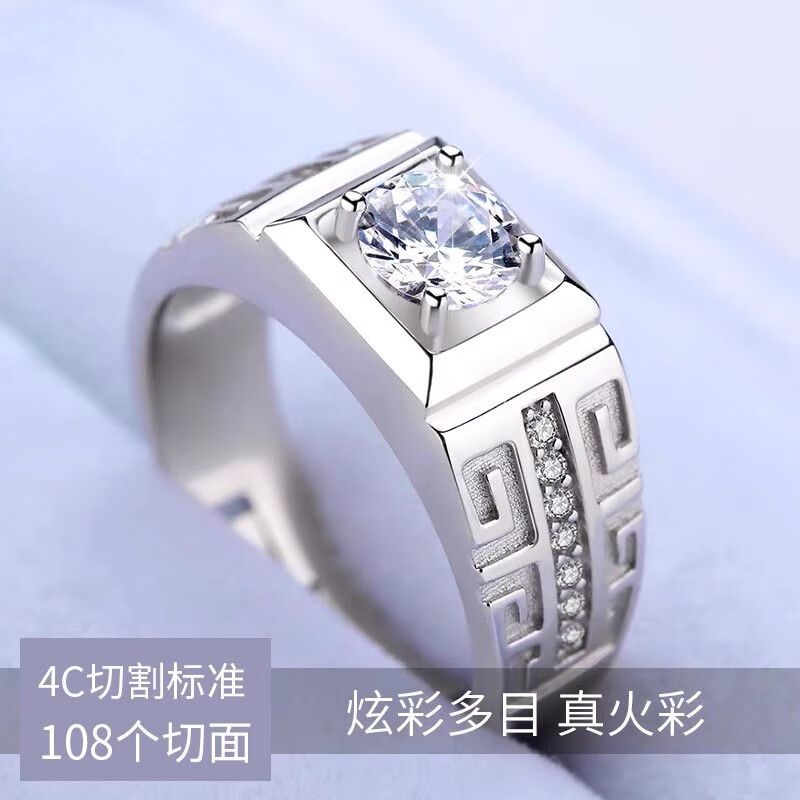 DRSJ platinum men's ring platinum diamond ring diamond ring PT950 living ring wedding ring for boyfriend's birthday gift four-claw smooth men's ring light luxury model 50 points
