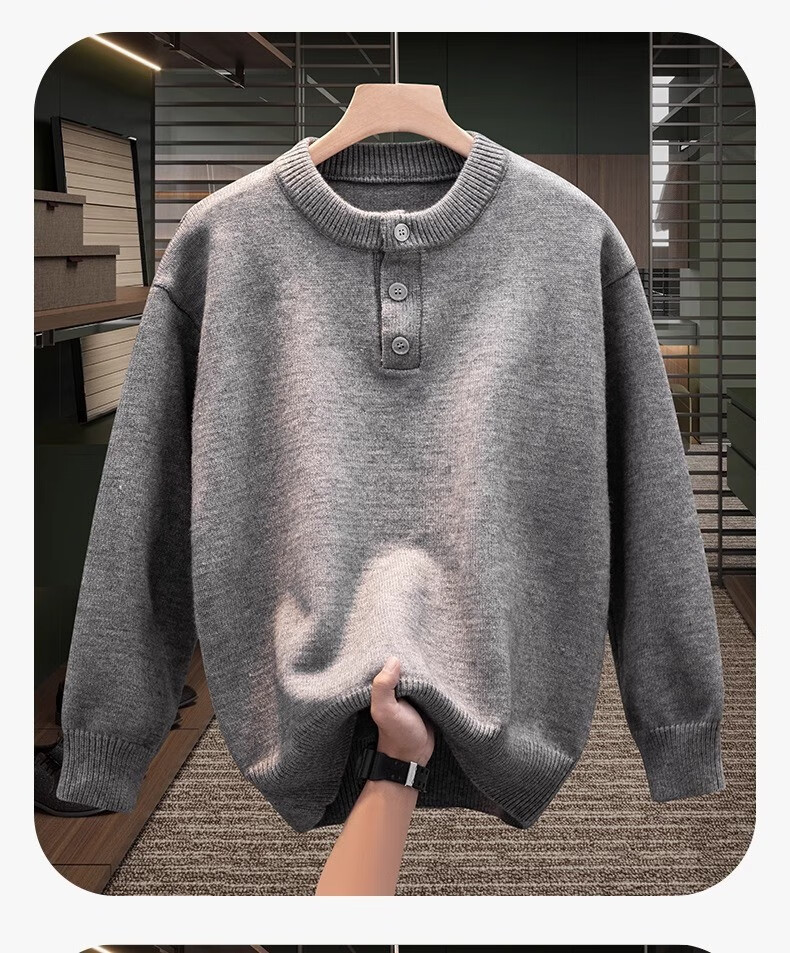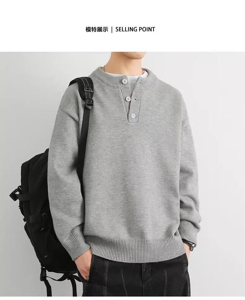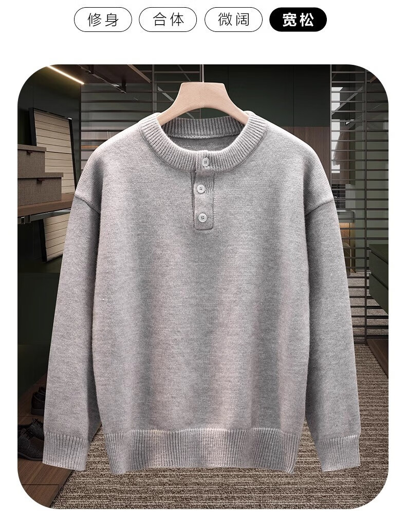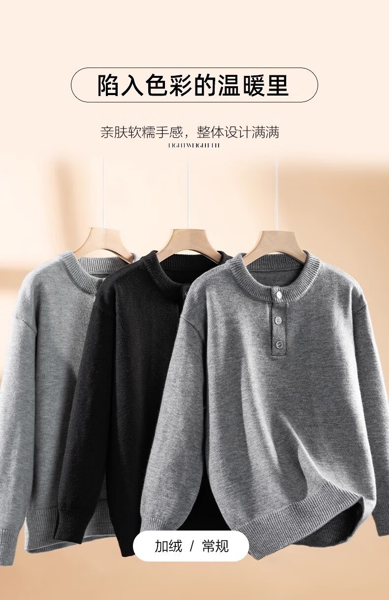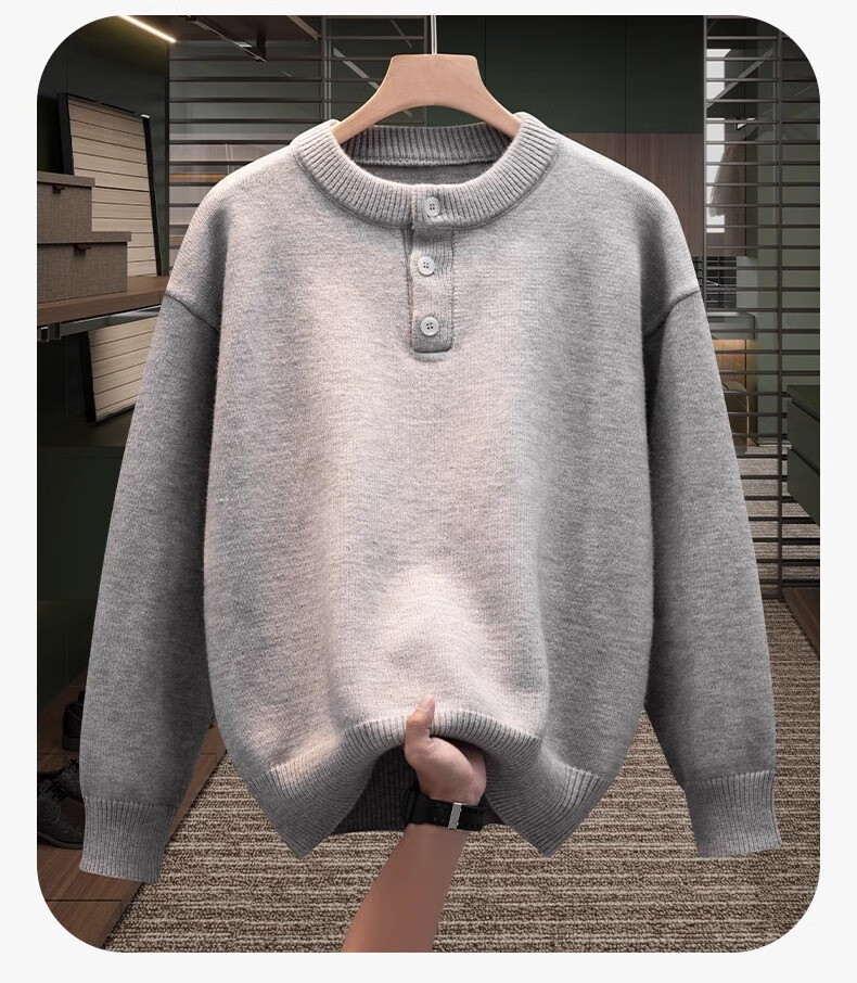 Xingsuyao (xingsuyao) 2024 new winter style pullover solid color thickened sweater trendy brand sweater trendy brand men's sweater long-sleeved round neck light gray MY901 Henry collar deer plush XL