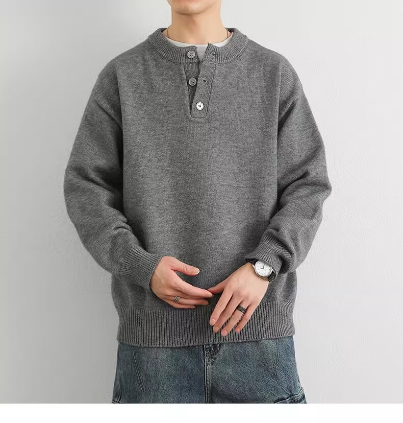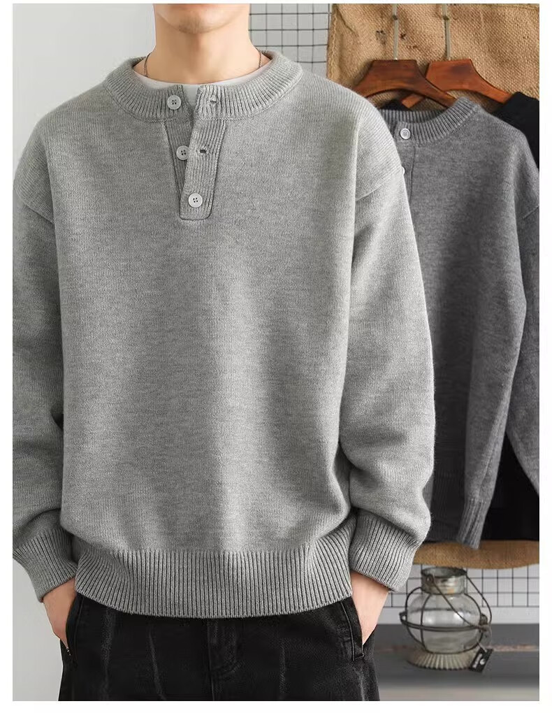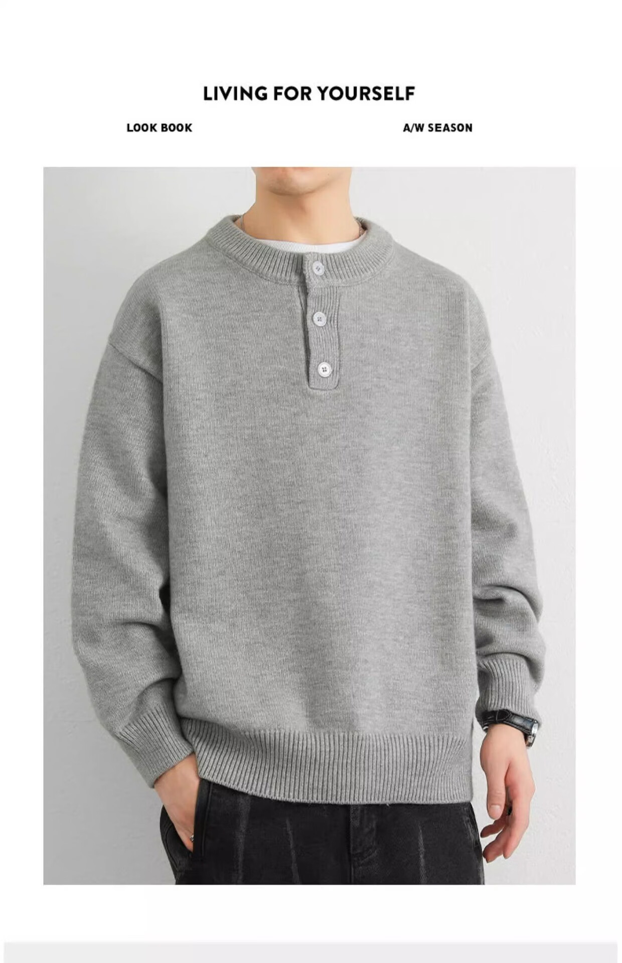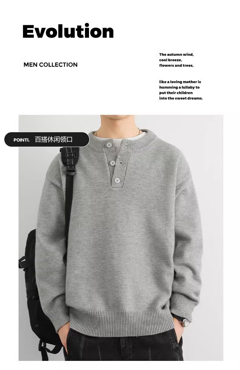 Xingsuyao (xingsuyao) 2024 new winter style pullover solid color thickened sweater trendy brand sweater trendy brand men's sweater long-sleeved round neck light gray MY901 Henry collar deer plush XL
