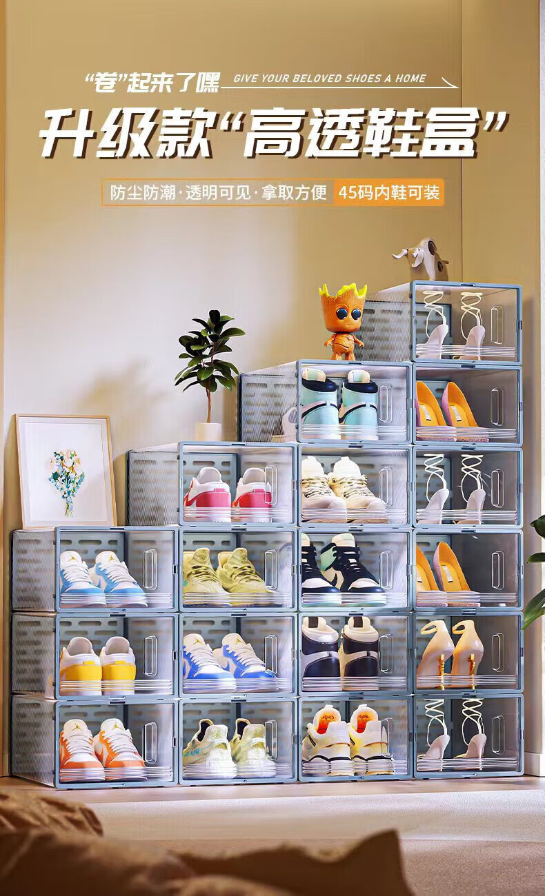 Ai style transparent shoe box storage box shoe cabinet shoe storage acrylic shoe rack anti-oxidation display box hard box storage cabinet gray 6 pieces can hold 45 size shoes