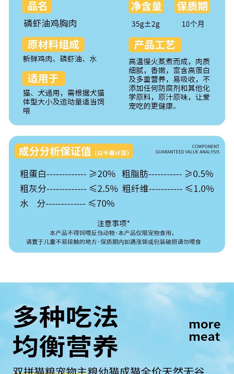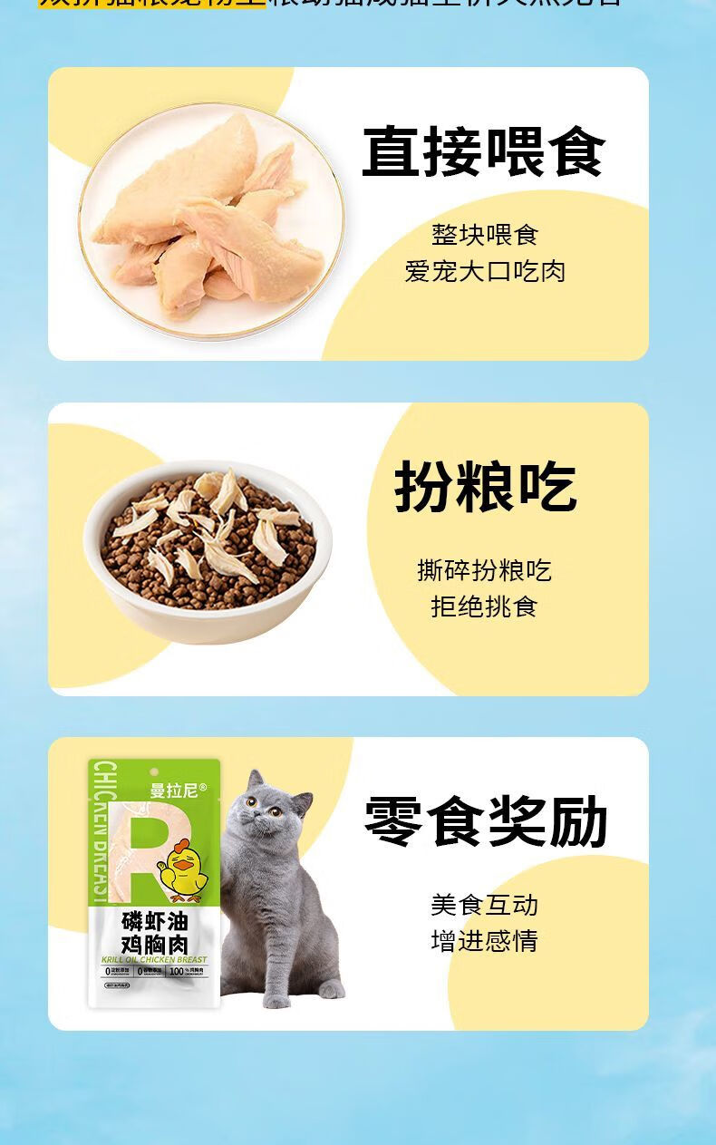Baichan High-temperature Steamed Chicken Breast Cat Snacks Ready-to-eat Chicken Nutritional Fattening Pet for Kittens and Adults Krill Oil Chicken Breast 18 Bags First Choice for New Customers