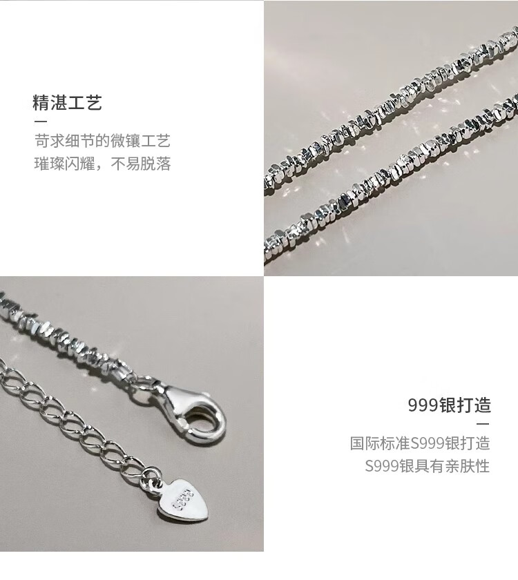 High-end 999 sterling silver broken silver bracelet, light luxury bestie bracelet, niche design broken silver girl's bracelet, broken silver bracelet