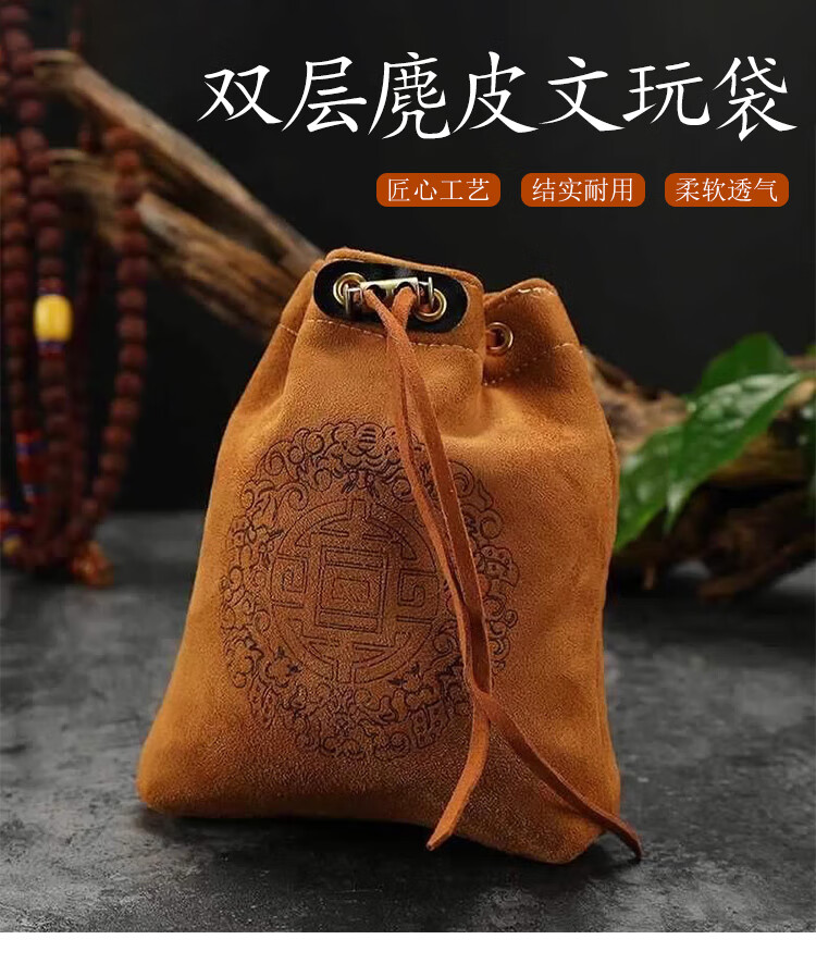Lingjiujiuwen Toy Suede Bag Plate Beads Walnut Bag Xingyue Bodhi Rosewood Buddha Beads Bracelet Toy Jewelry Storage Bag Medium Size