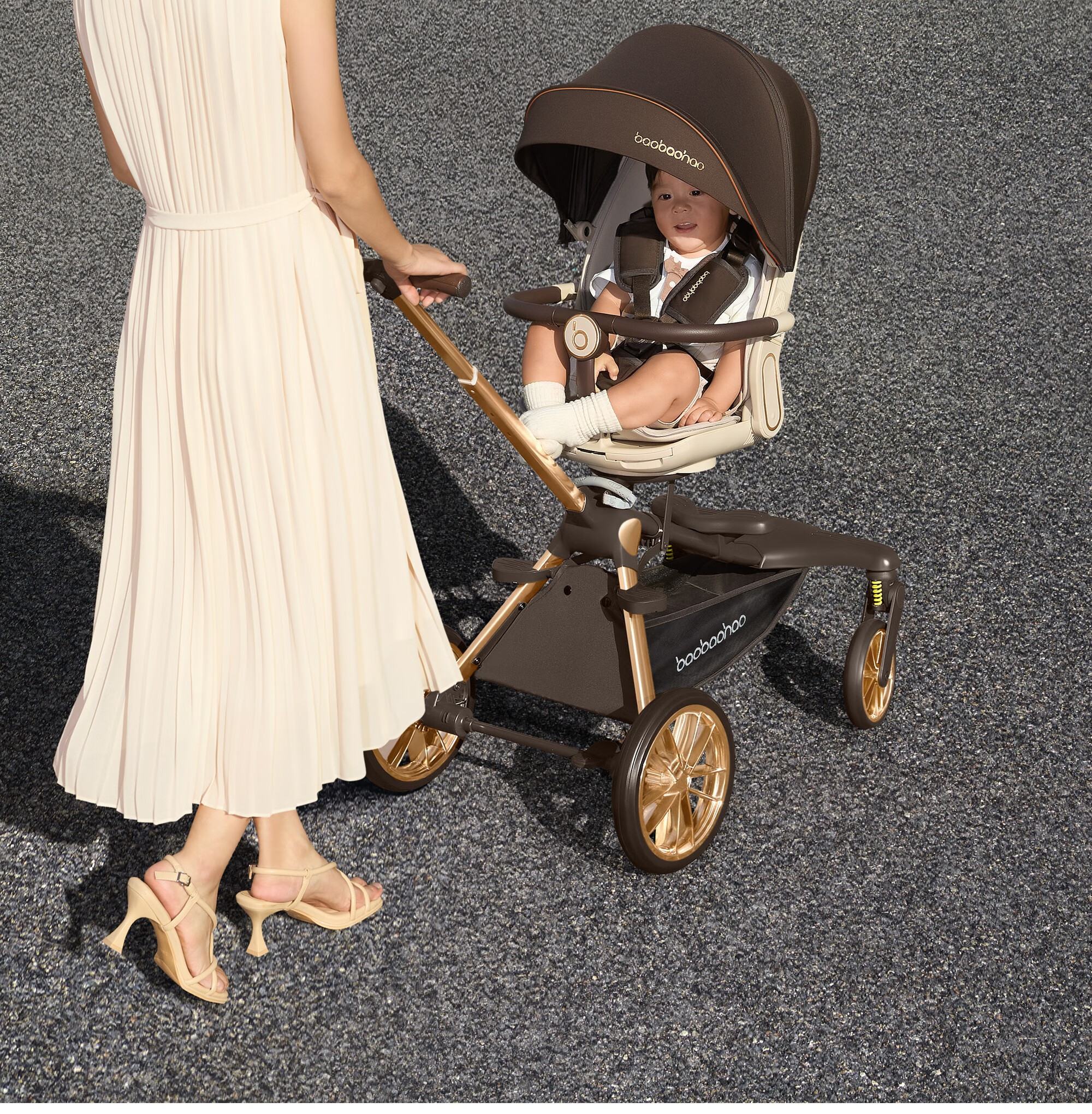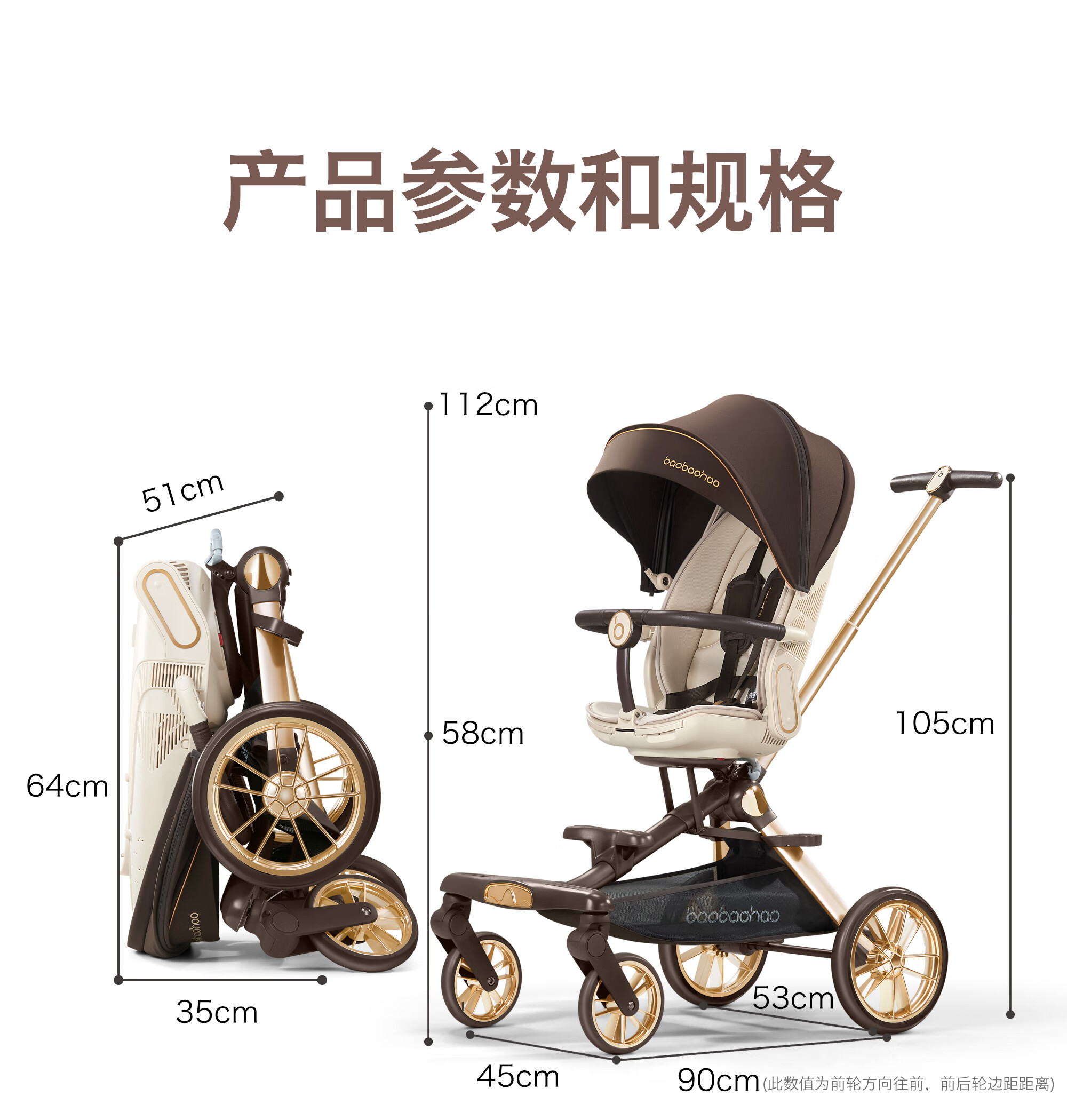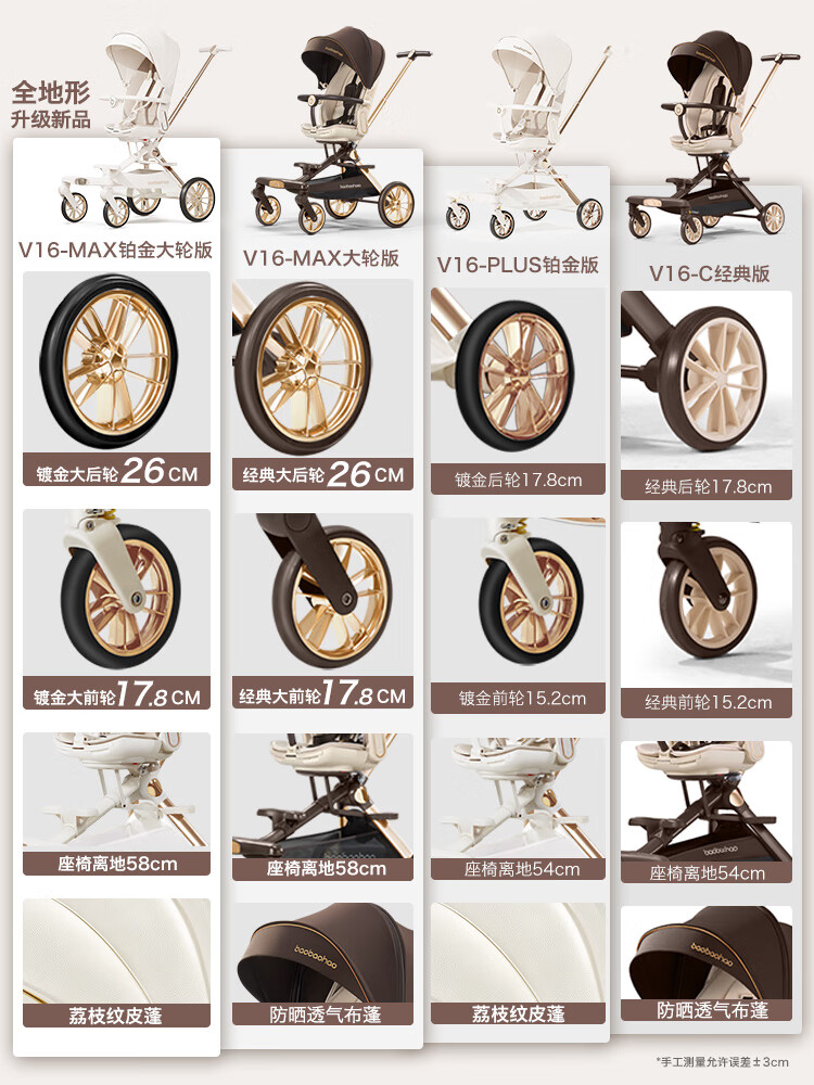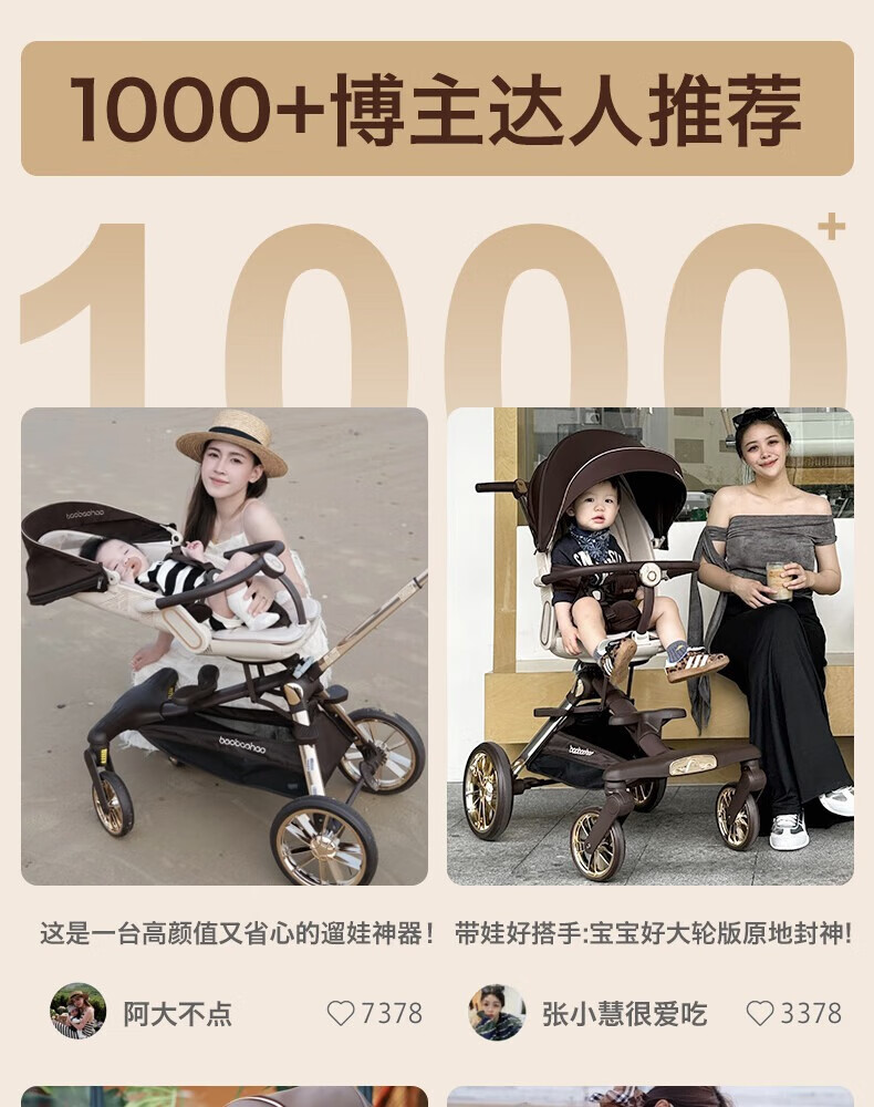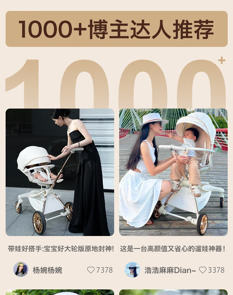 Baby Hao V16Max Big Wheel Baby Walking Magic All-terrain Two-way High View Shock Absorption Lightweight Foldable Sit-Recline Baby Stroller V16MAX Caramel Milk Tea Big Wheel Edition + Big Gift Pack