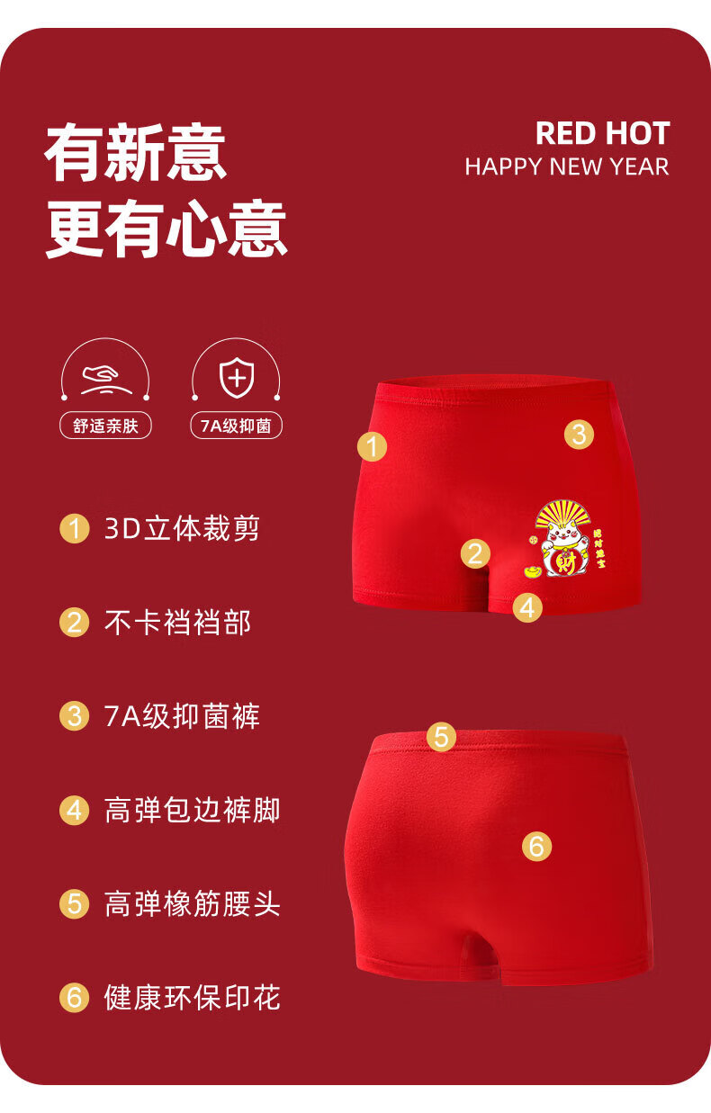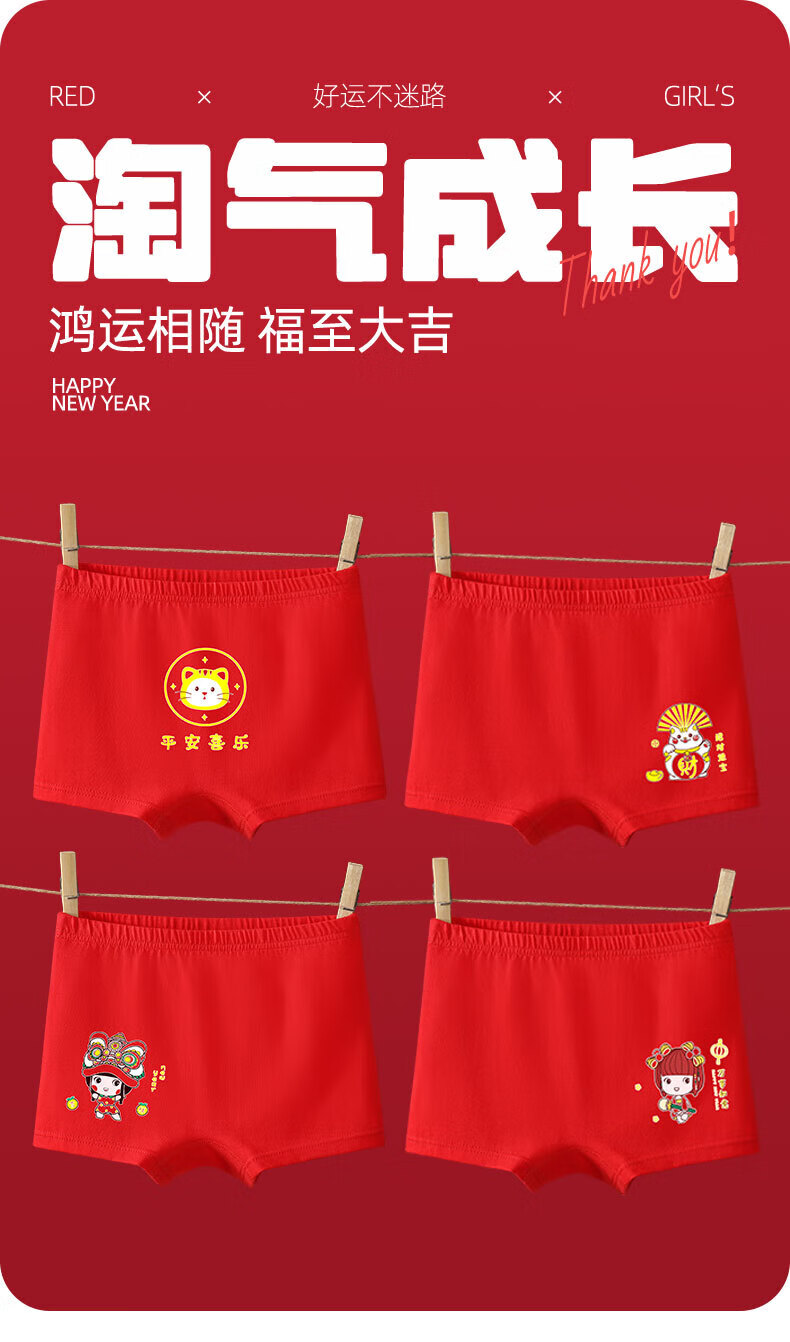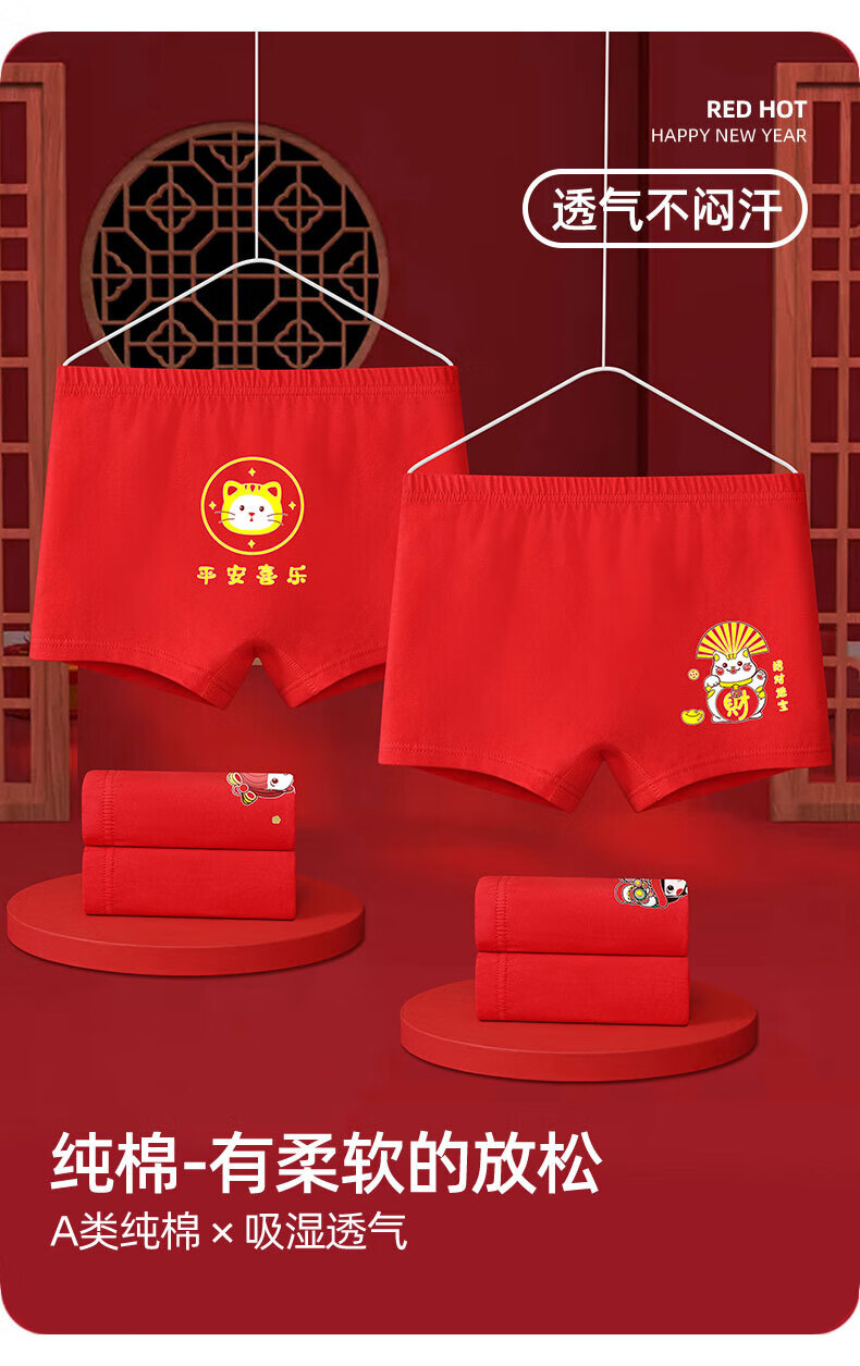 Langsha Children's Underwear Boys Class A Zodiac Year New Year Girls Red Boxer-angle Festive Big Children's Chinese Red Boxer Pants Girls-Peace and Joy 4 pieces 150 Recommended 50-60Jin Jin is equal to 0.5 kg