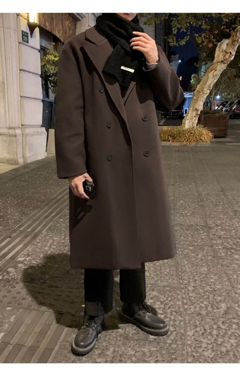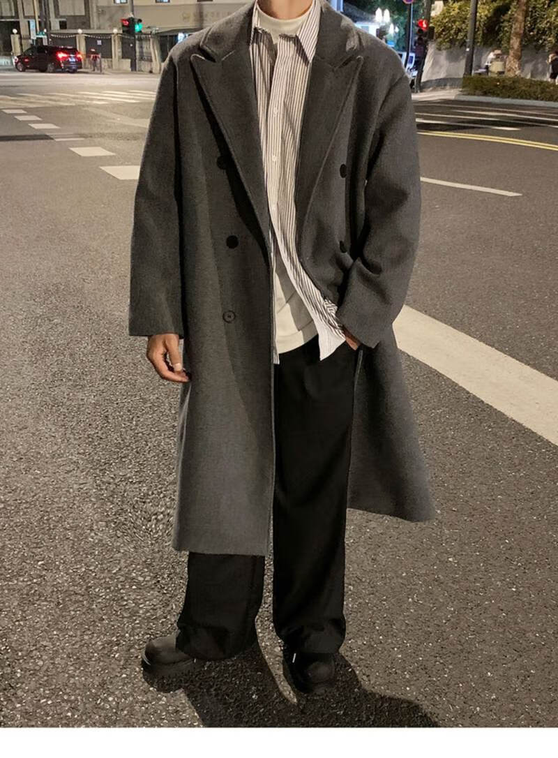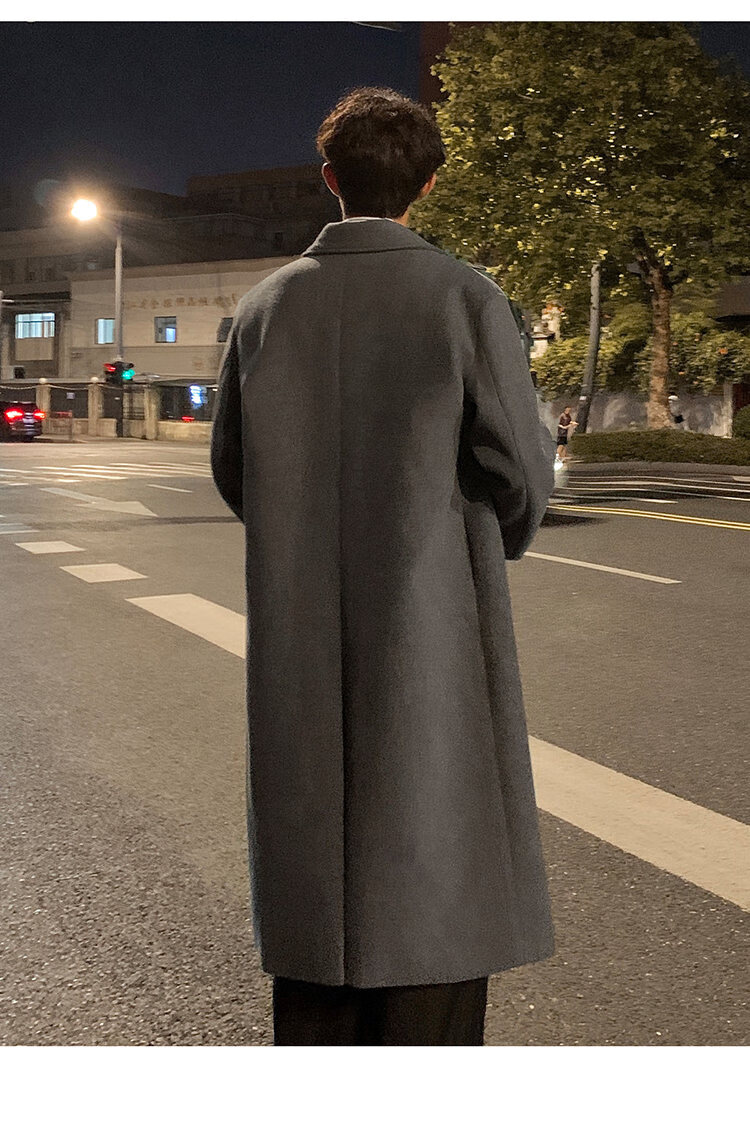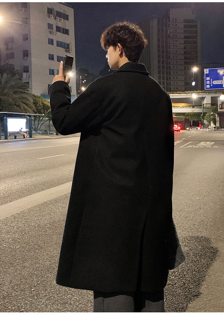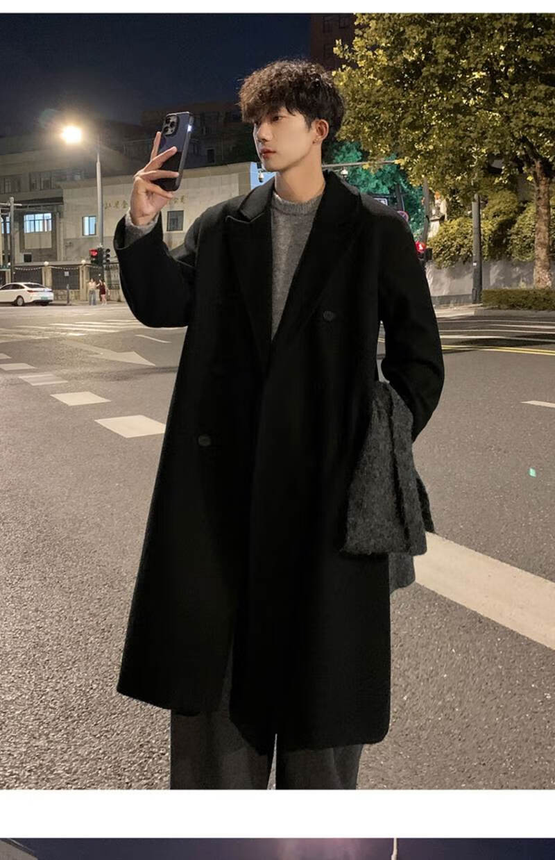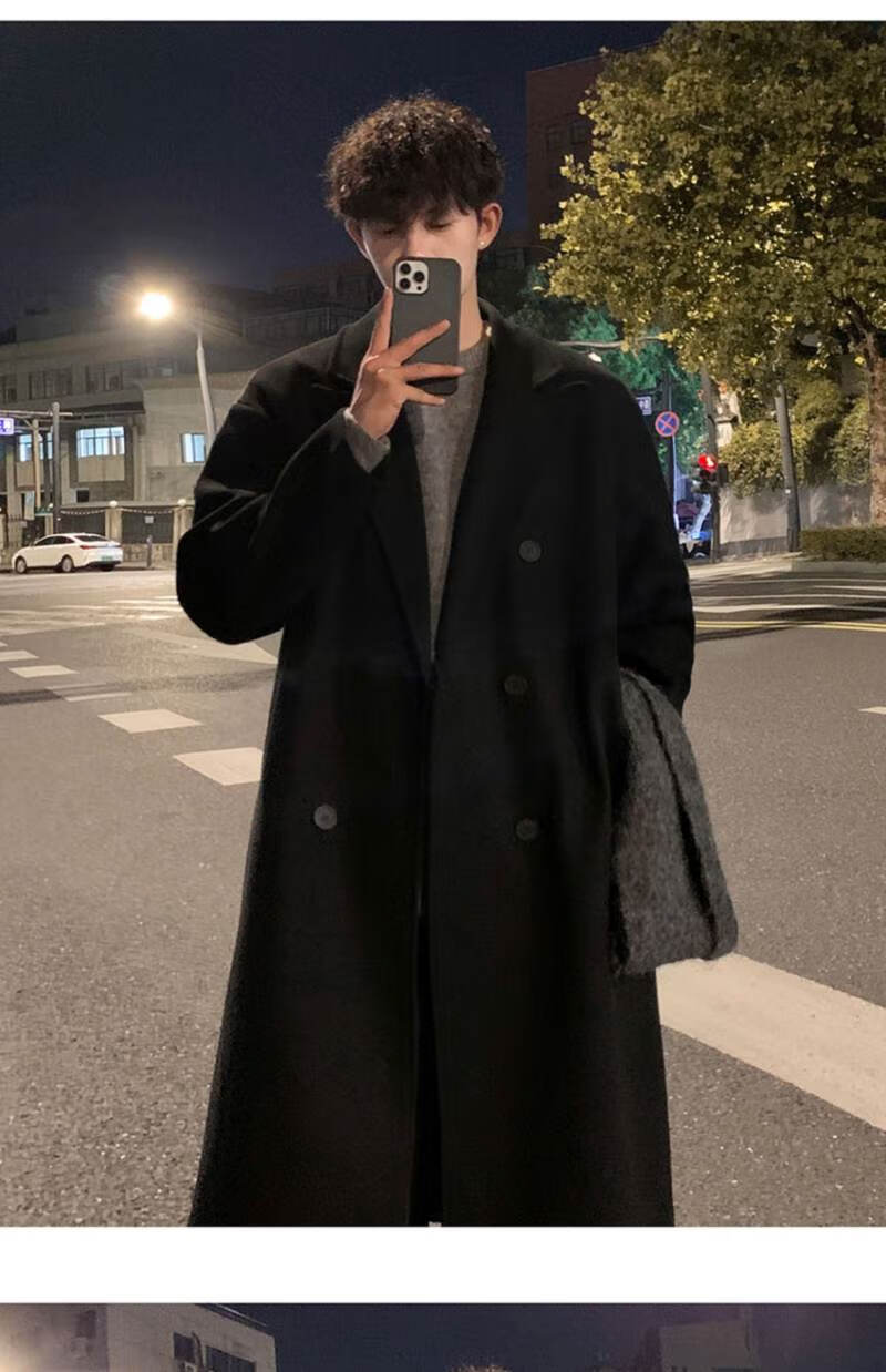 Pierre Cardin Korean style winter trendy thickened woolen coat men's British style 2024 casual extra long over-the-knee woolen windbreaker jacket black 3XL