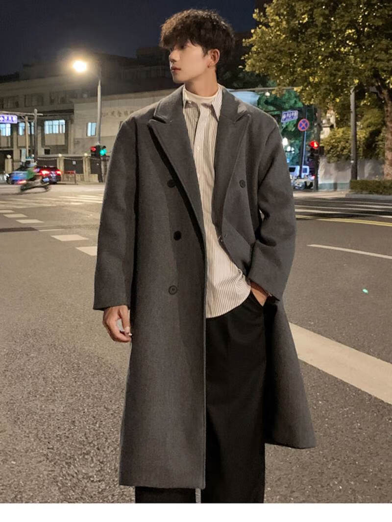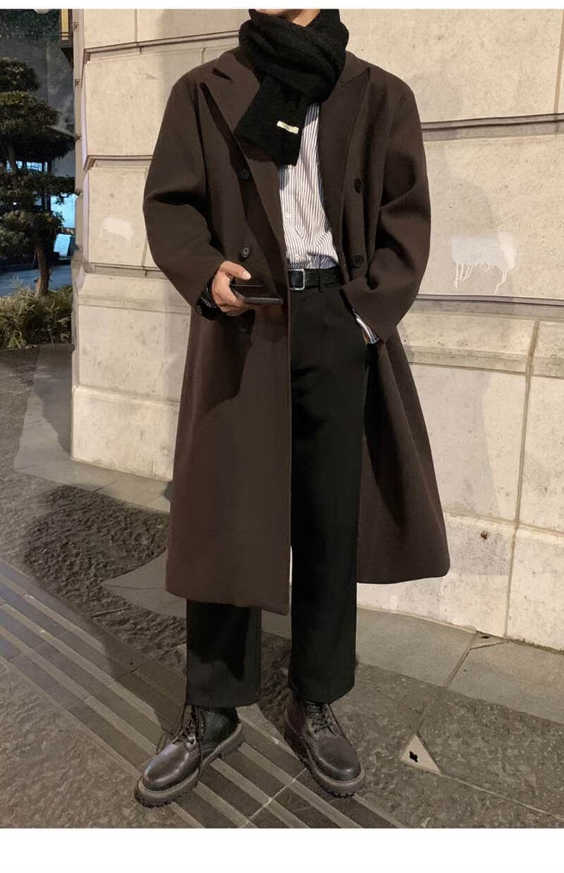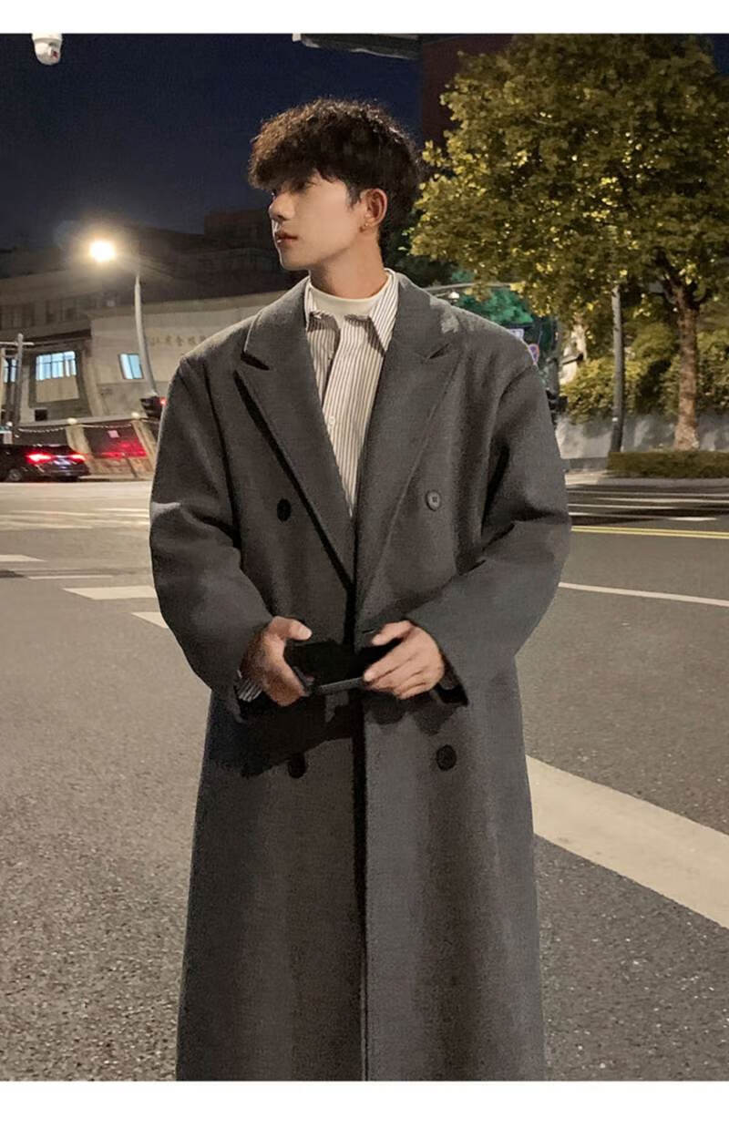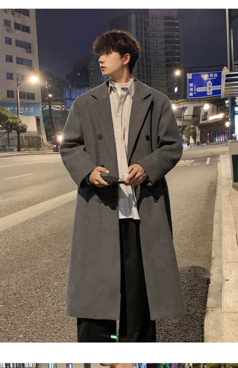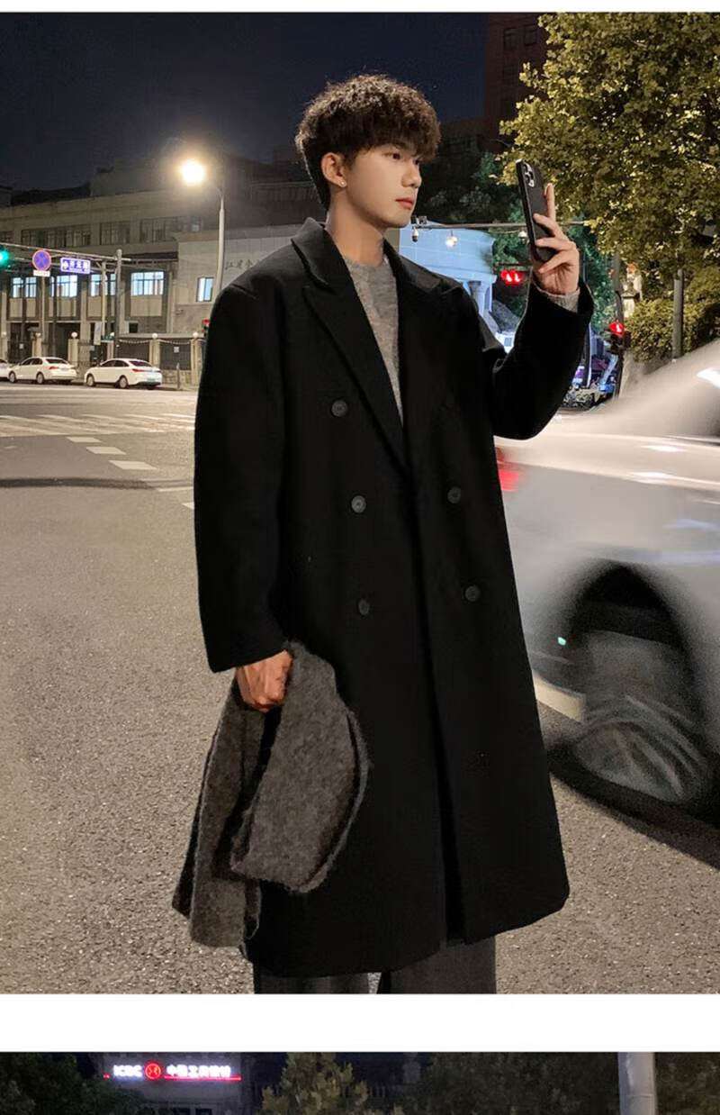Pierre Cardin Korean style winter trendy thickened woolen coat men's British style 2024 casual extra long over-the-knee woolen windbreaker jacket black 3XL