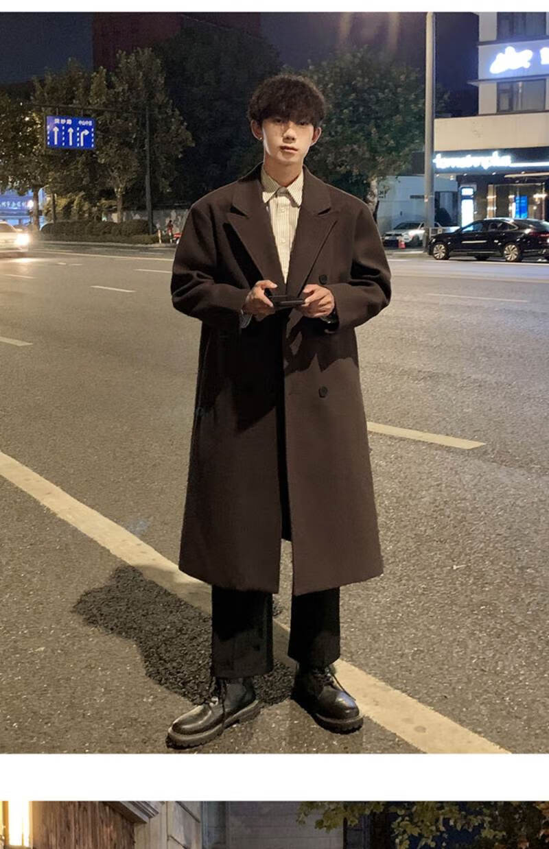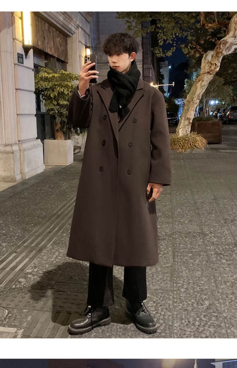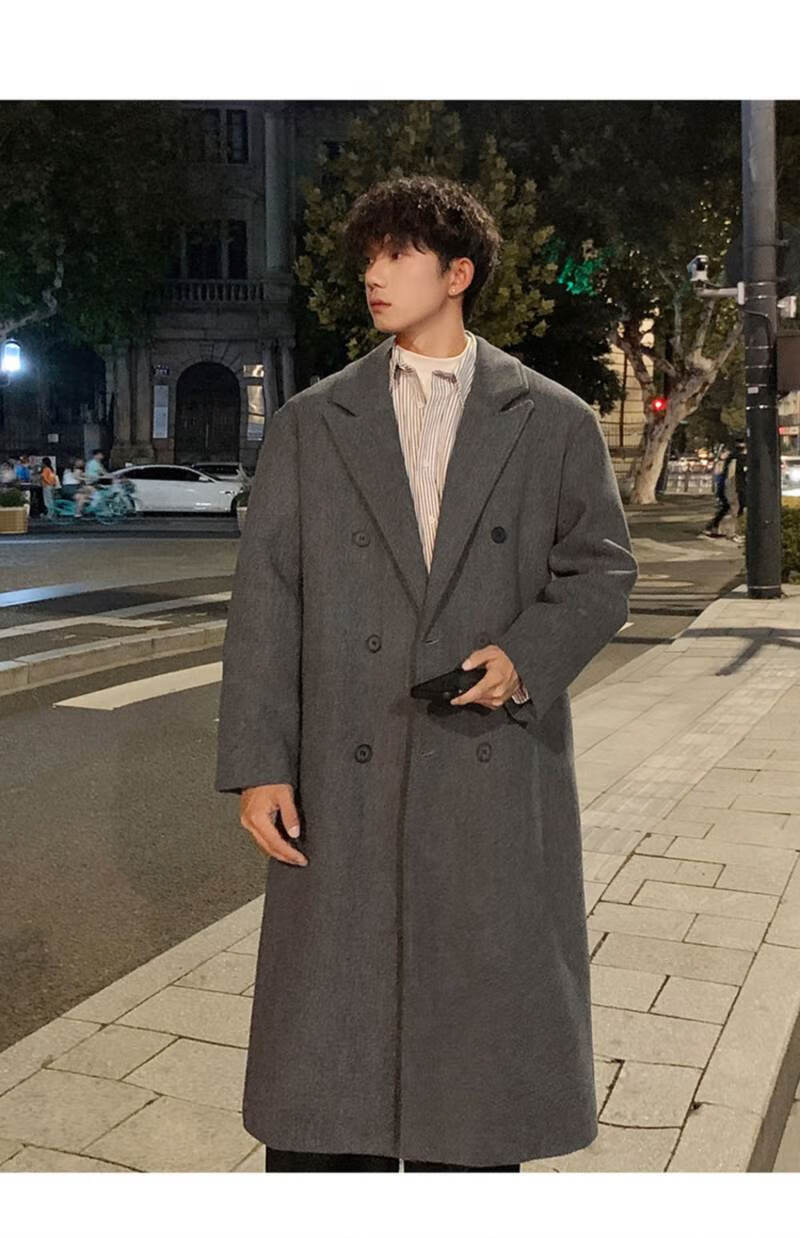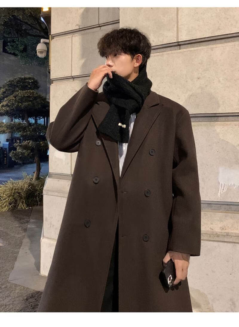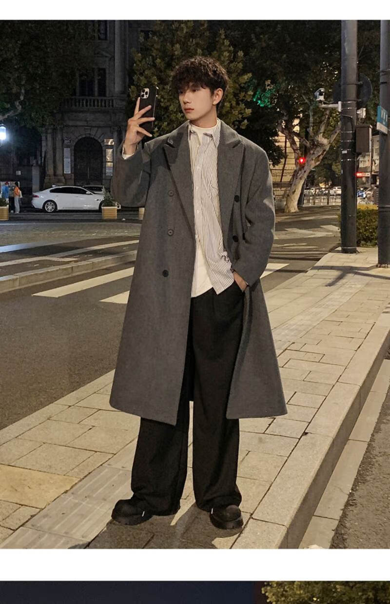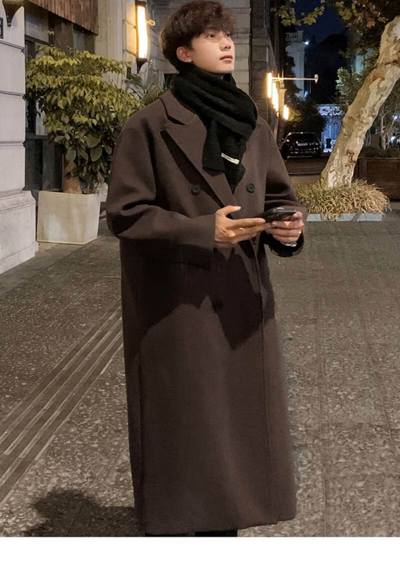 Pierre Cardin Korean style winter trendy thickened woolen coat men's British style 2024 casual extra long over-the-knee woolen windbreaker jacket black 3XL