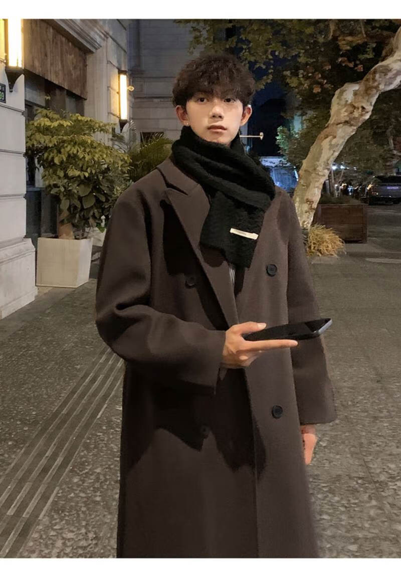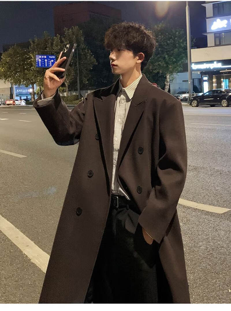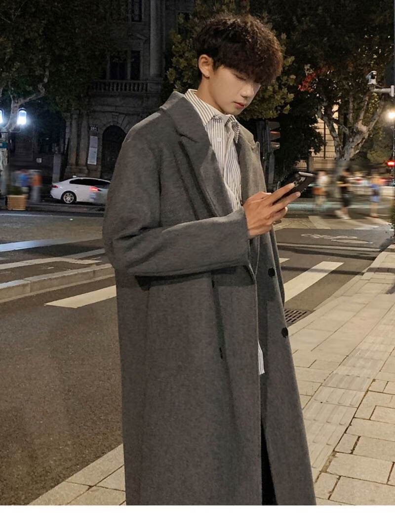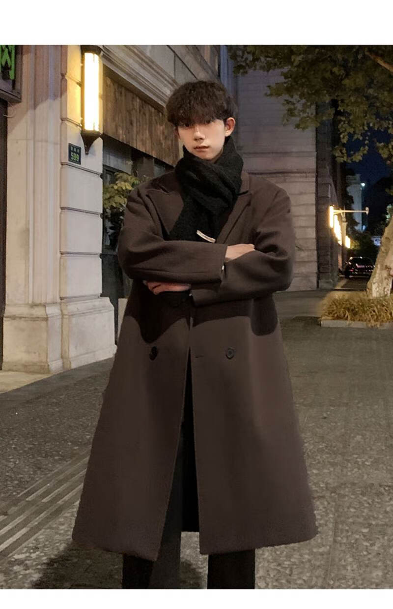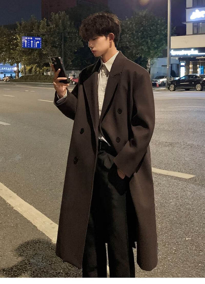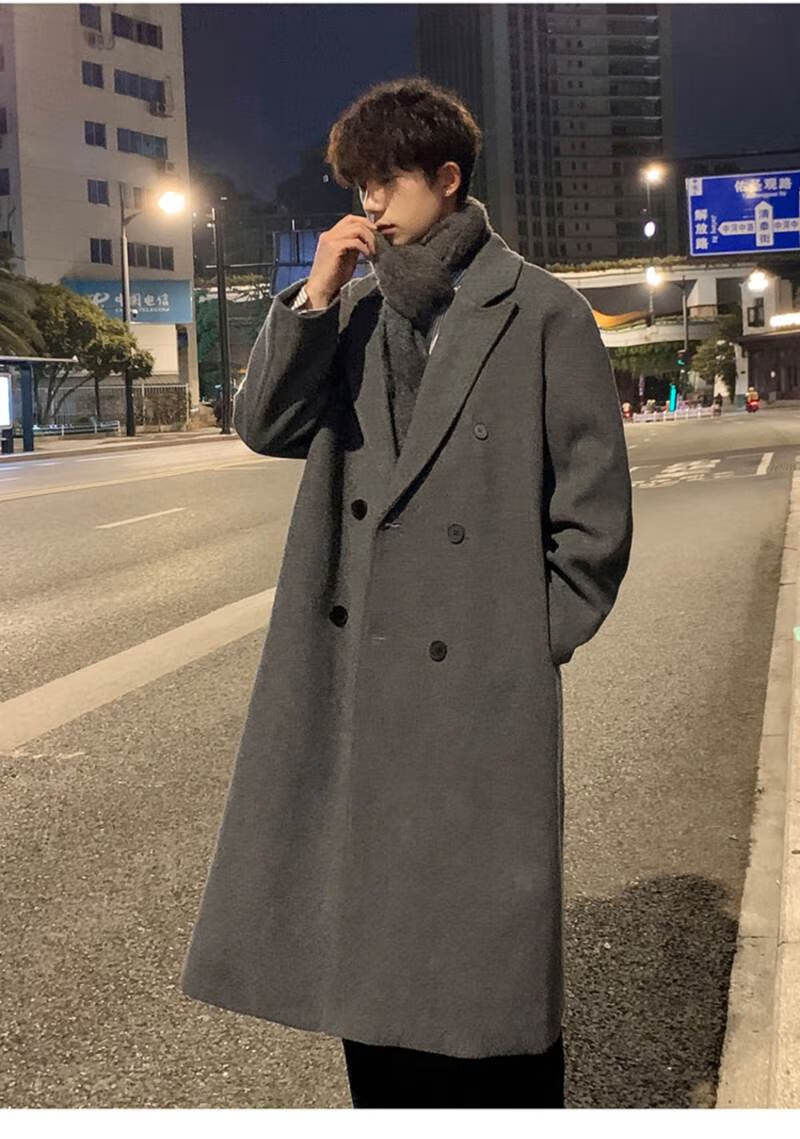 Pierre Cardin Korean style winter trendy thickened woolen coat men's British style 2024 casual extra long over-the-knee woolen windbreaker jacket black 3XL