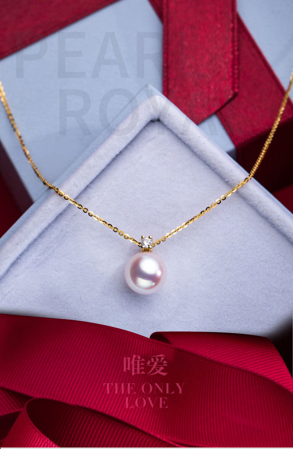 Zhongchiwei Aihepu Nanzhu 18K gold princess model inlaid with diamond seawater pearl pendant necklace akoya 18K yellow 8.5-9mm