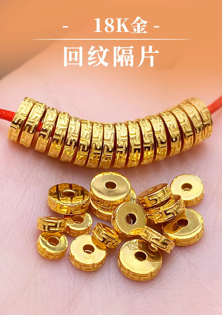 Tanjin 18K gold spacer accessories, pattern accessories, cultural toys bracelets, jade jewelry, diy gold accessories, gold spacers 4*1.6mm single 0.13-0.15g