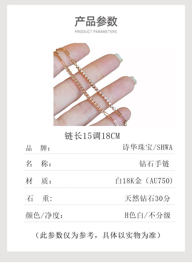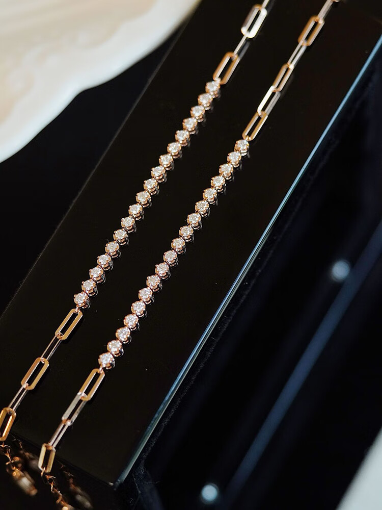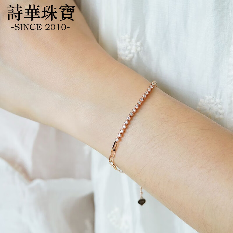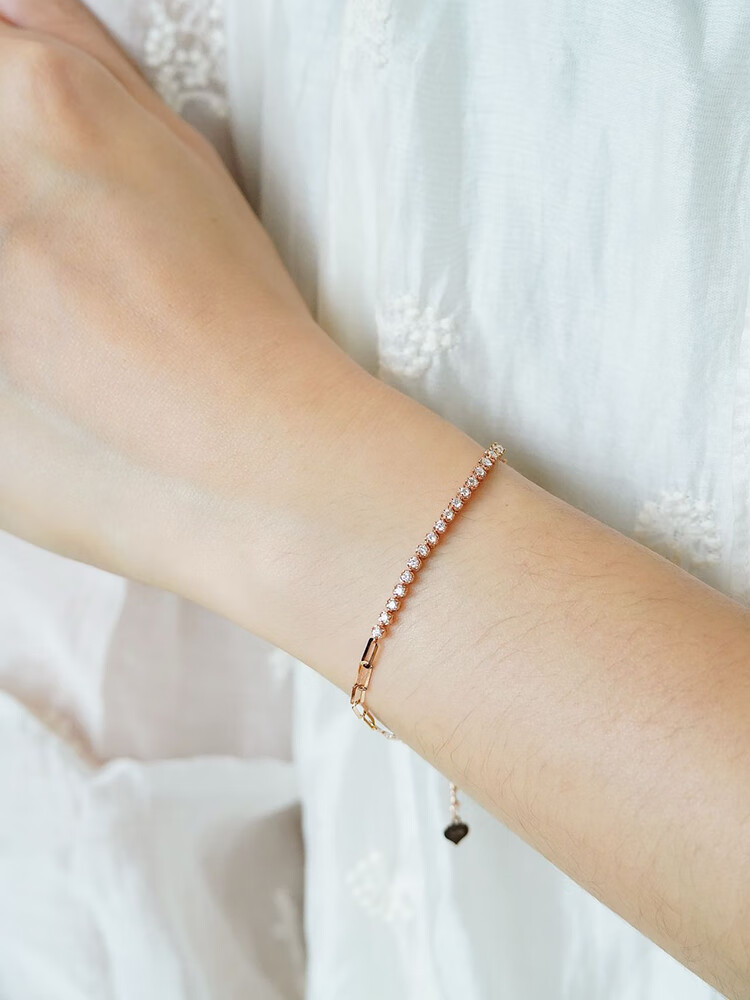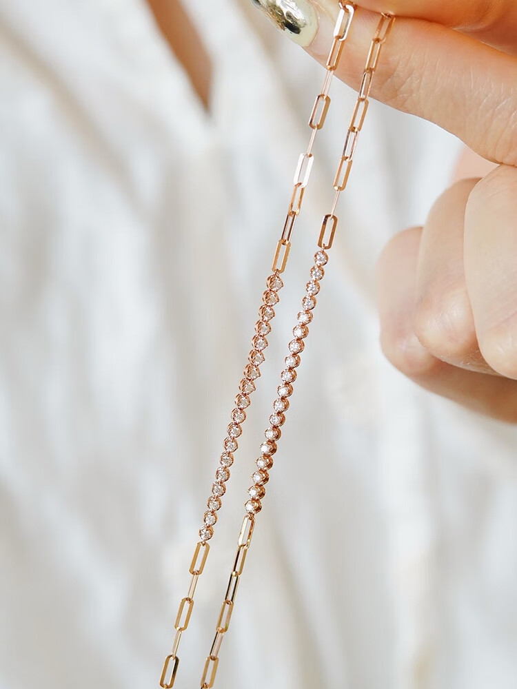 Shihua Jewelry 18K Rose Gold Row Diamond Bracelet Women's Color Gold Bracelet Chain Natural Real Diamond Bracelet Adjustable for Girlfriend Rose Gold About 30 Points Diamond (Chain Length 18cm)