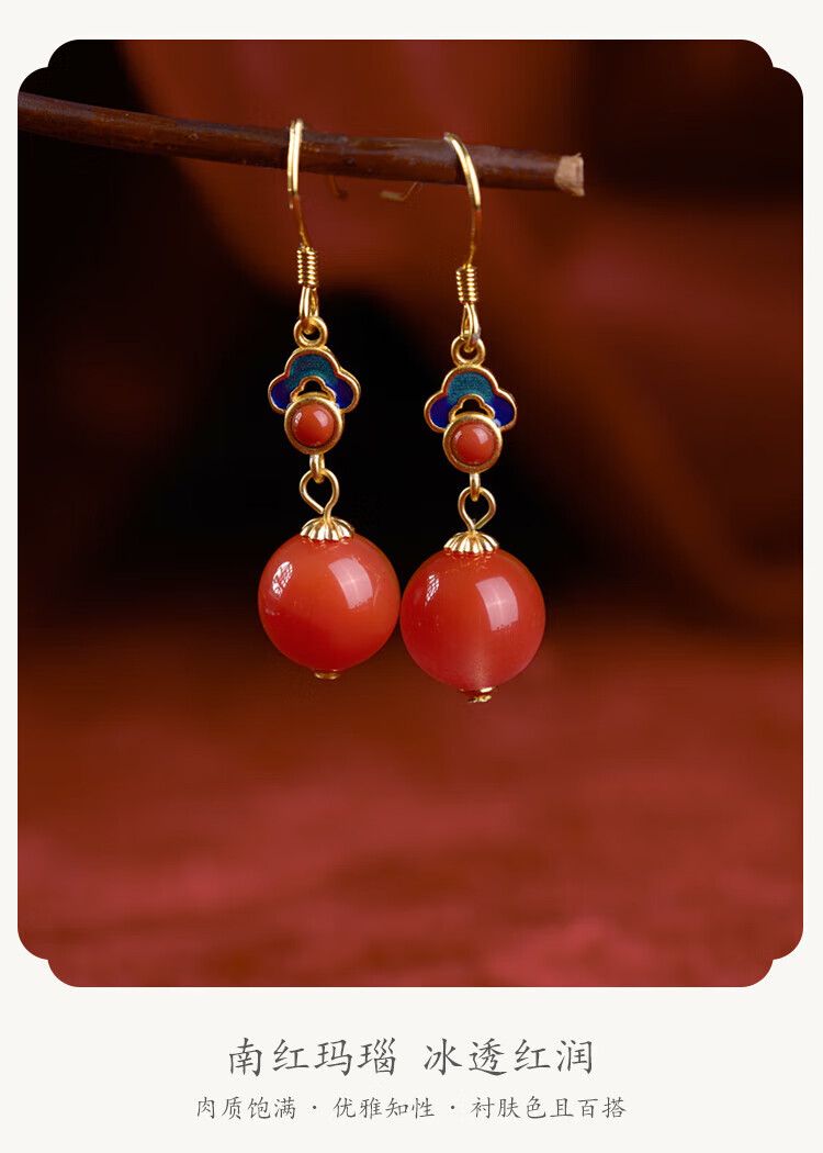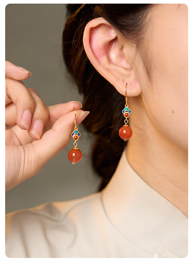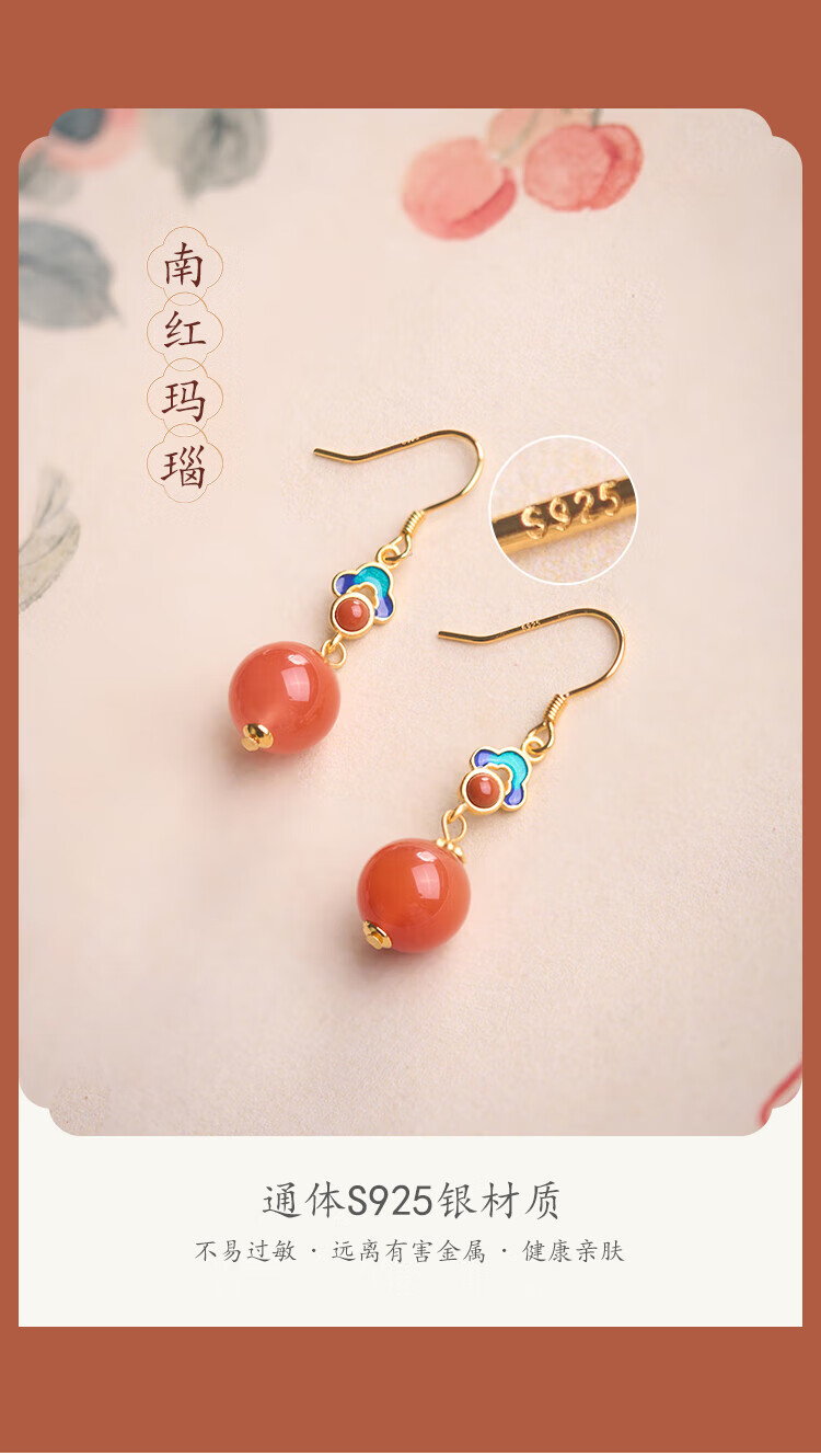 Gin Qianhui sterling silver southern red agate earrings for women, high-end earrings, earrings, earrings, birthday gifts for girlfriends and mothers, Xiangyunnan red earrings + seven warehouse delivery/next day delivery, birthday gifts for girls/exquisite gift boxes/with jewelry certificates