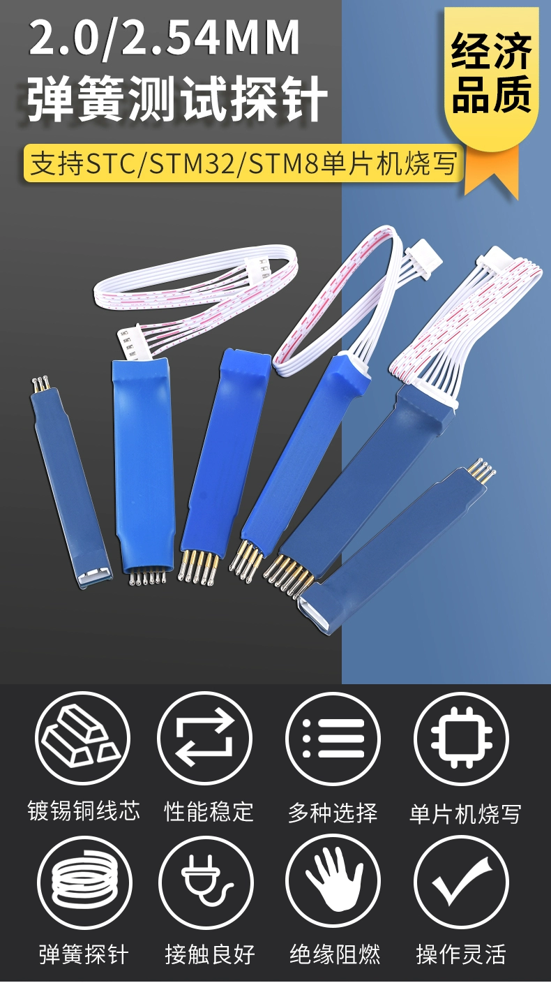 DZYJ 2.54mm 2.0mm program burning test pin spring pin probe STC STM32 ARM microcontroller programming 2.54 pitch 6p diamond head probe with DuPont terminal line