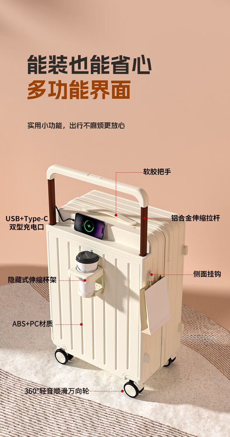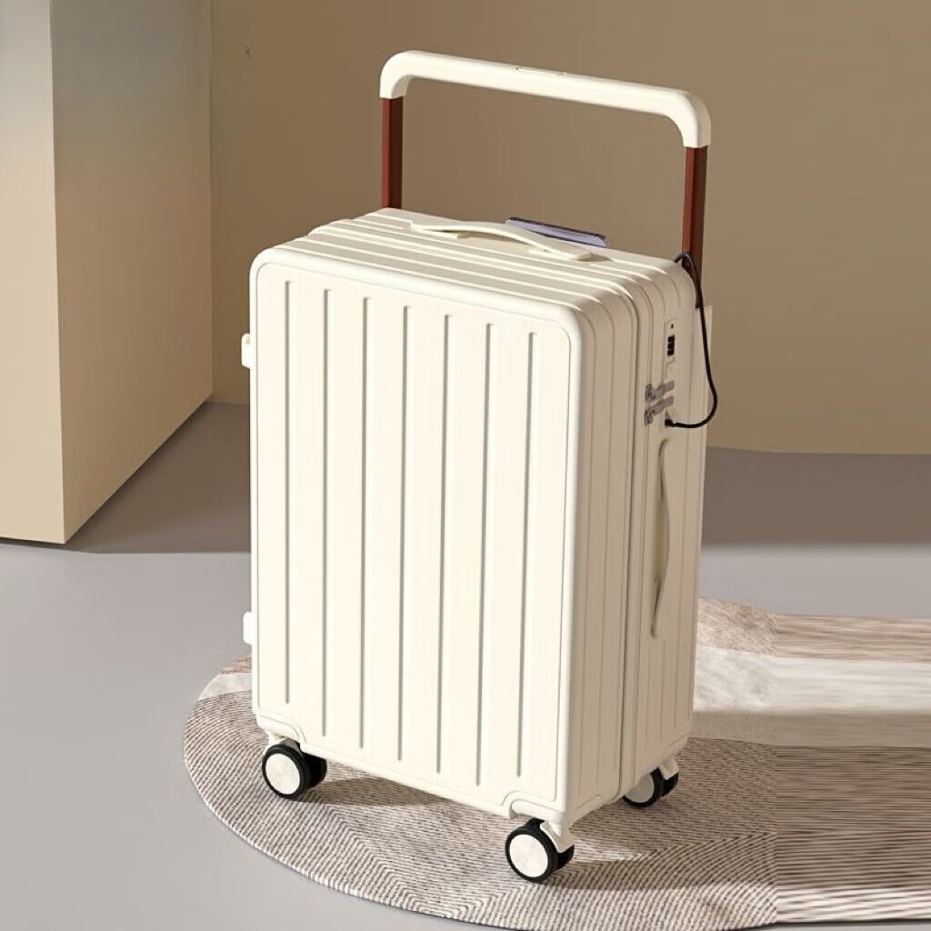 Kangaroo multifunctional suitcase wide trolley suitcase women's small fresh trolley case men's large capacity password box student suitcase Baker white cup holder + USB adapter 24 inches student accommodation