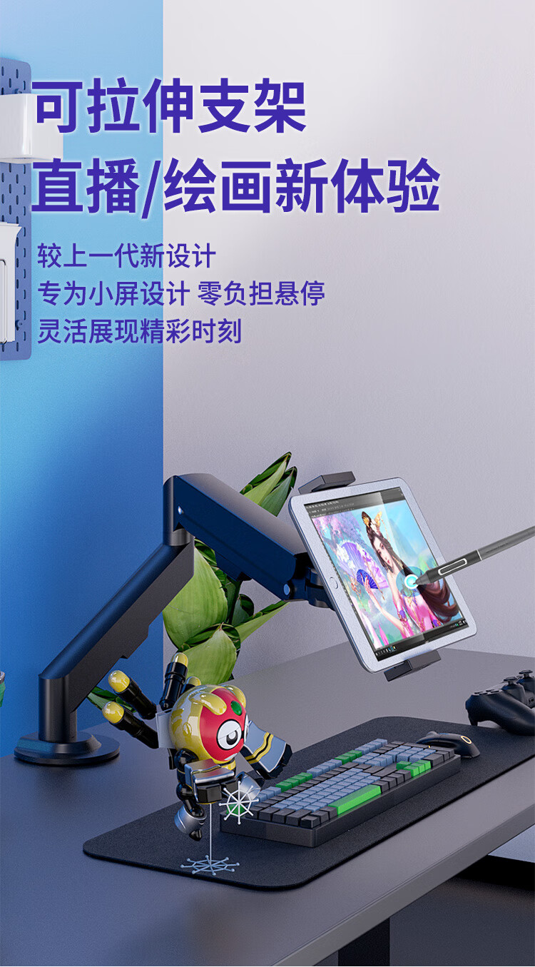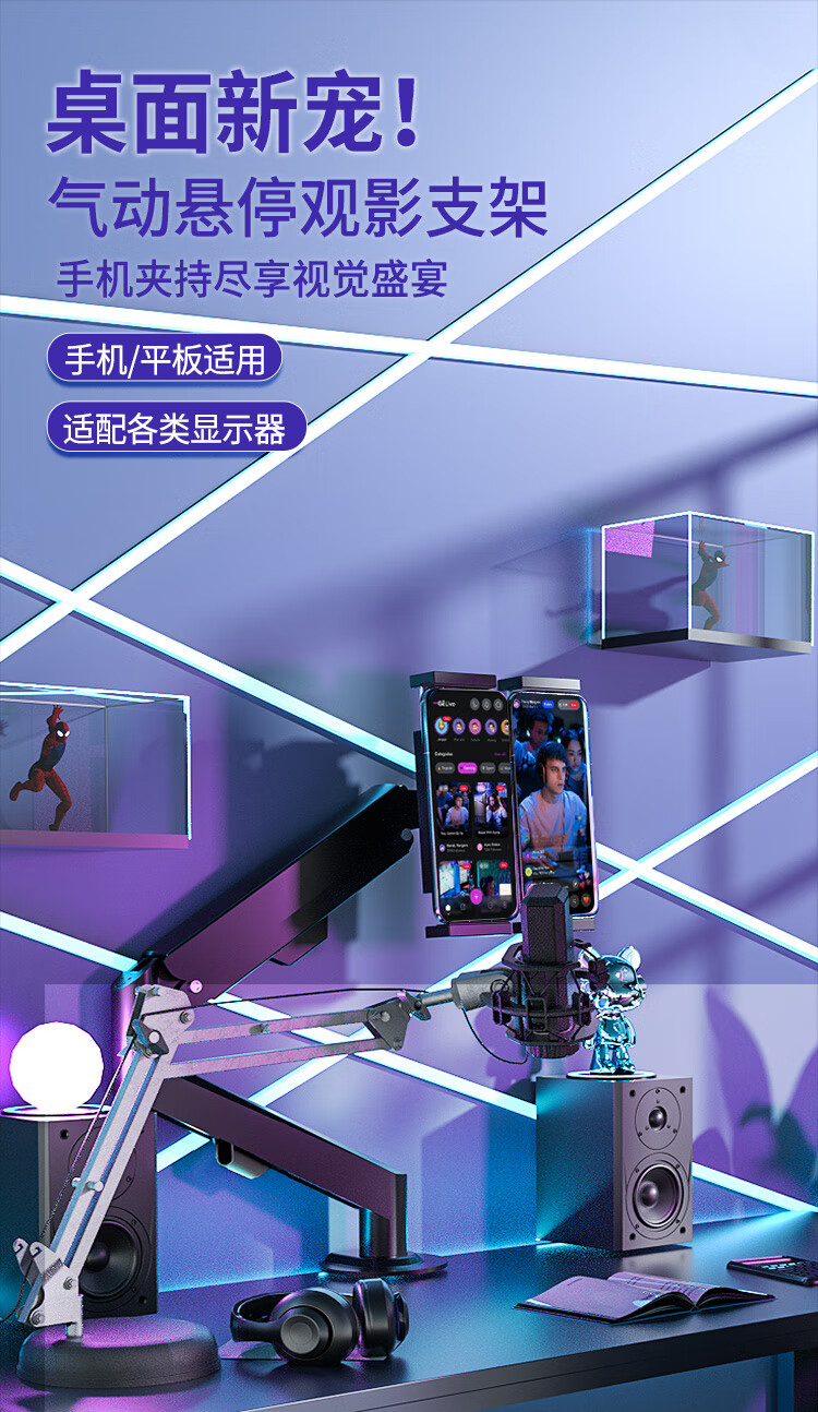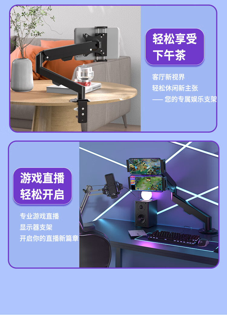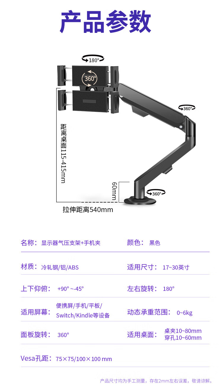Constantly adaptable to portable screens, laptops, tablets, small screens, dedicated air pressure arm for desktop heightening without punching, can be lifted, rotated and tilted, classic black, 0-6kg load-bearing (can hold mobile phones and tablets)