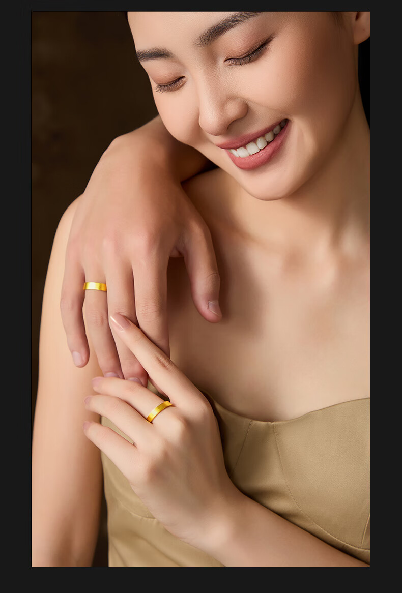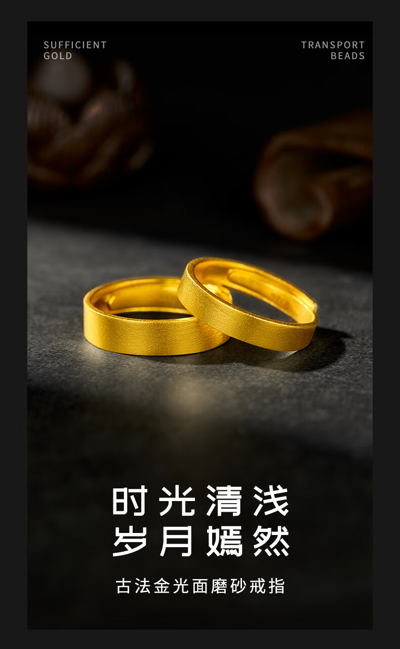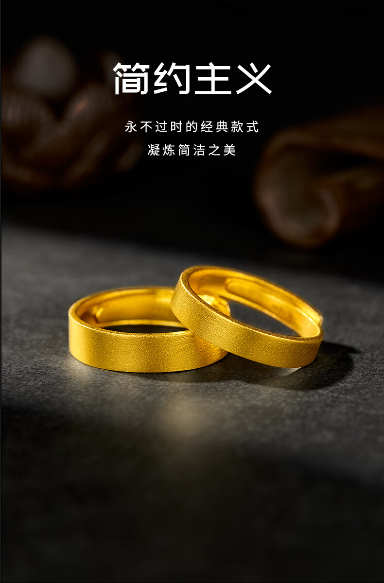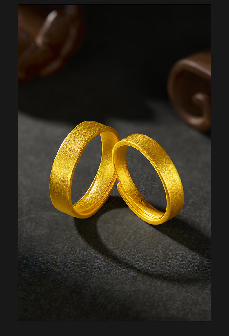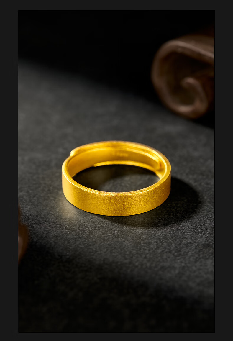 Laofu gold gold ring pure gold 999 ancient frosted live ring wedding three gold gift girlfriend gift giving about 3.9g glossy frosted women's ring