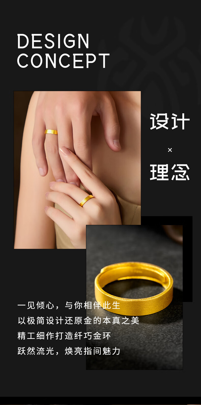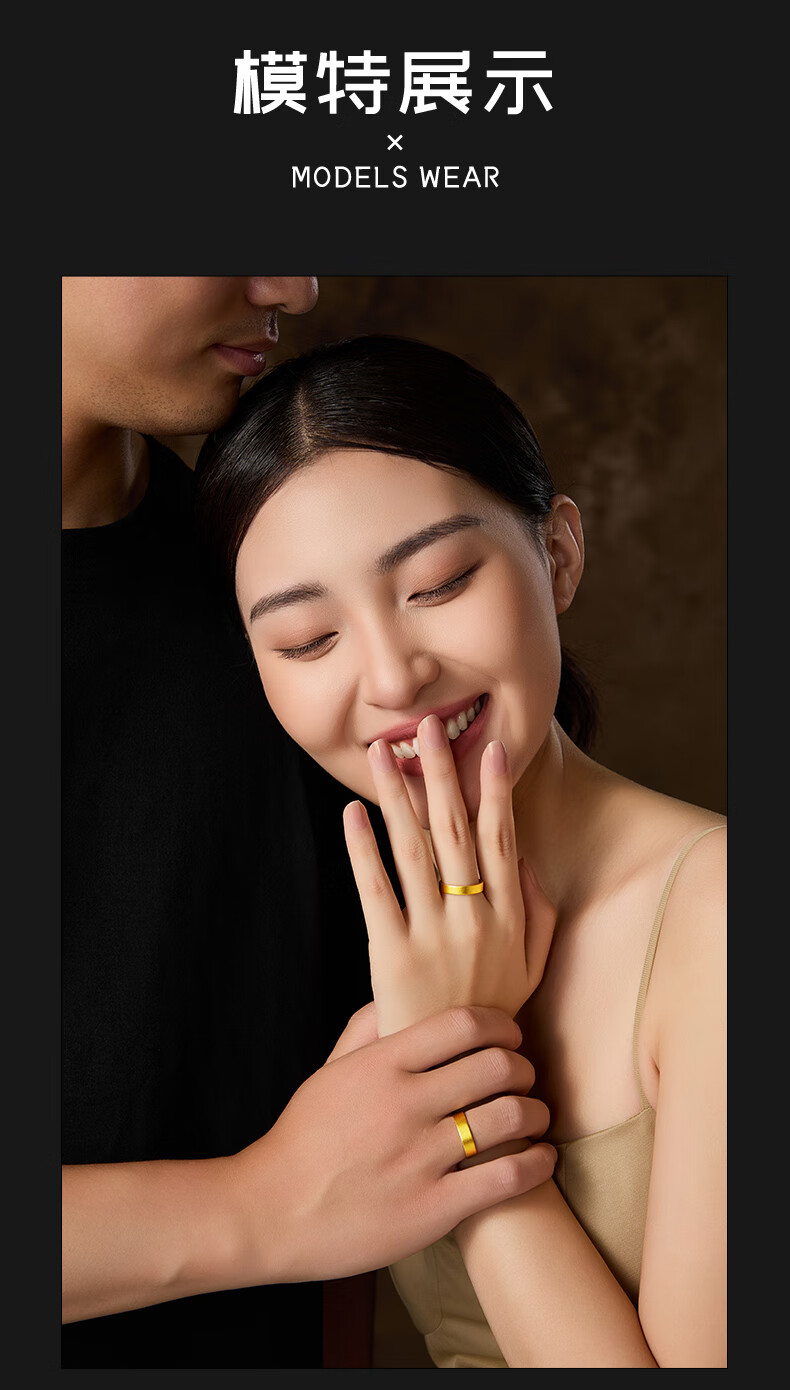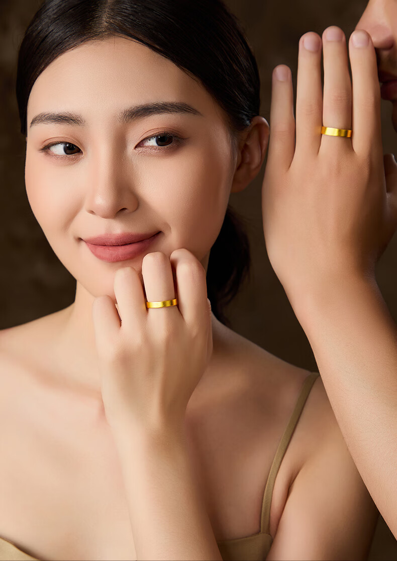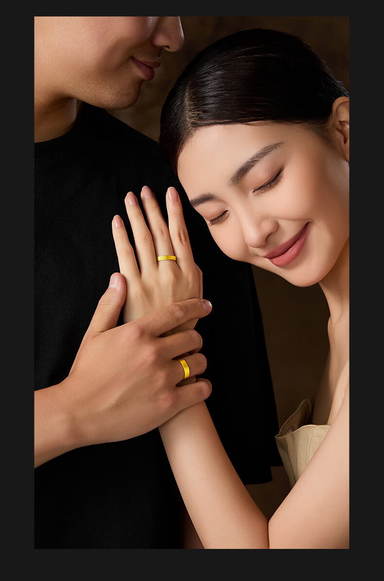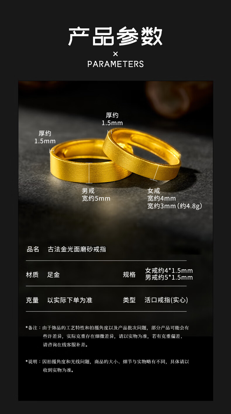 Laofu gold gold ring pure gold 999 ancient frosted live ring wedding three gold gift girlfriend gift giving about 3.9g glossy frosted women's ring