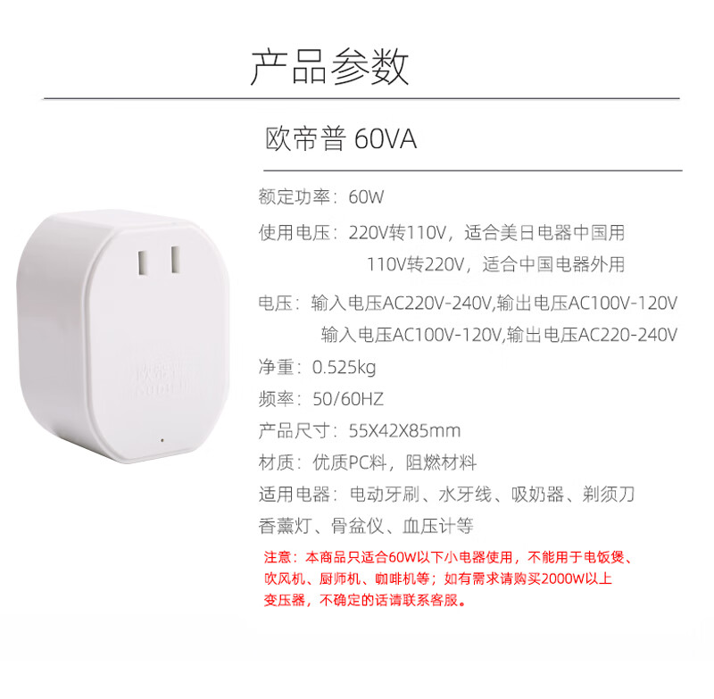 220V to 110V transformer 100v120V power conversion head electric brush socket water line 60W 220V to 1 60W220V to 120V (only applicable below 60W