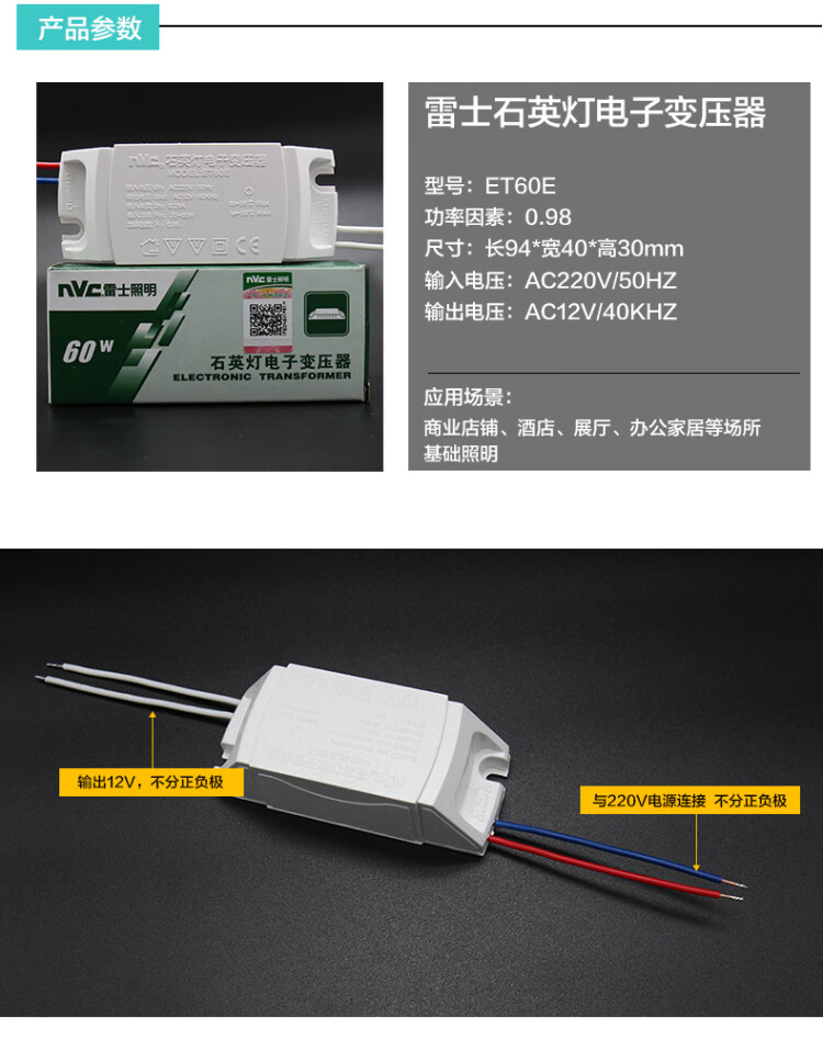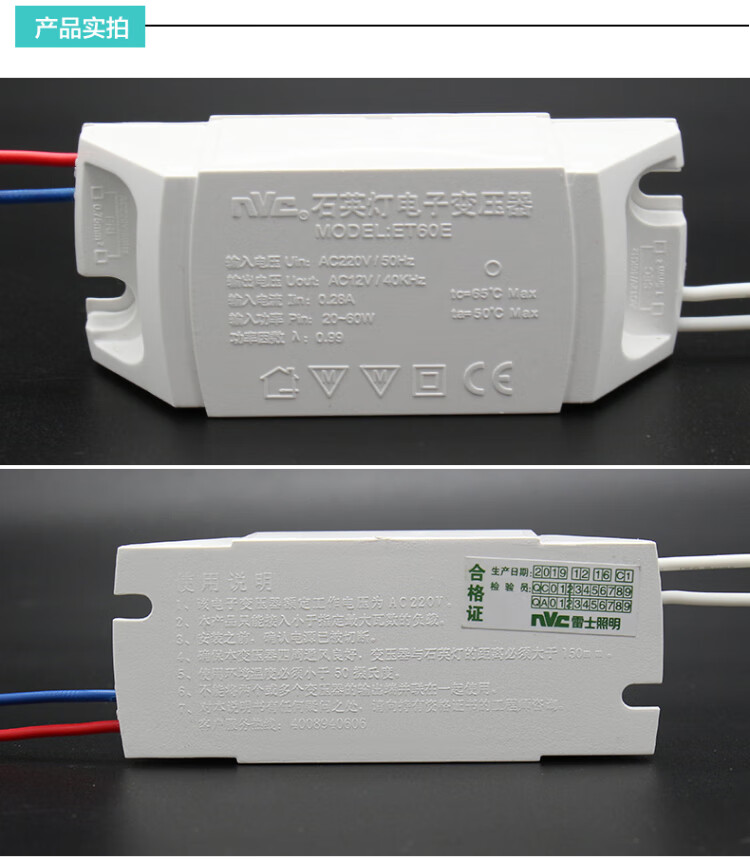 Lighting led lamp cup electronic transformer ET60E halogen quartz lamp transformer 220V to 12V 60W 50 pieces single ET60E load 60W to AC12V with protection