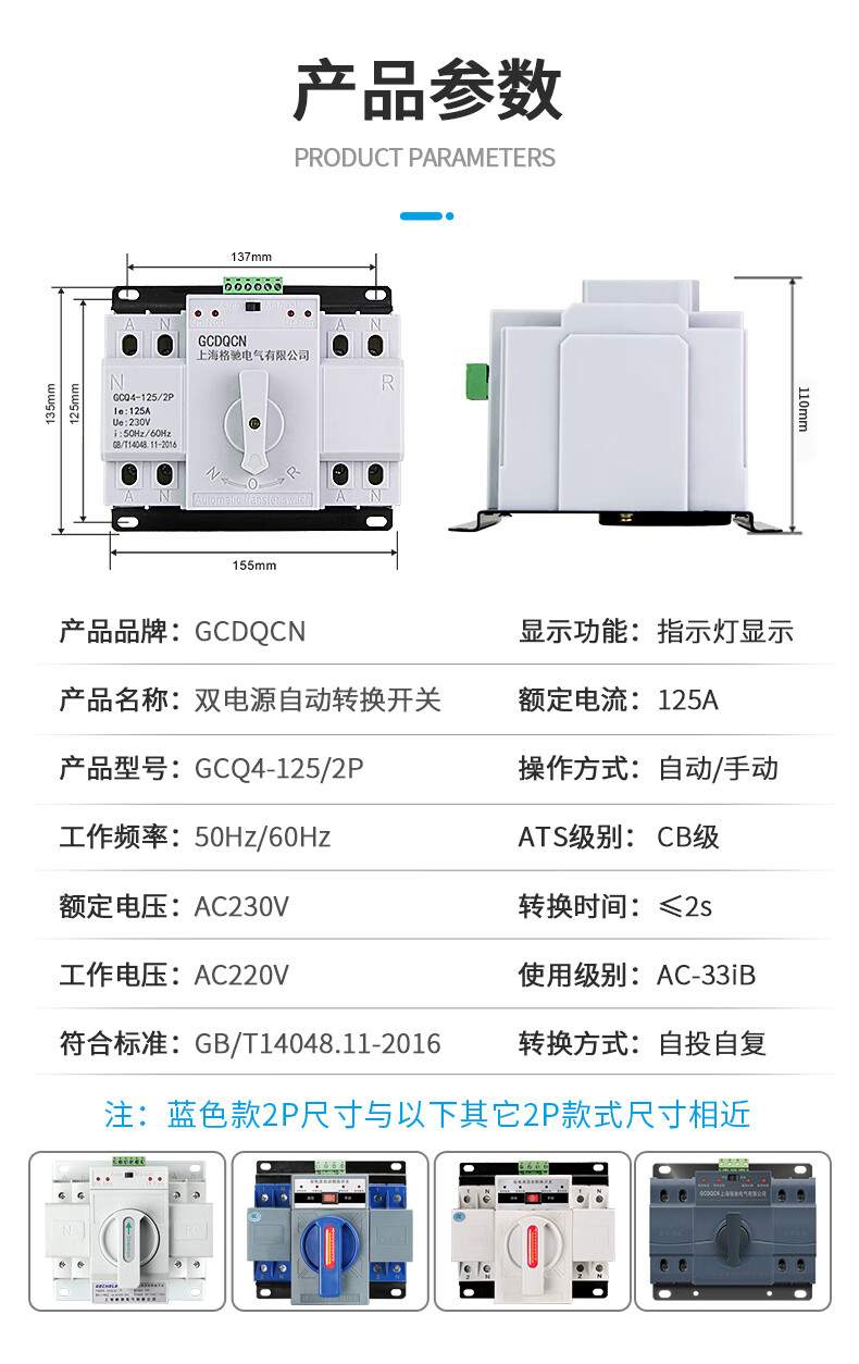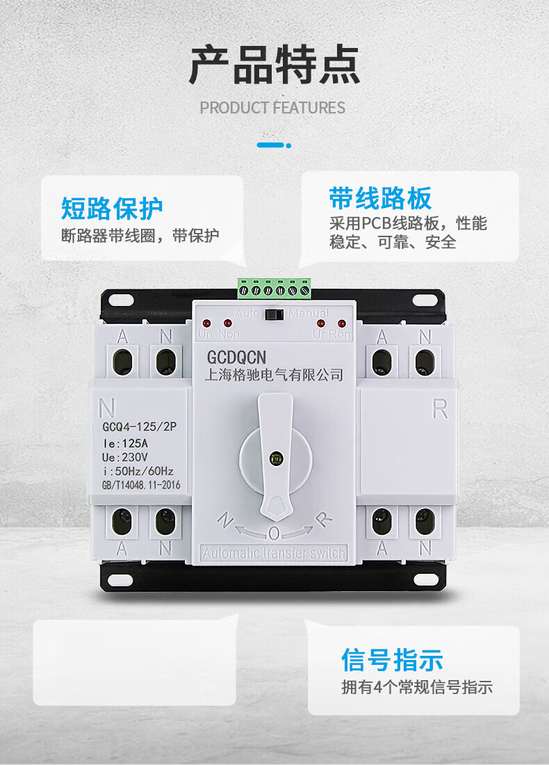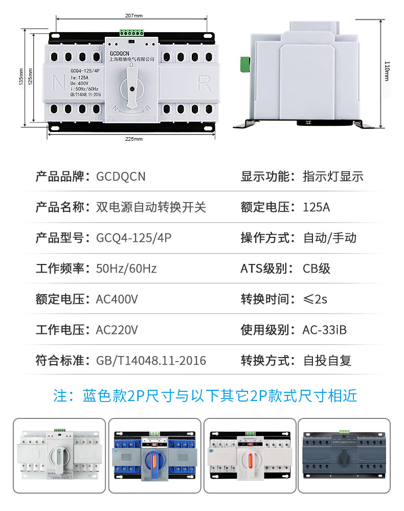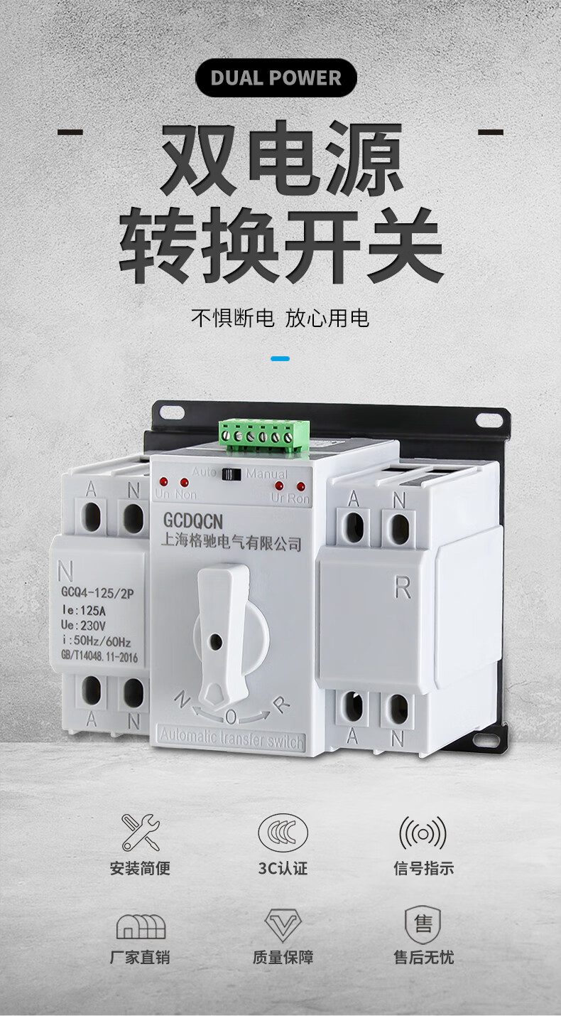 Dual power automatic transfer switch single-phase power 4P three-phase four-wire 63A80A100A switch ATS 25A 2P