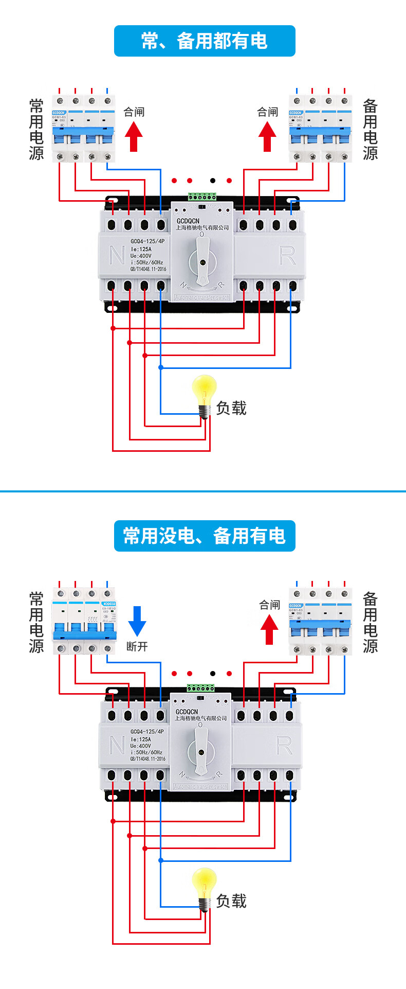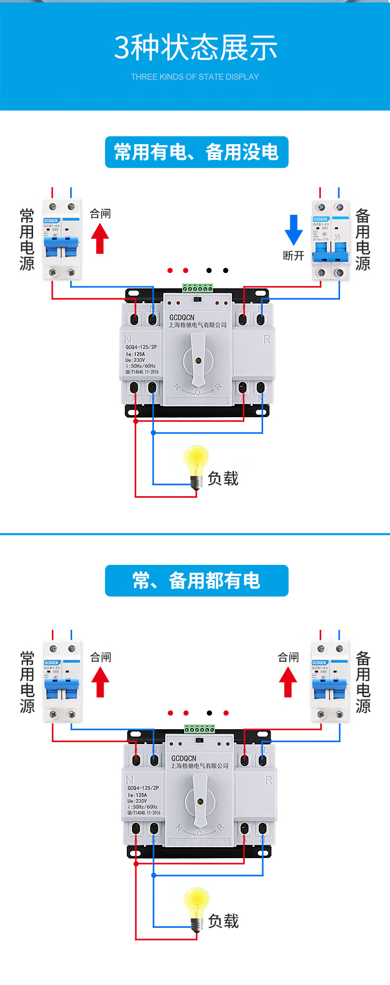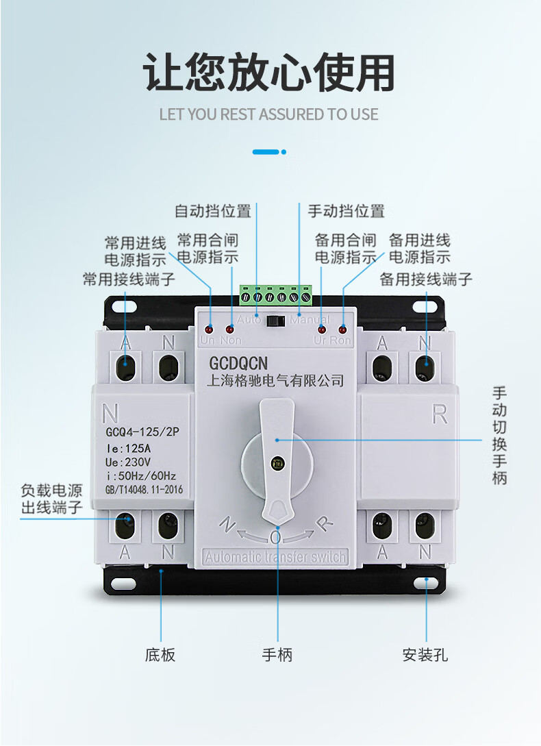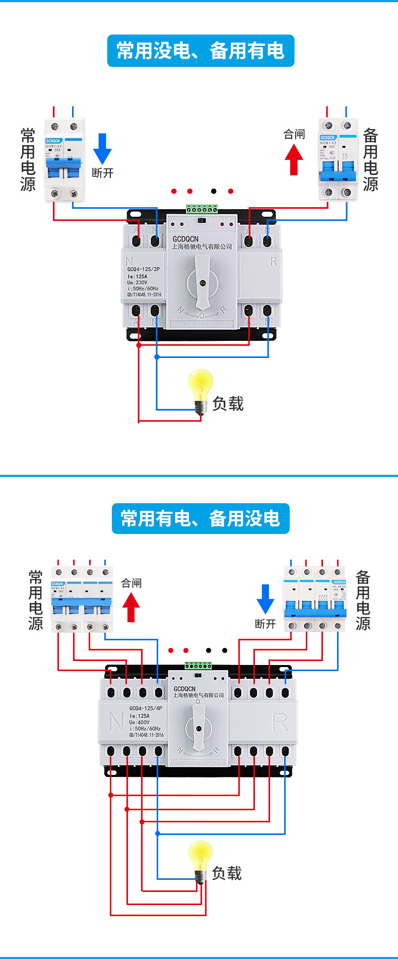 Dual power automatic transfer switch single-phase power 4P three-phase four-wire 63A80A100A switch ATS 25A 2P