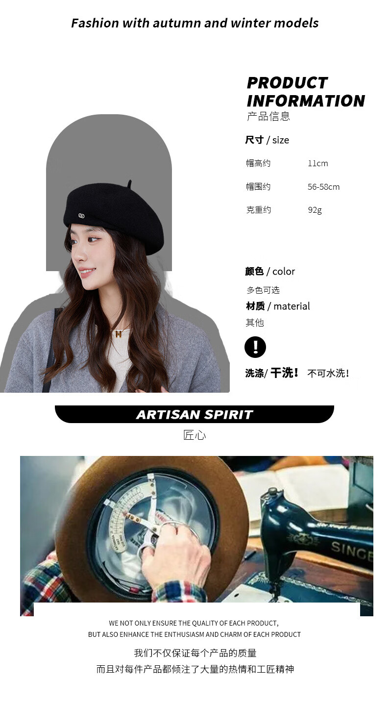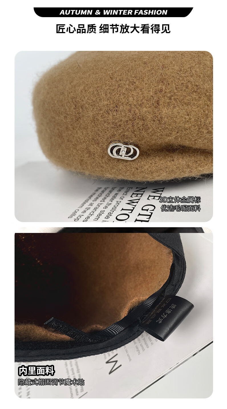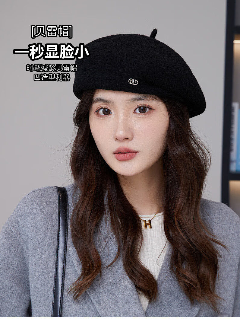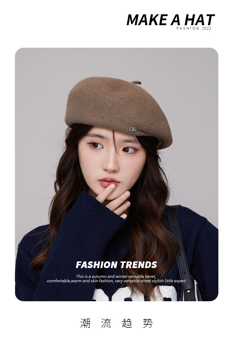 Taoyiyou (taoyiyou) Korean style large head hat for women in autumn and winter, warm and fashionable, versatile wool beret, Korean style face-showing little painter hat E-529 red wool beret, one size fits all