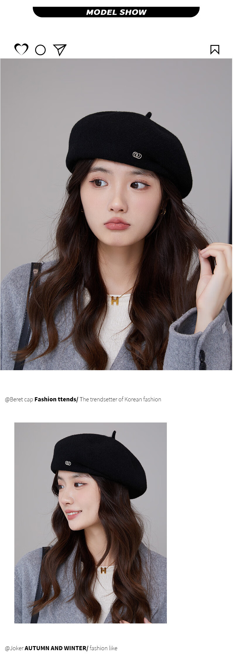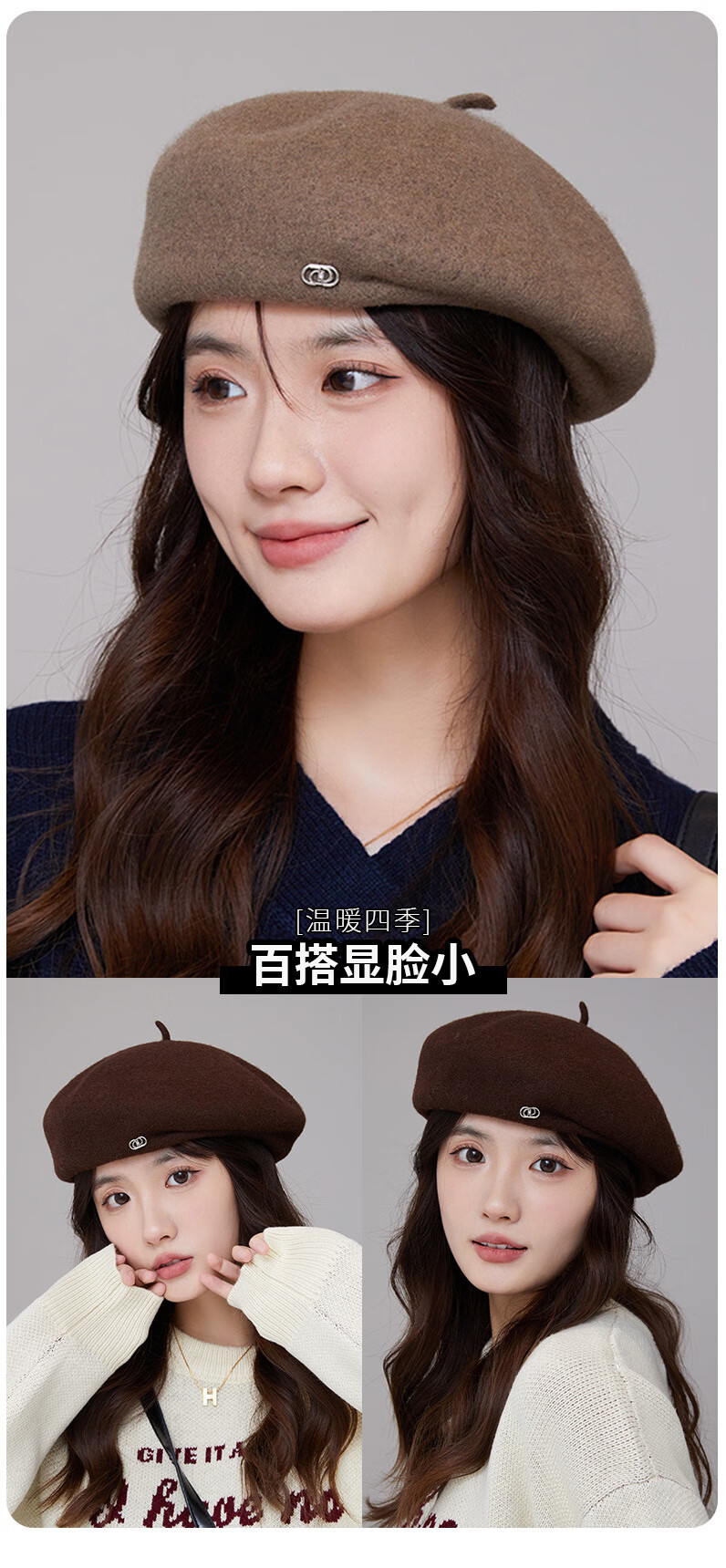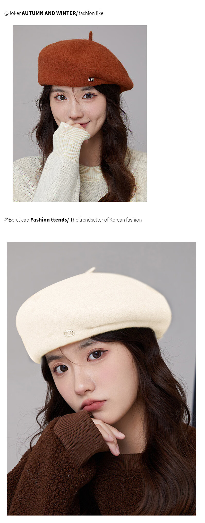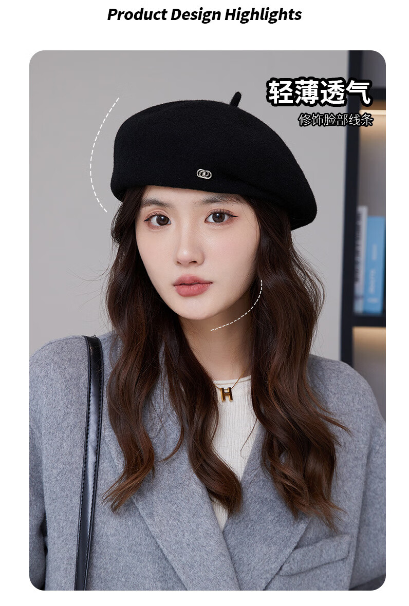 Taoyiyou (taoyiyou) Korean style large head hat for women in autumn and winter, warm and fashionable, versatile wool beret, Korean style face-showing little painter hat E-529 red wool beret, one size fits all