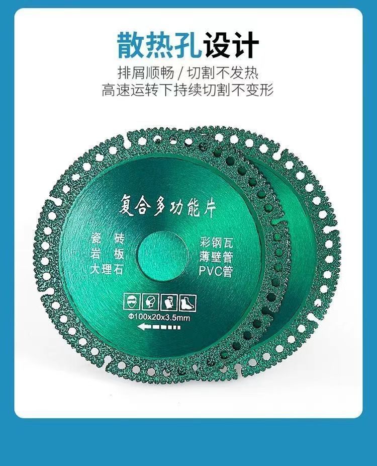 Multifunctional composite sheet, color steel tile, PCV, wood, slate, tile, cutting and grinding, special cutting disc for angle grinder, multifunctional cutting king saw blade, factory direct sale, 2 cutting discs