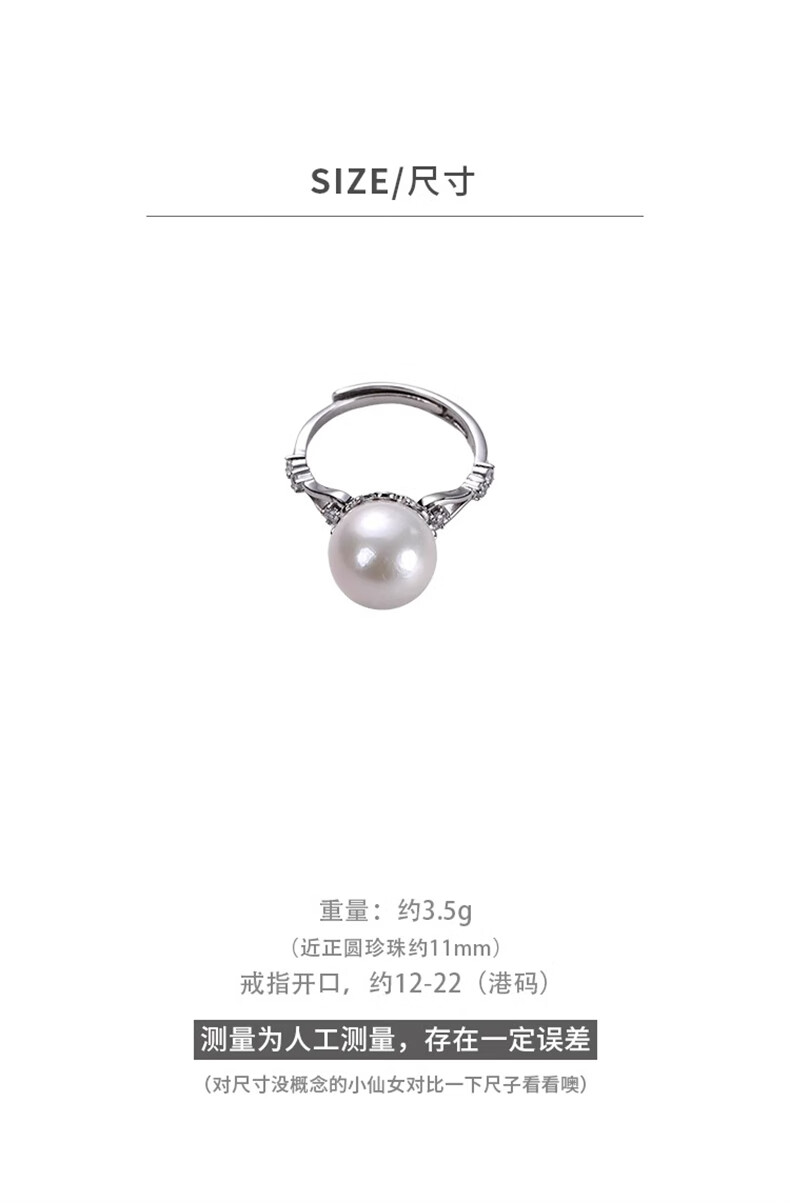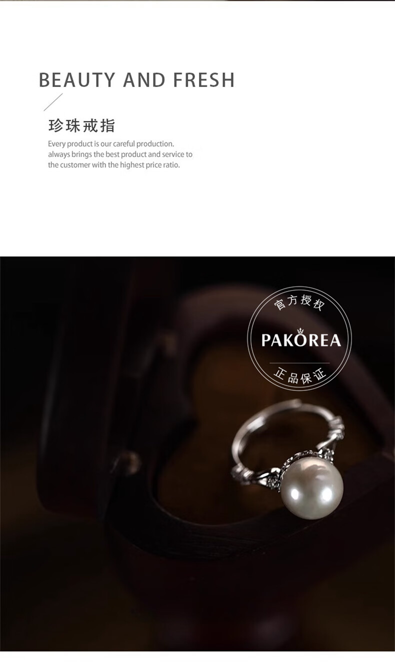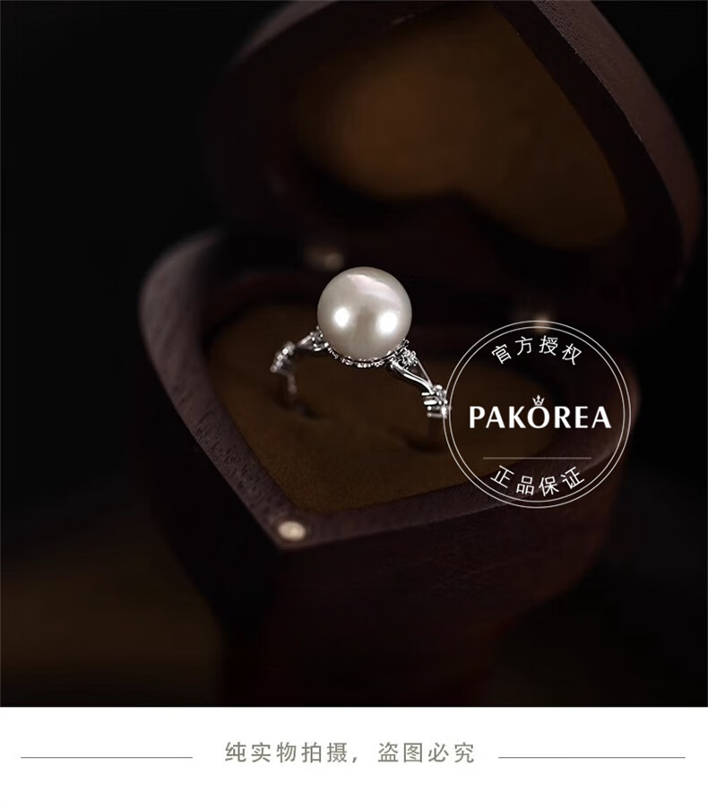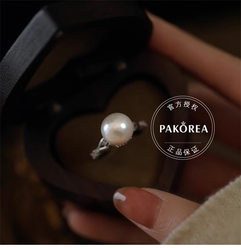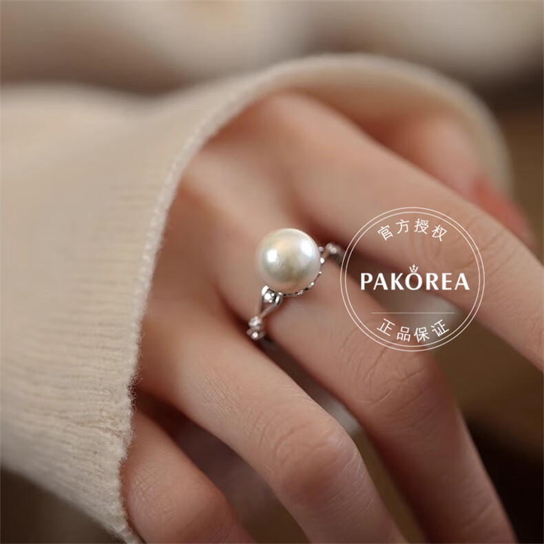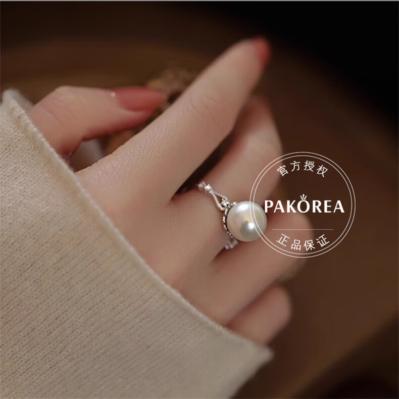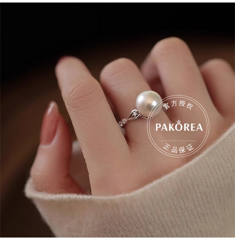 PAKOREA light luxury brand ring for women, nearly perfect round freshwater pearl open ring, Chinese Valentine's Day gift for girlfriend's birthday on Chinese Valentine's Day, freshwater pearl open ring