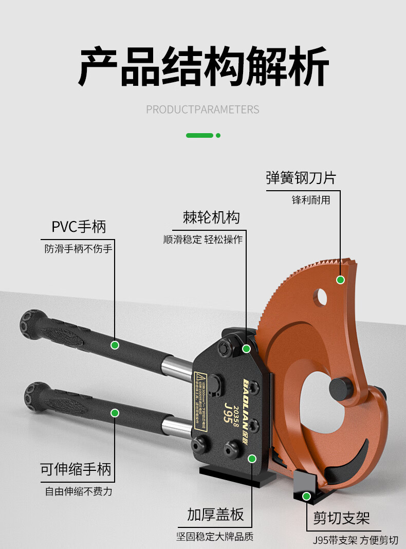 Baolian Cable Scissors Ratchet Gear Cable Special Scissors Manual Gear Cable Cutters Wire Cutter Cable Cable Cable Cutter J40 Industrial Grade Ratchet Cable Cutter + Tool Kit