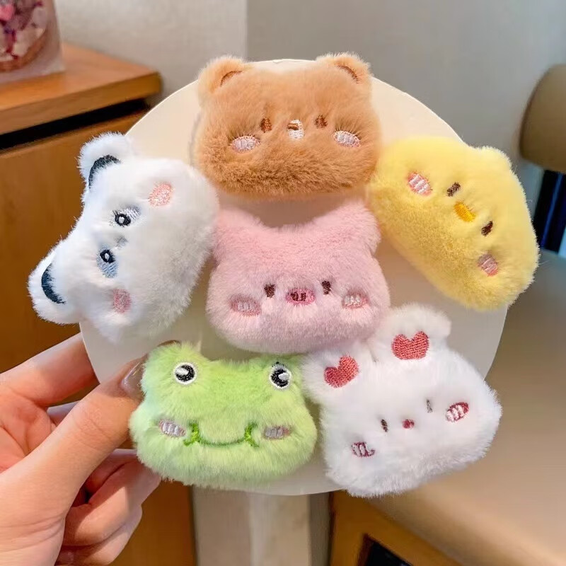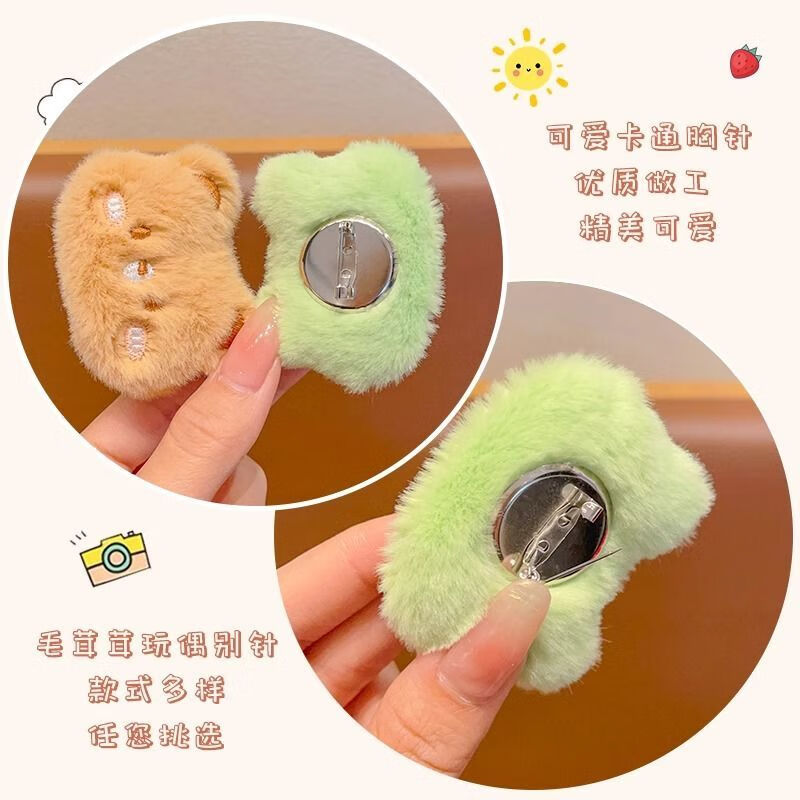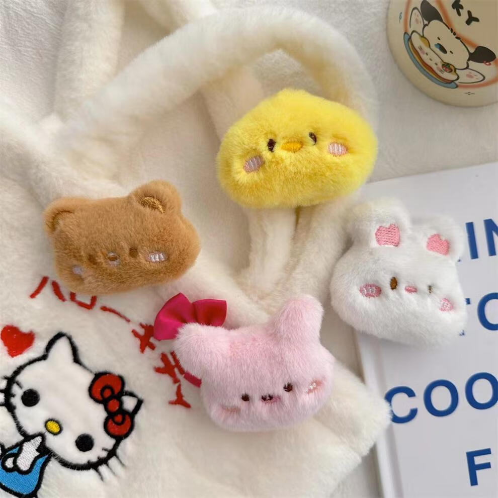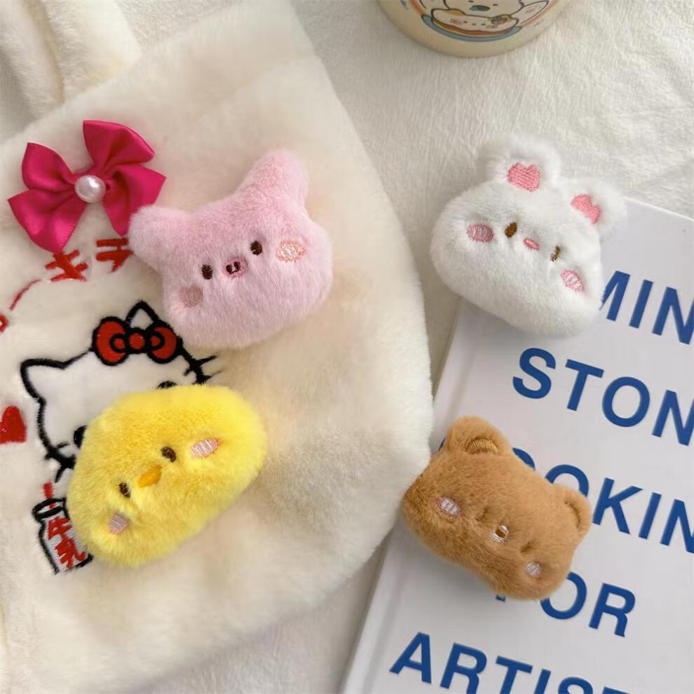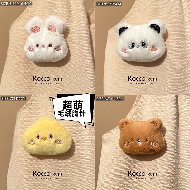 Including spring flower cartoon plush doll brooch, rabbit, kitten, bear, frog, bag, clothing pin, accessories, girl decorative pendant, great value 6-piece set-cartoon brooch