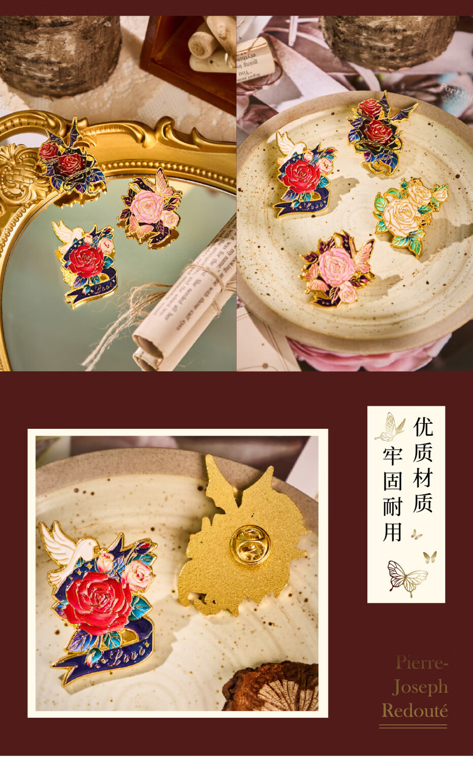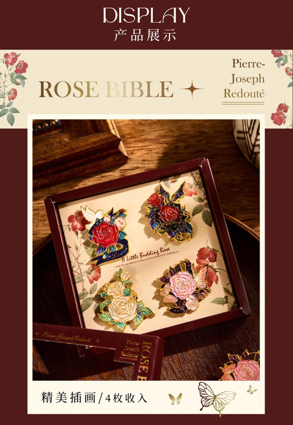 Contains spring flowers, rose brooch gift box, badge, pin buckle badge, exquisite badge, internet celebrity brooch, prizes, high-value gift, rose Bible brooch - Dark Night Knight