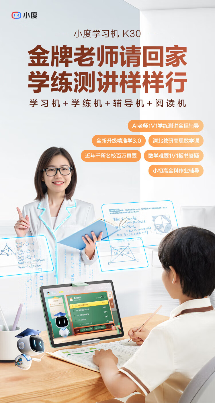 Xiaodu learning machine K30 updated version Eye-protecting learning tablet AI teacher 1-to-1 training and testing Newly upgraded precision learning 3.0 Seamlessly linked to Baidu Netdisk K30 updated version Seamlessly linked to Baidu Netdisk