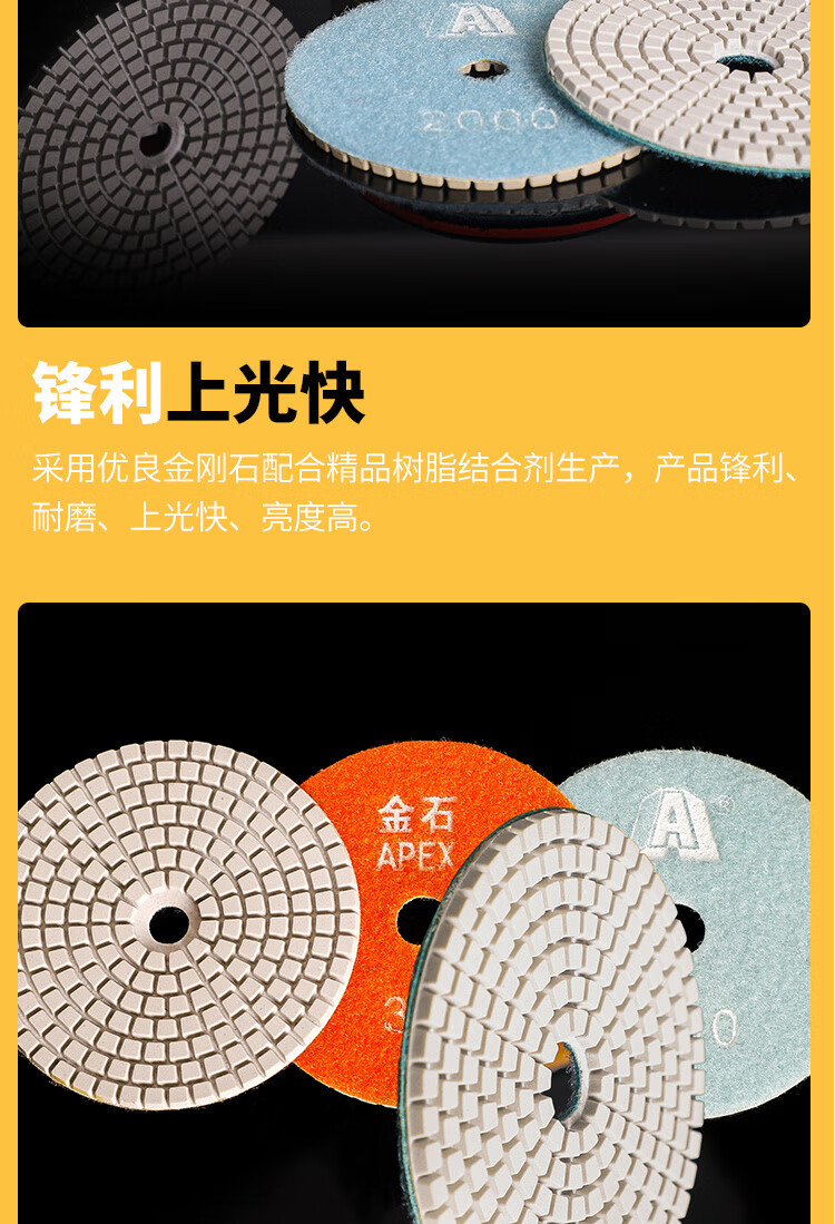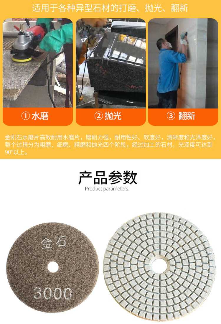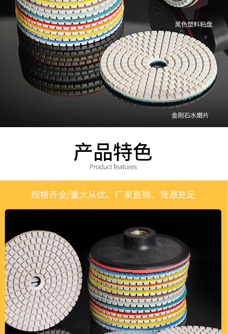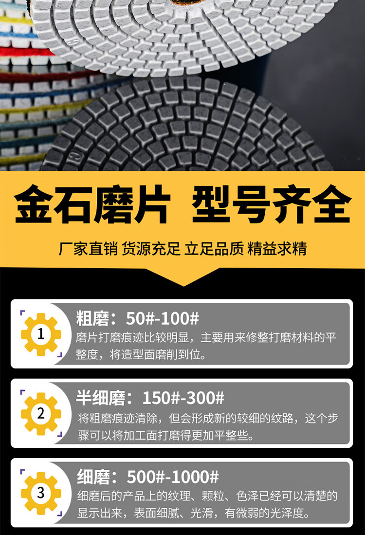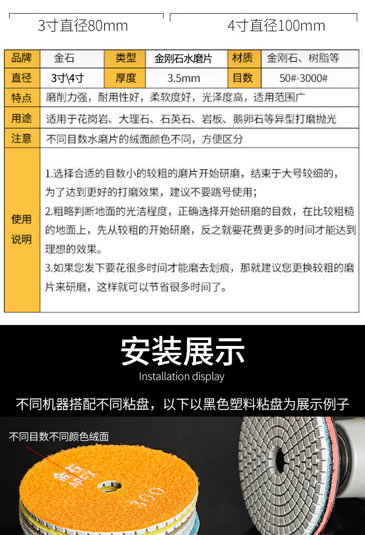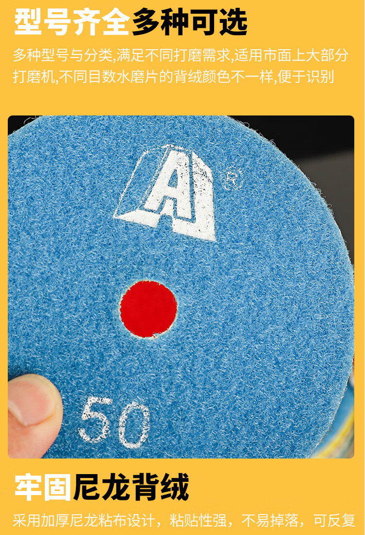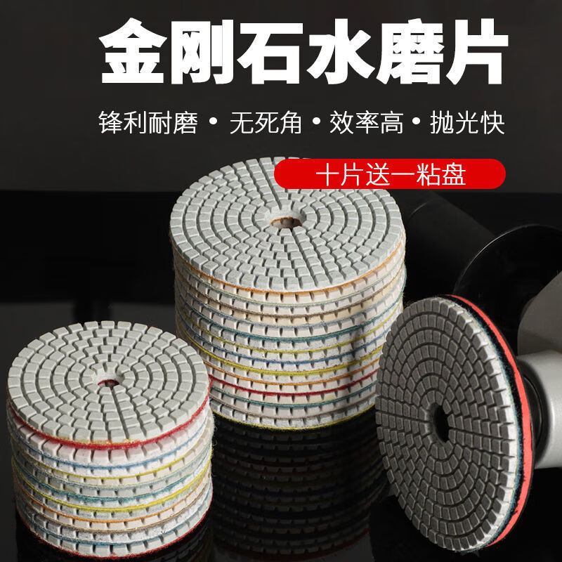 An Junsheng shop stone grinding and polishing discs, water-grinding discs, marble quartz stone, diamond water-grinding discs, angle grinder, 4 inches 10 cm (10 pieces packed with adhesive disc) 50 mesh