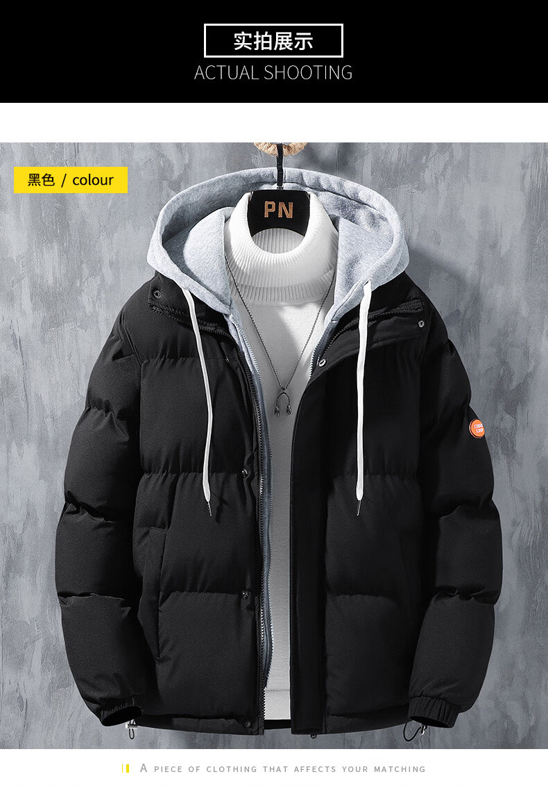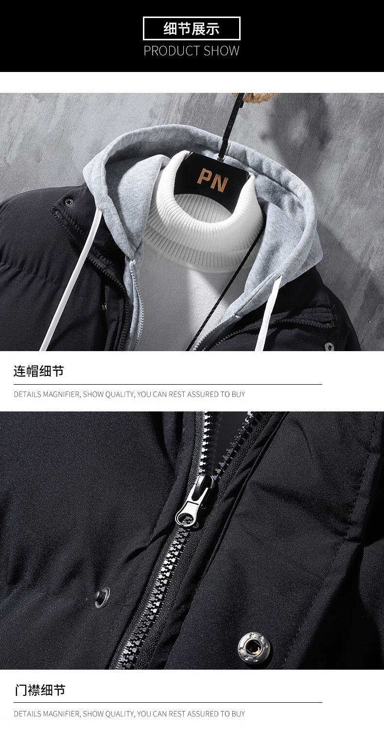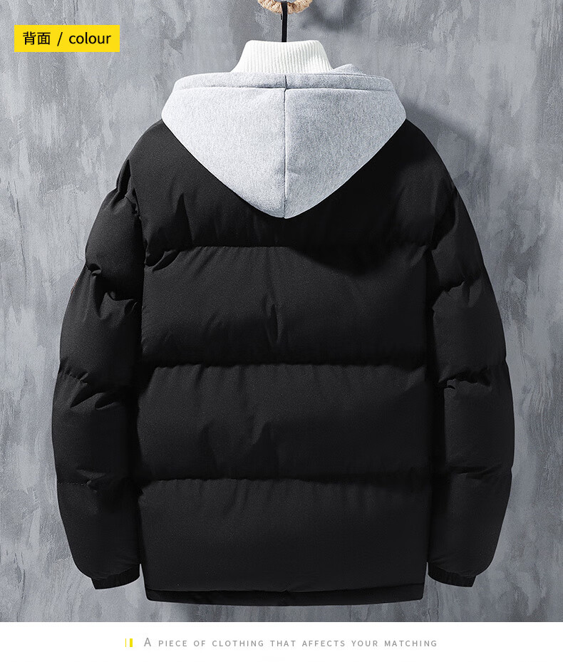 Woodpecker (TUCANO) winter vacation two-piece cotton-padded jacket for men Hong Kong style hooded down-padded jacket for young people plus velvet thickened top men's cotton-padded jacket QCC-A622-GY090-3 Black XL