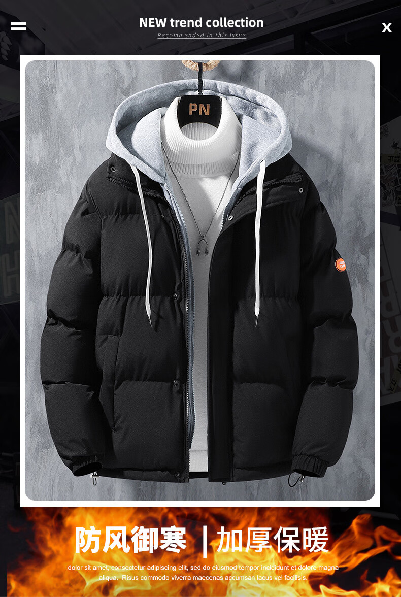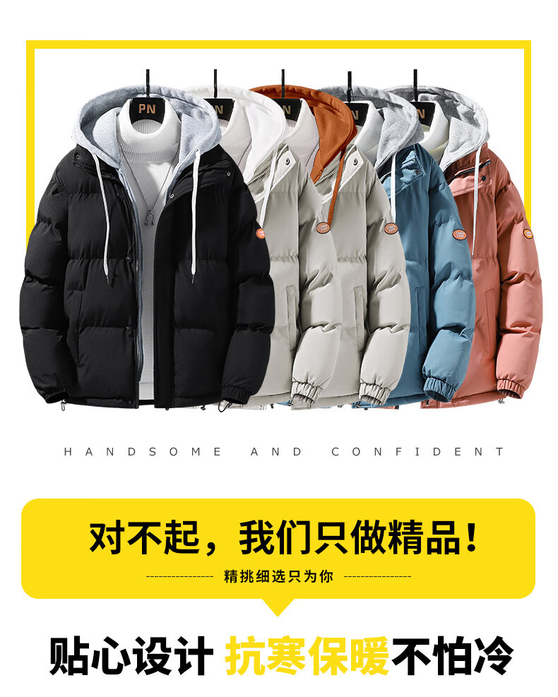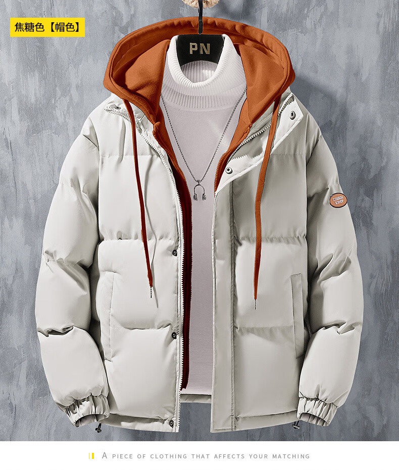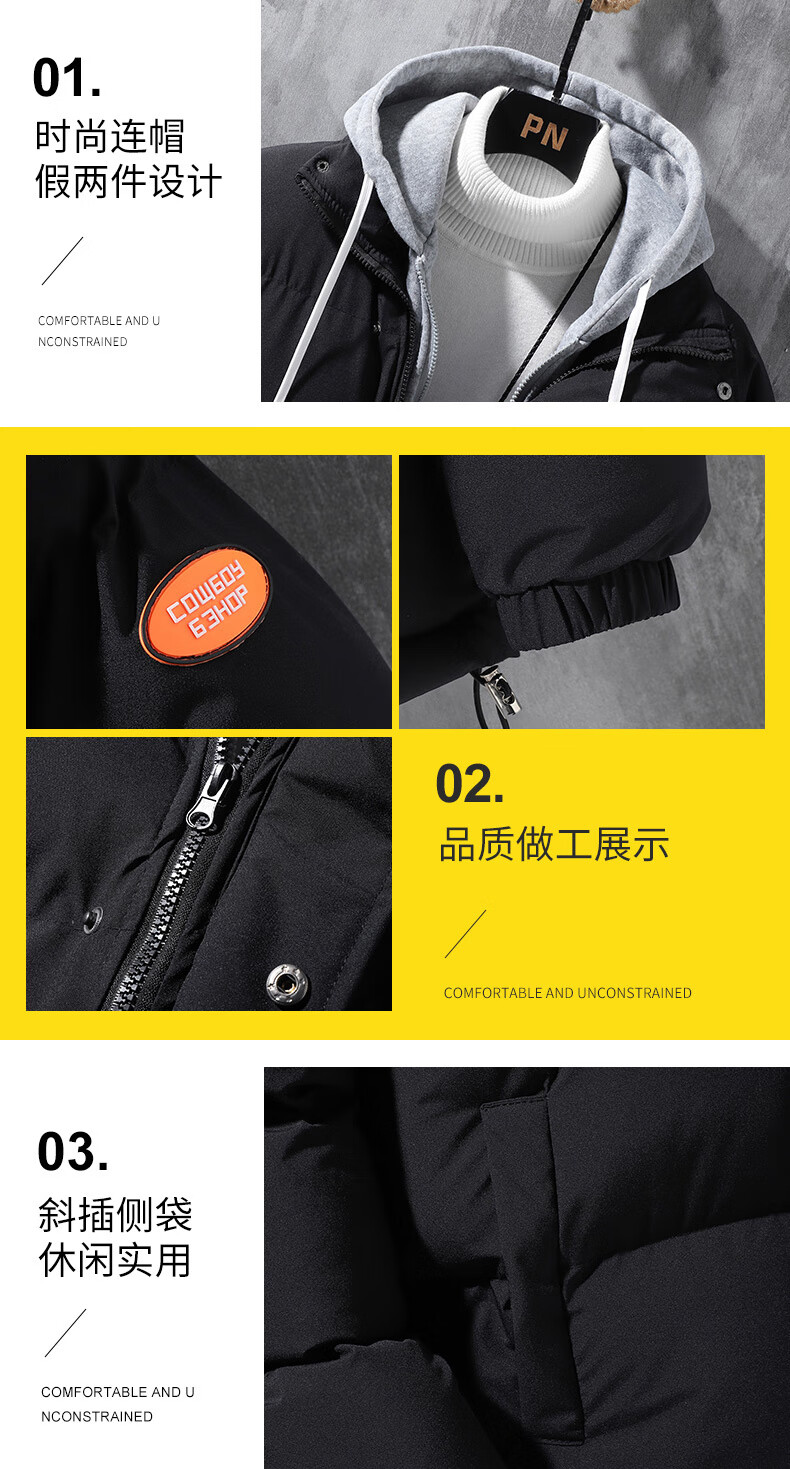 Woodpecker (TUCANO) winter vacation two-piece cotton-padded jacket for men Hong Kong style hooded down-padded jacket for young people plus velvet thickened top men's cotton-padded jacket QCC-A622-GY090-3 Black XL
