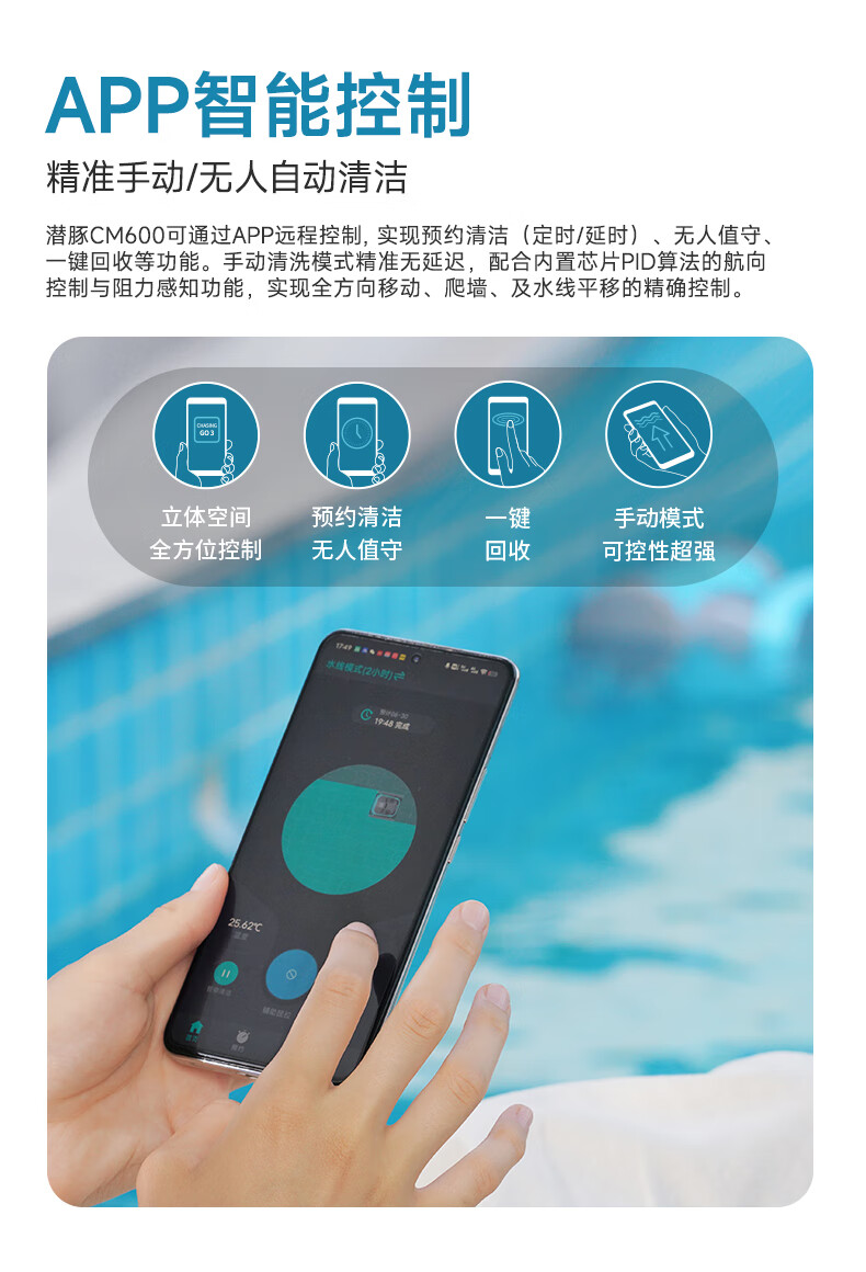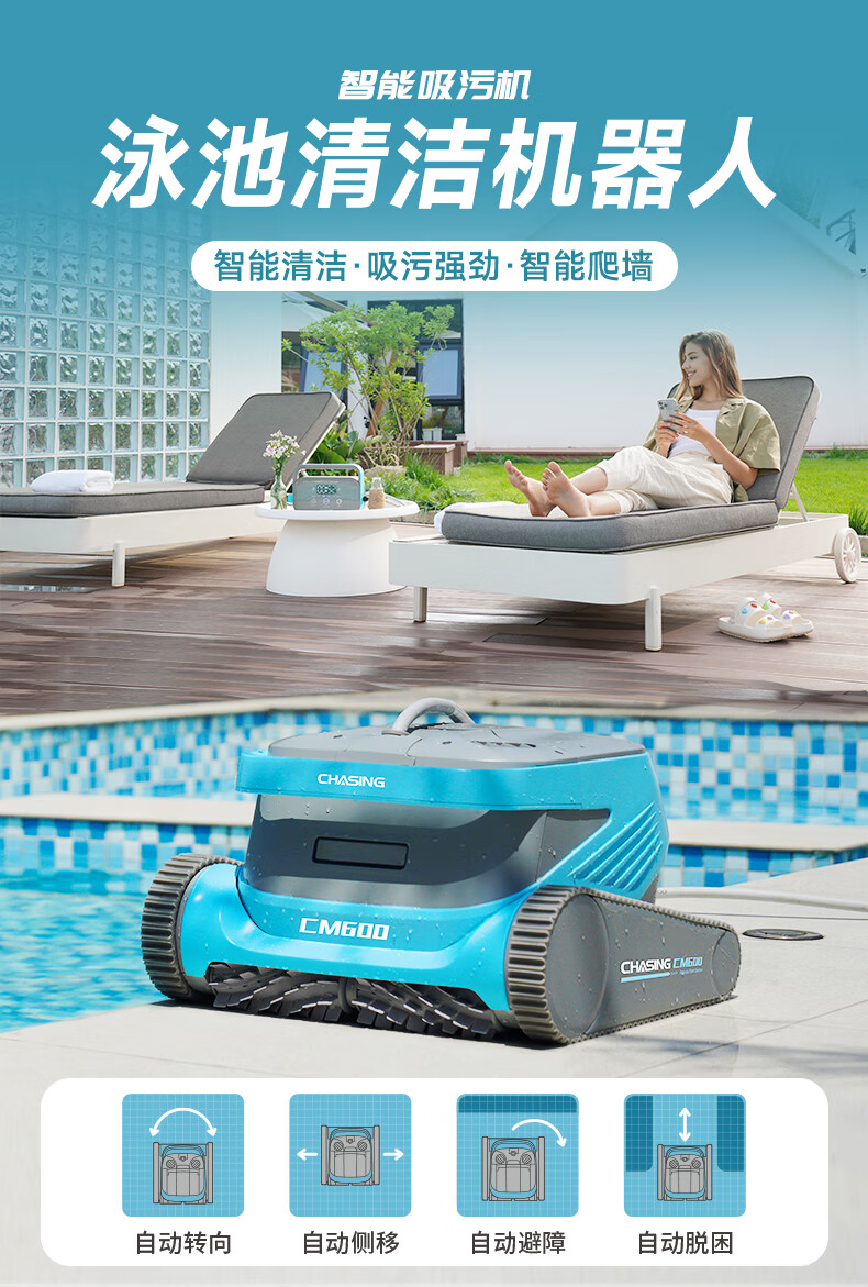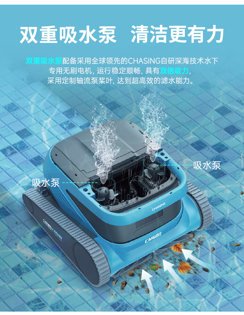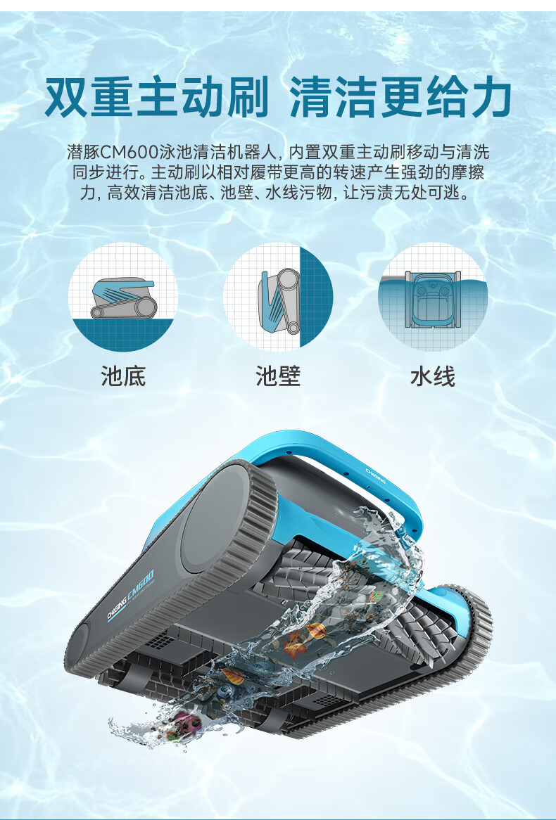 Diving Dolphin Swimming Pool Fully Automatic Sewage Suction Machine Villa Swimming Pool Underwater Vacuum Cleaner Remote Control Pool Wall-Climbing Bottom Cleaning Robot CM600-18 Meter Line