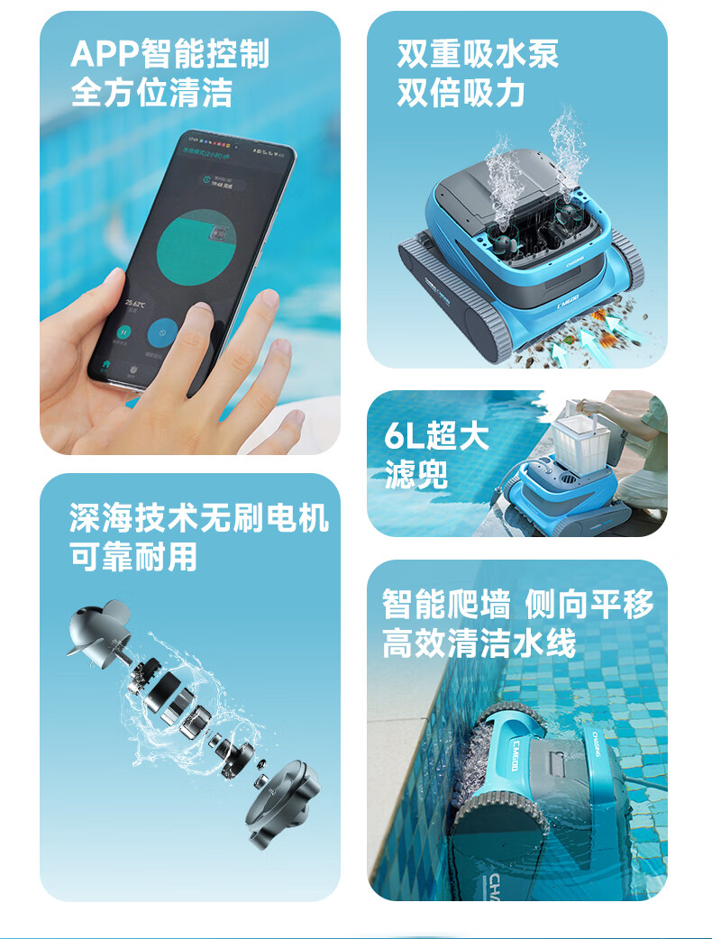 Diving Dolphin Swimming Pool Sewage Suction Machine Fully Automatic Intelligent Cleaning Robot Remote Control Villa Household Pool Wall and Bottom Vacuum Cleaner CM600-18 Meters (Supports Remote Control/Wall Climbing)