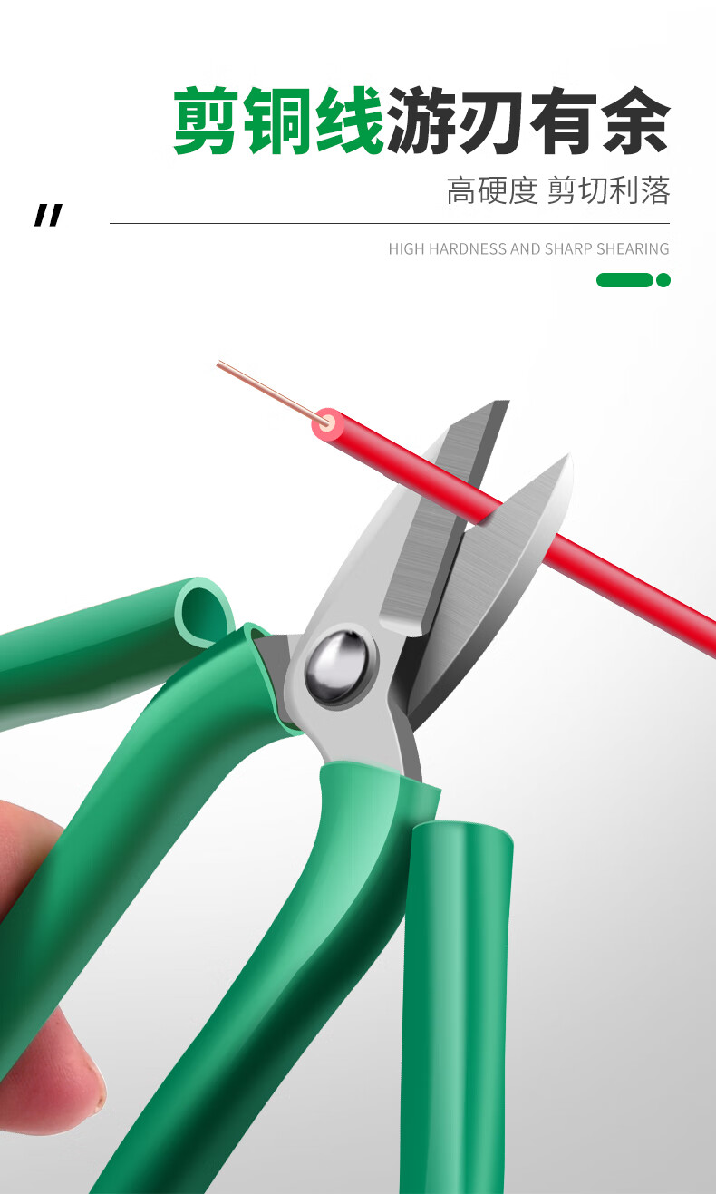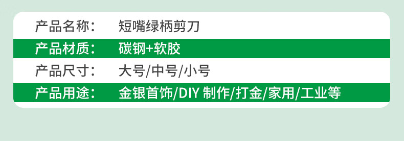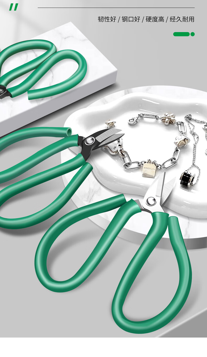 Baolian's new gold and silver jewelry scissors, short-bill green handle, household powerful scissors, copper wire breakers, pliers, gold-making tools and equipment, short-bill green scissors, large size